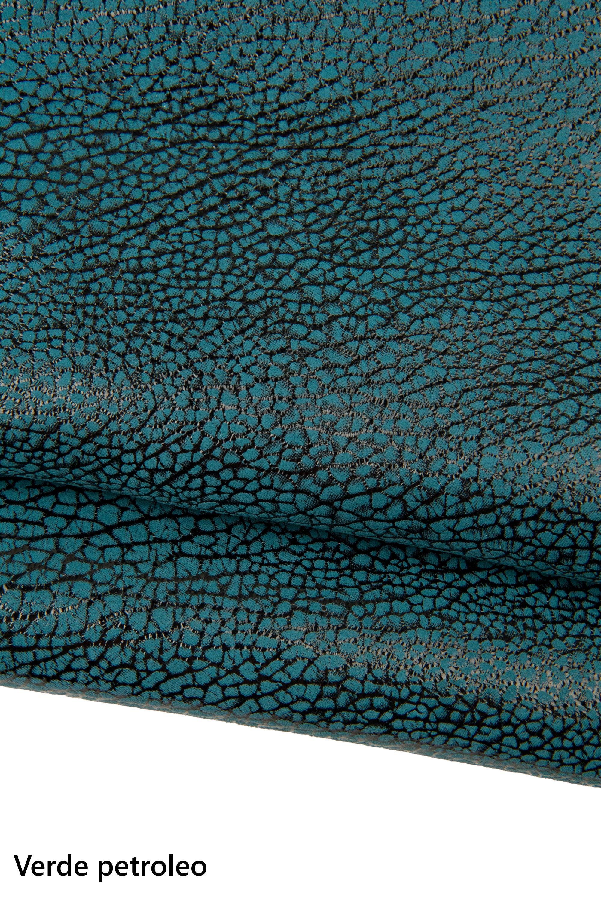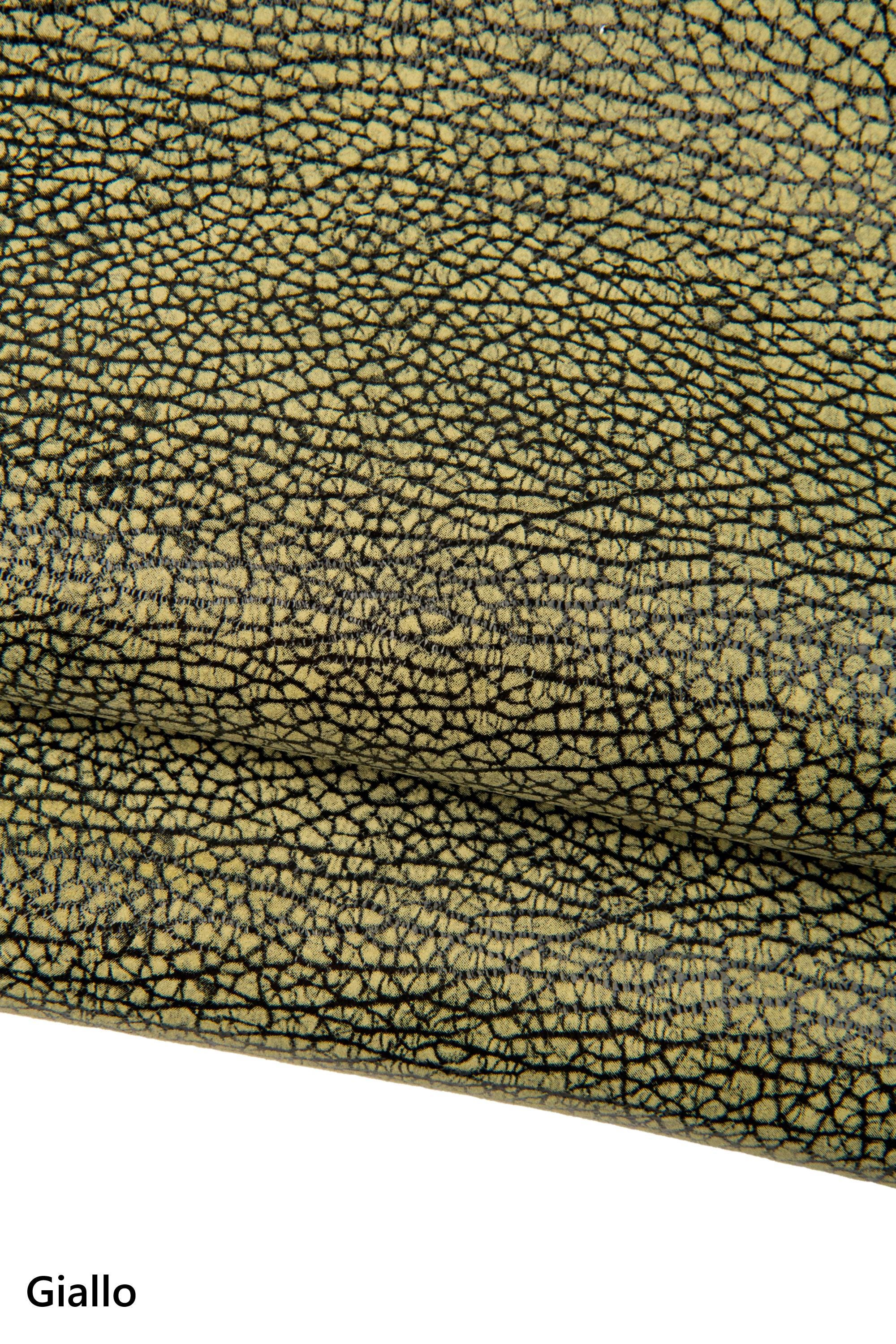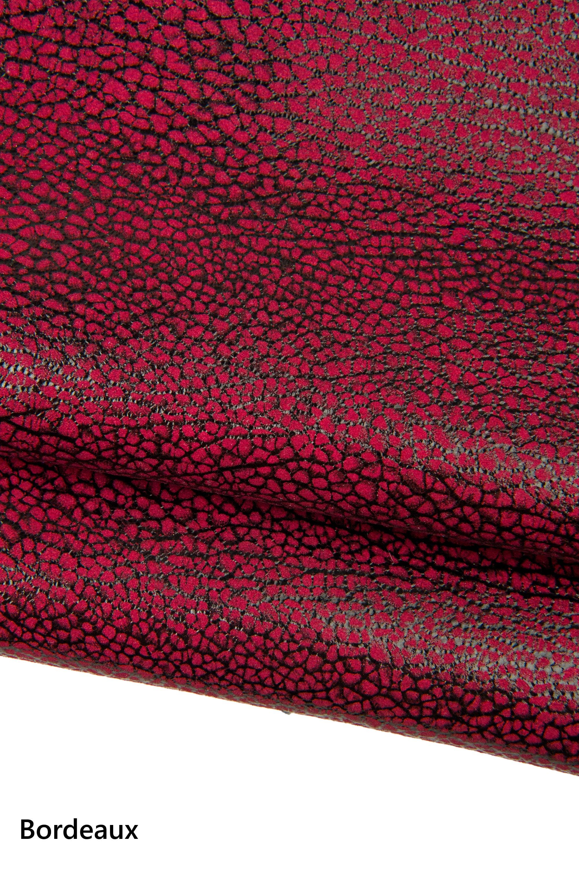 Beautiful elephant printed leather skins, animal texture on suede goatskins, green, yellow, burgundy metallic soft skins ideal for crafting and DIY projects.