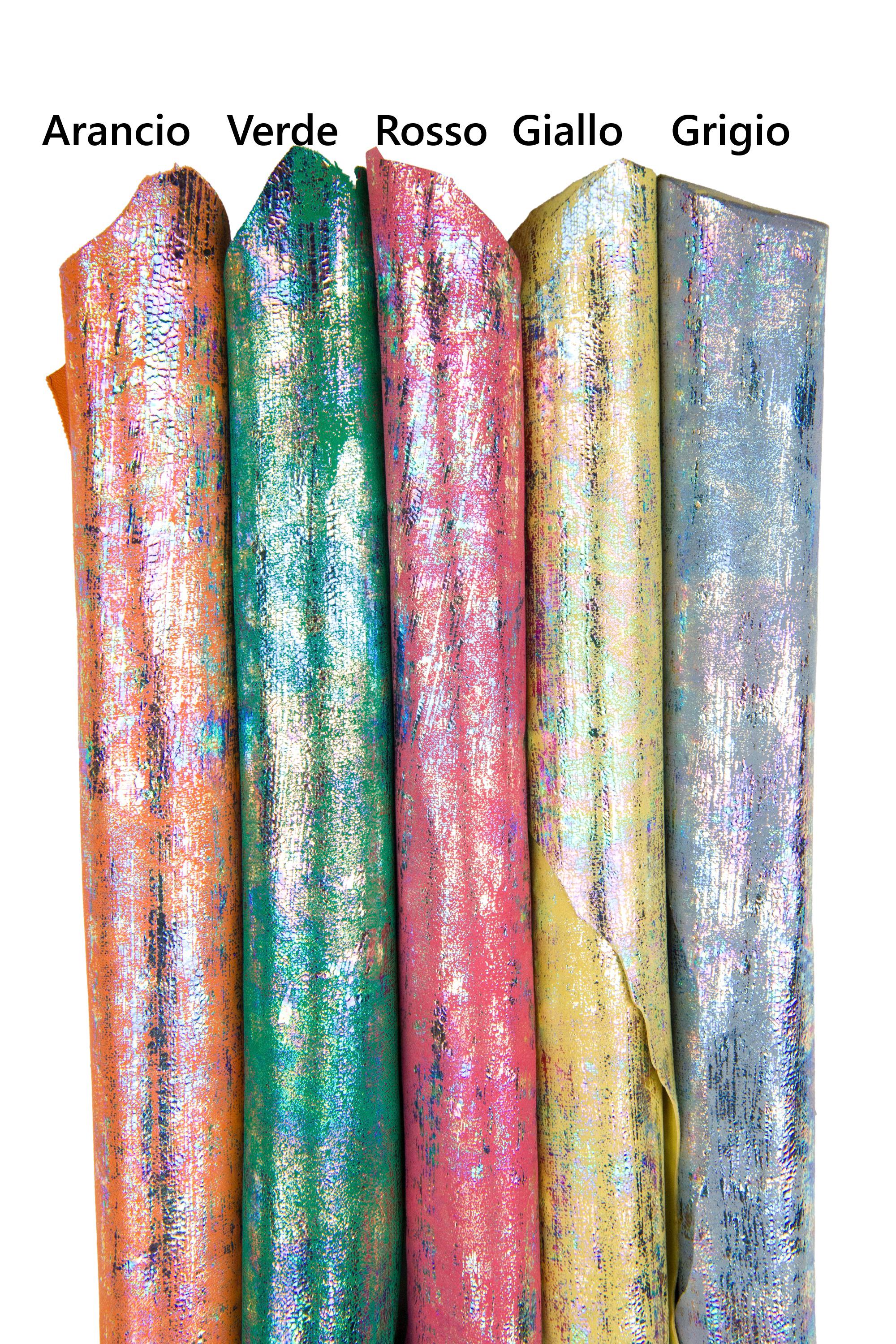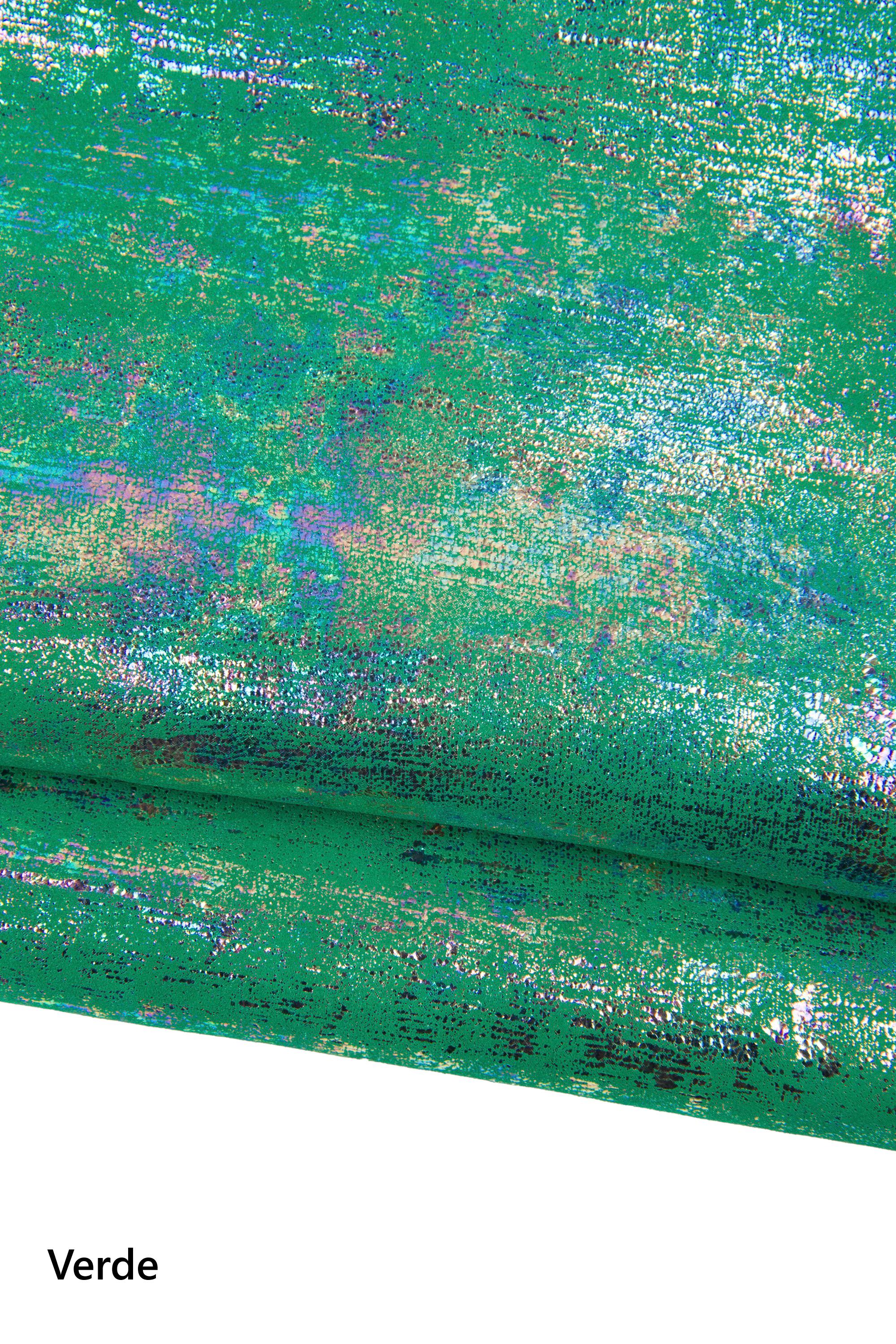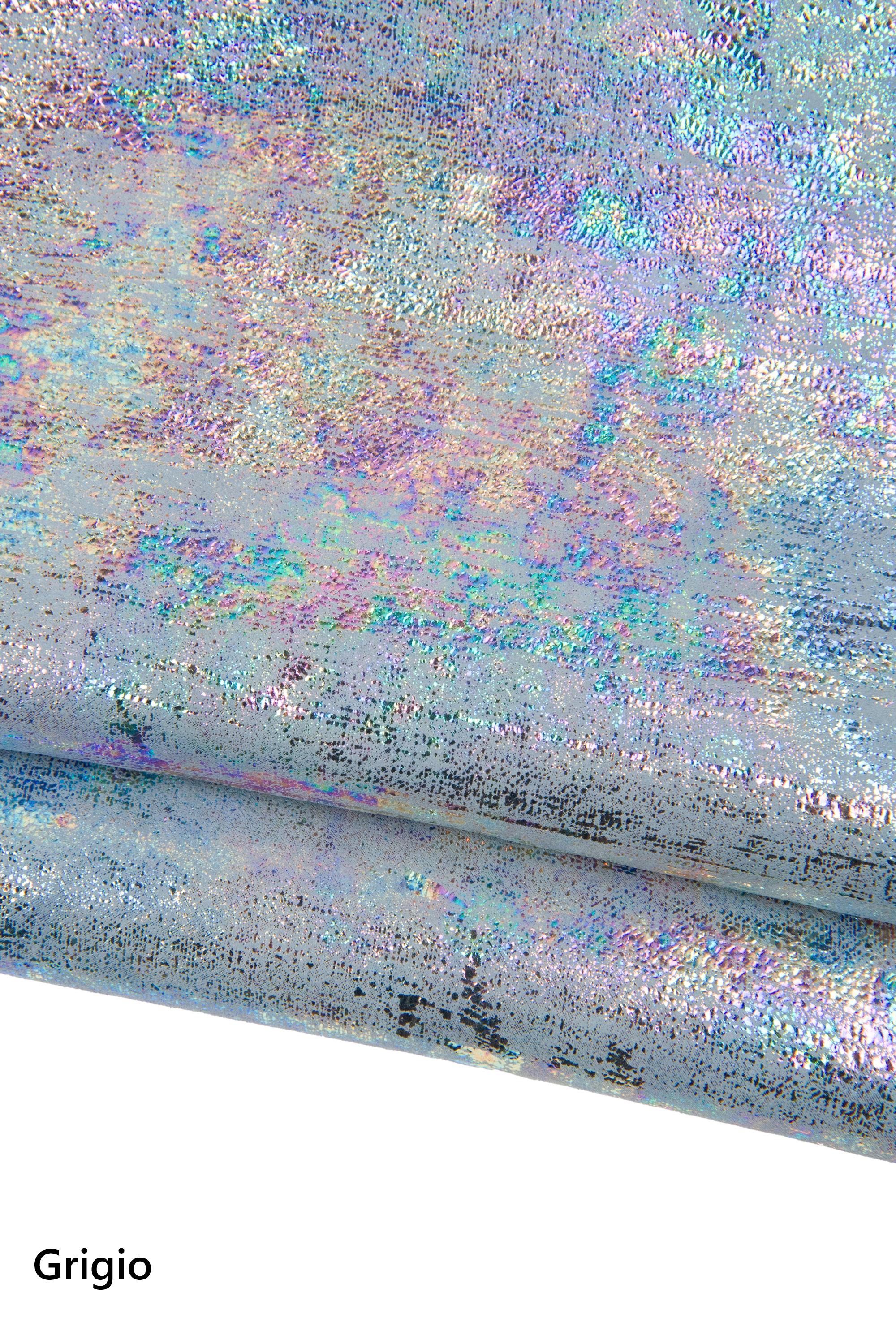 Wonderful holographic metallic leather skin, iridescent metallic print on suede goatskin - in different colors. Ideal or DIY creations.