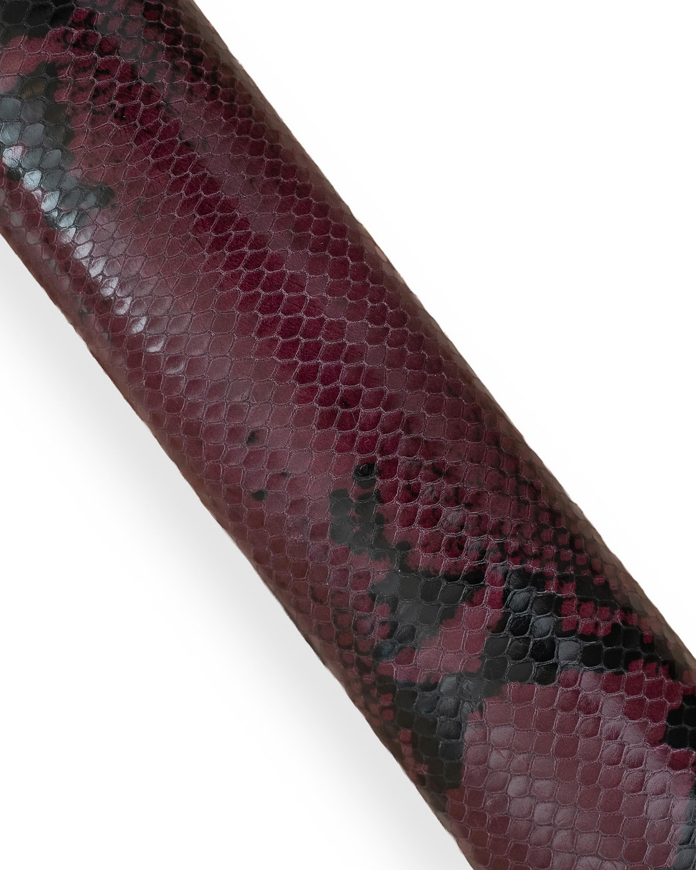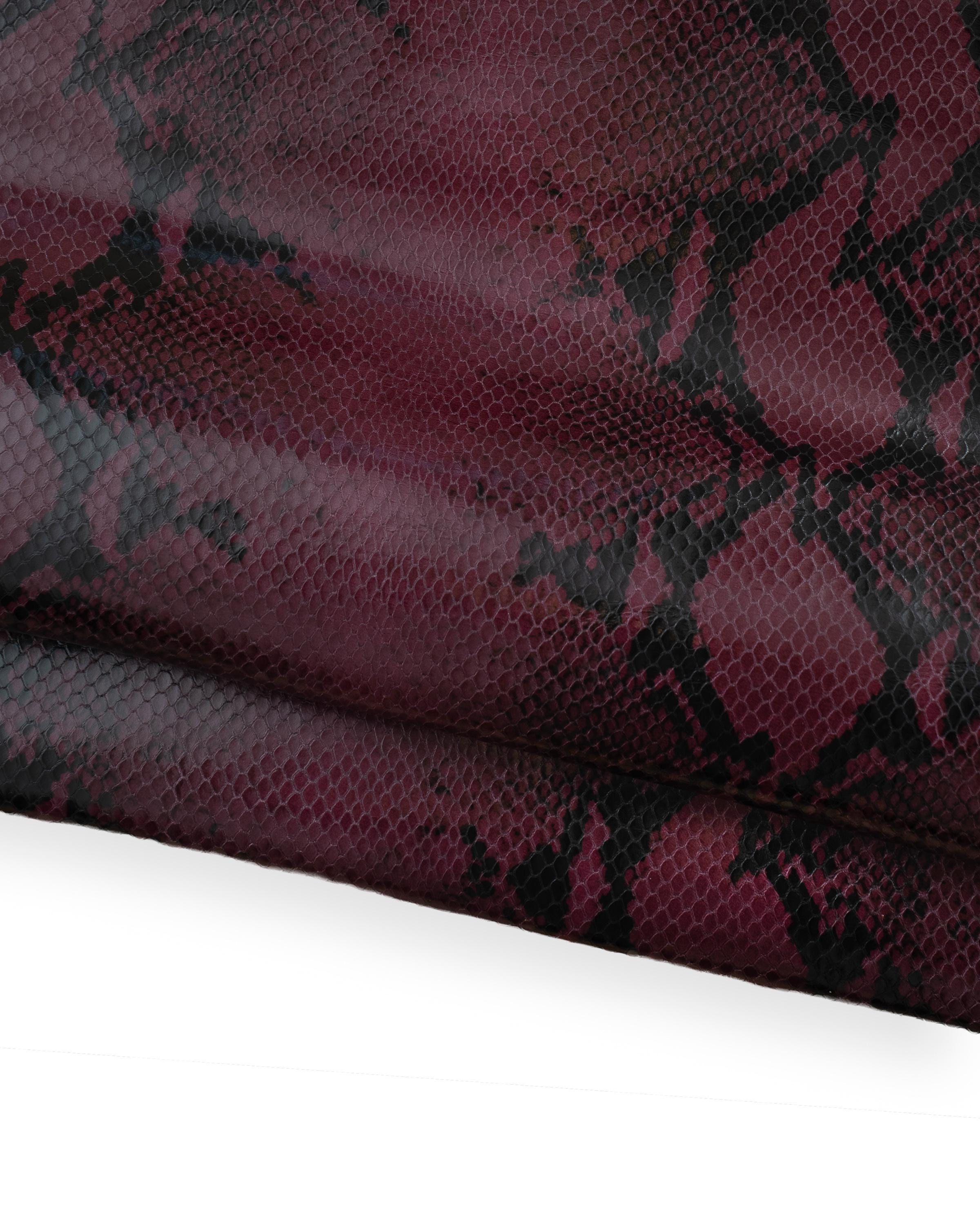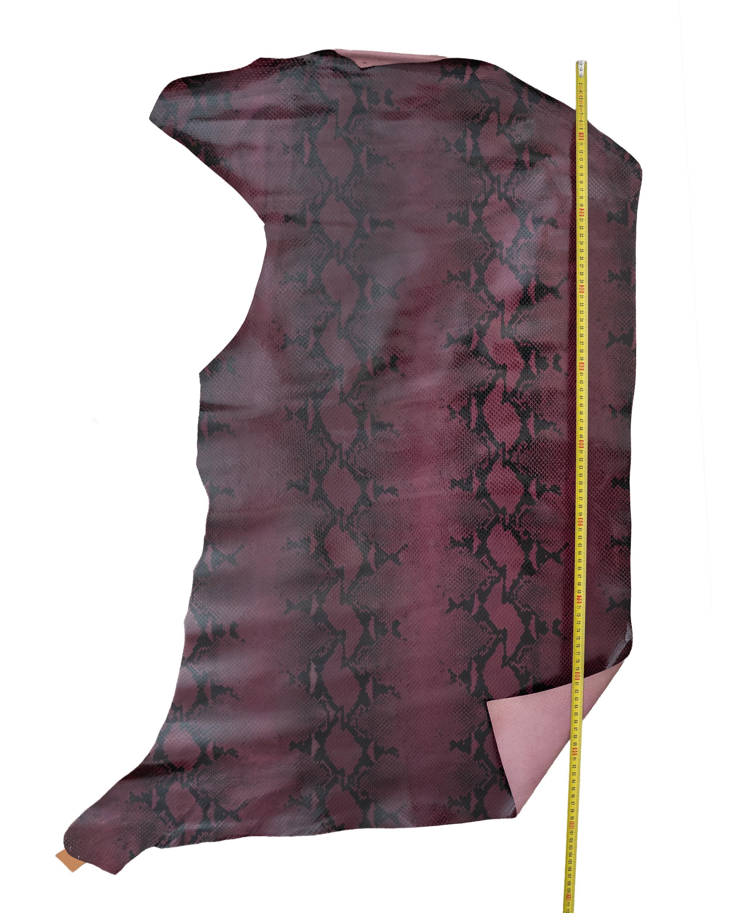 Wonderful burgundy python textured leather hide, snake printed cowhide, glossy soft reptile hide for hobbyists.