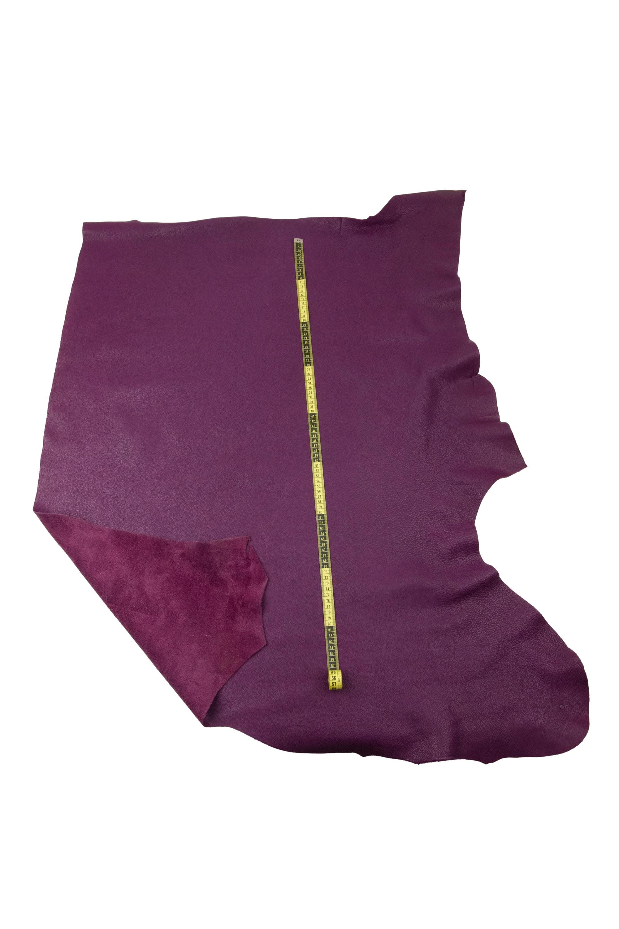 Fabulous eggplant purple grainy printed cowhide, sporty semi glossy leather hide, soft thick calfskin. Ideal for crafters, perfect for bags and wallets.
