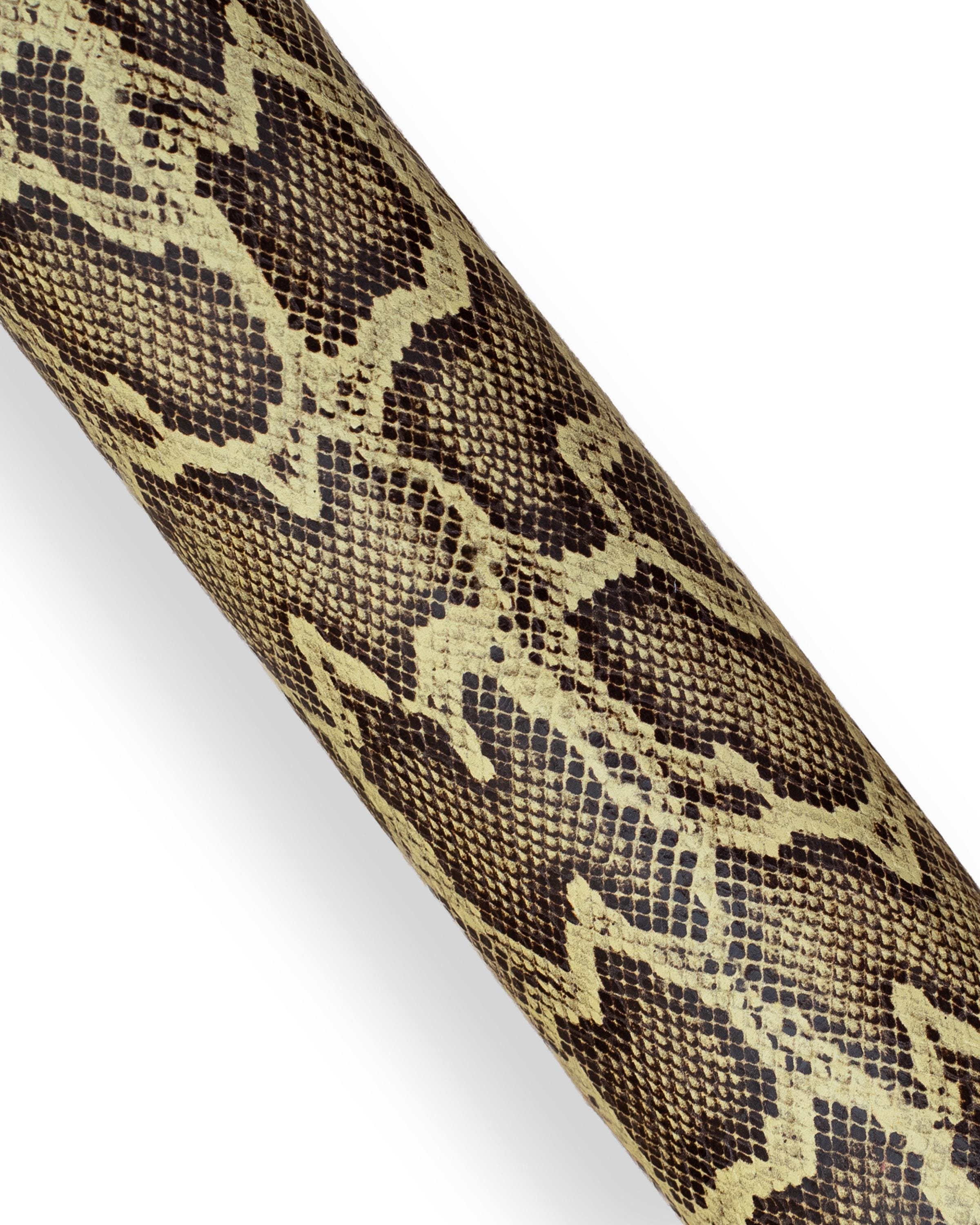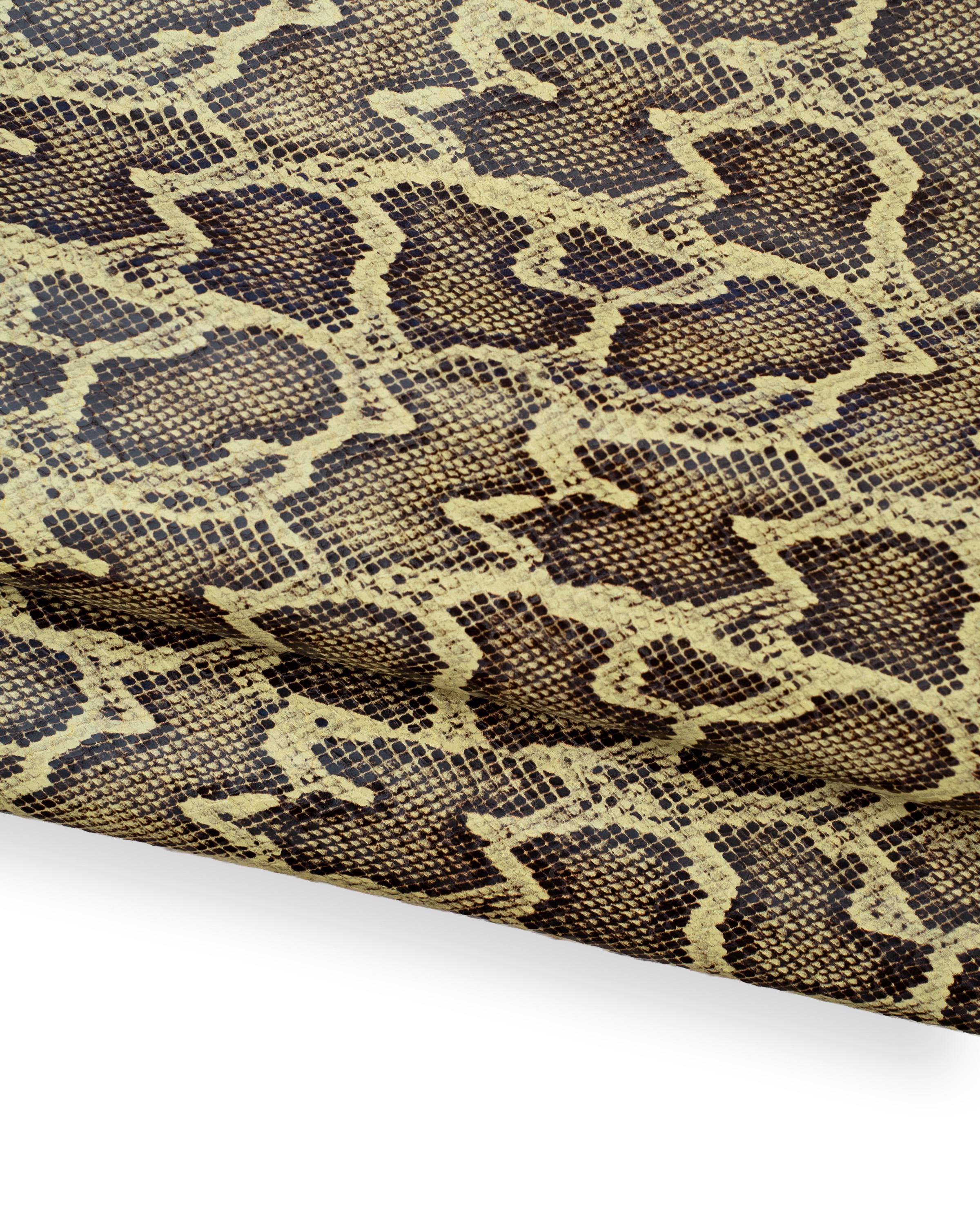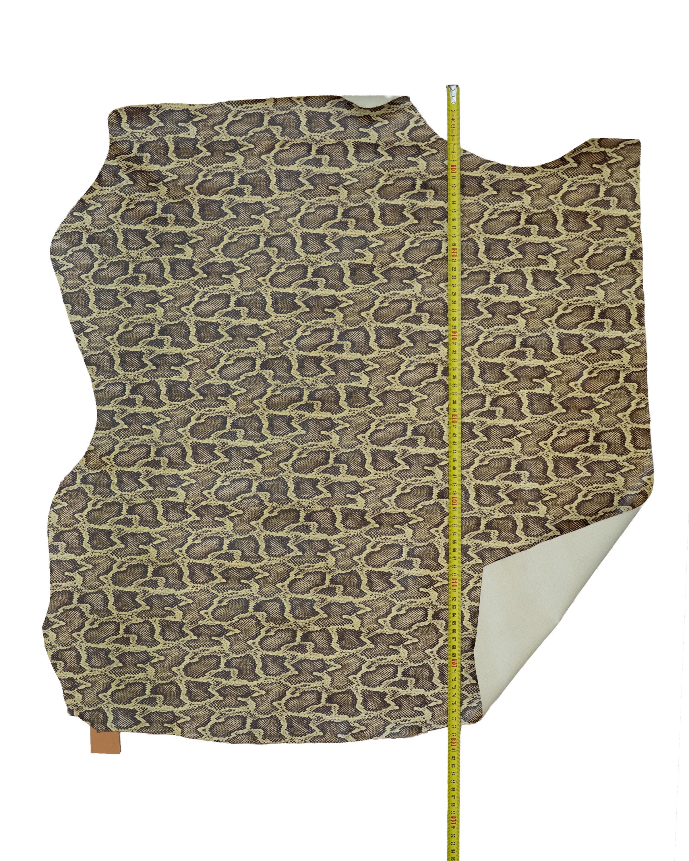 Beautiful python textured leather hide, beige brown reptile printed calfskin, snake pattern on soft hide.
