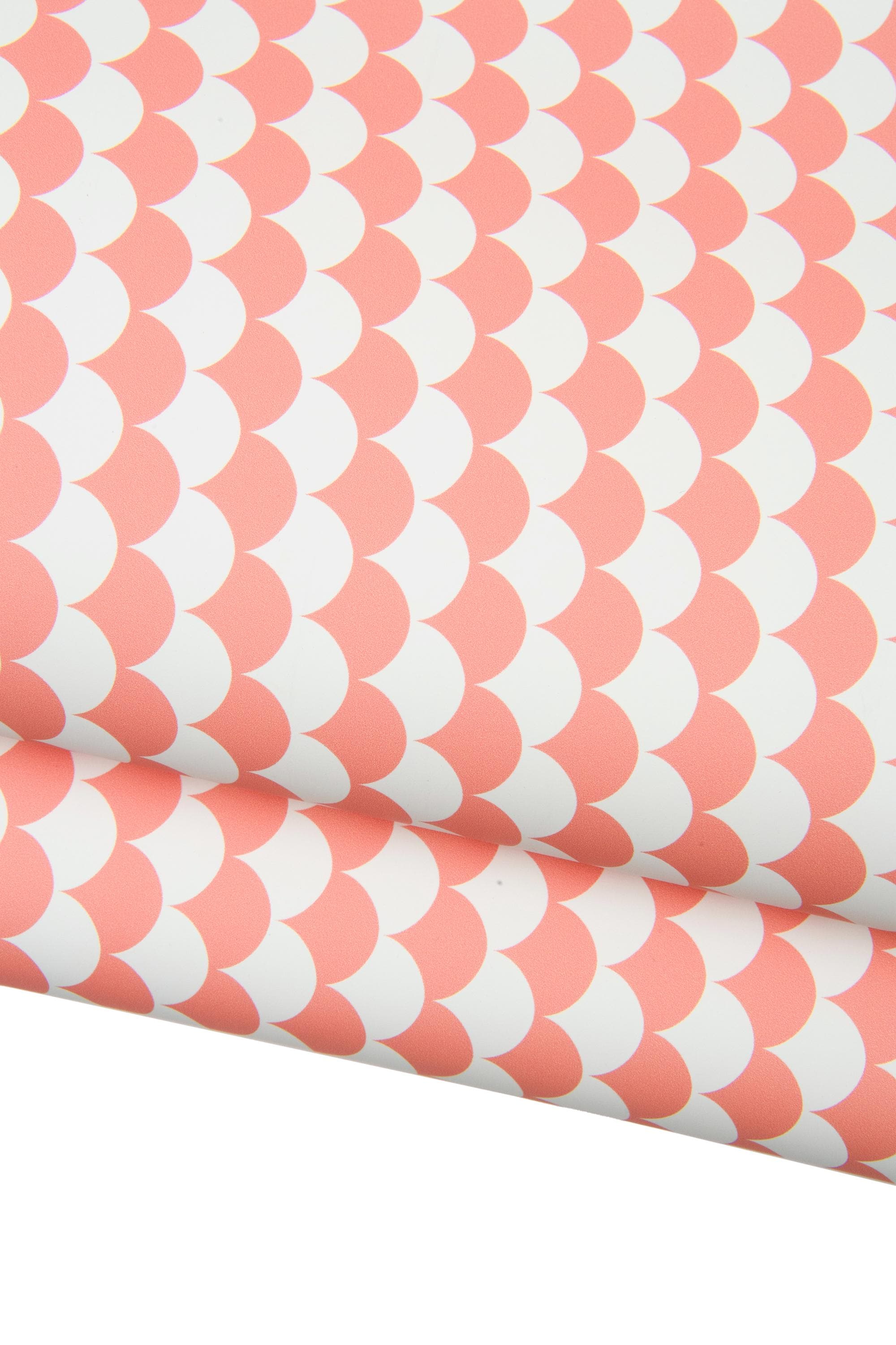 Rare optical printed cowhide, white - salmon pink texture on semi stiff matt calfskin, ideal for crafting.