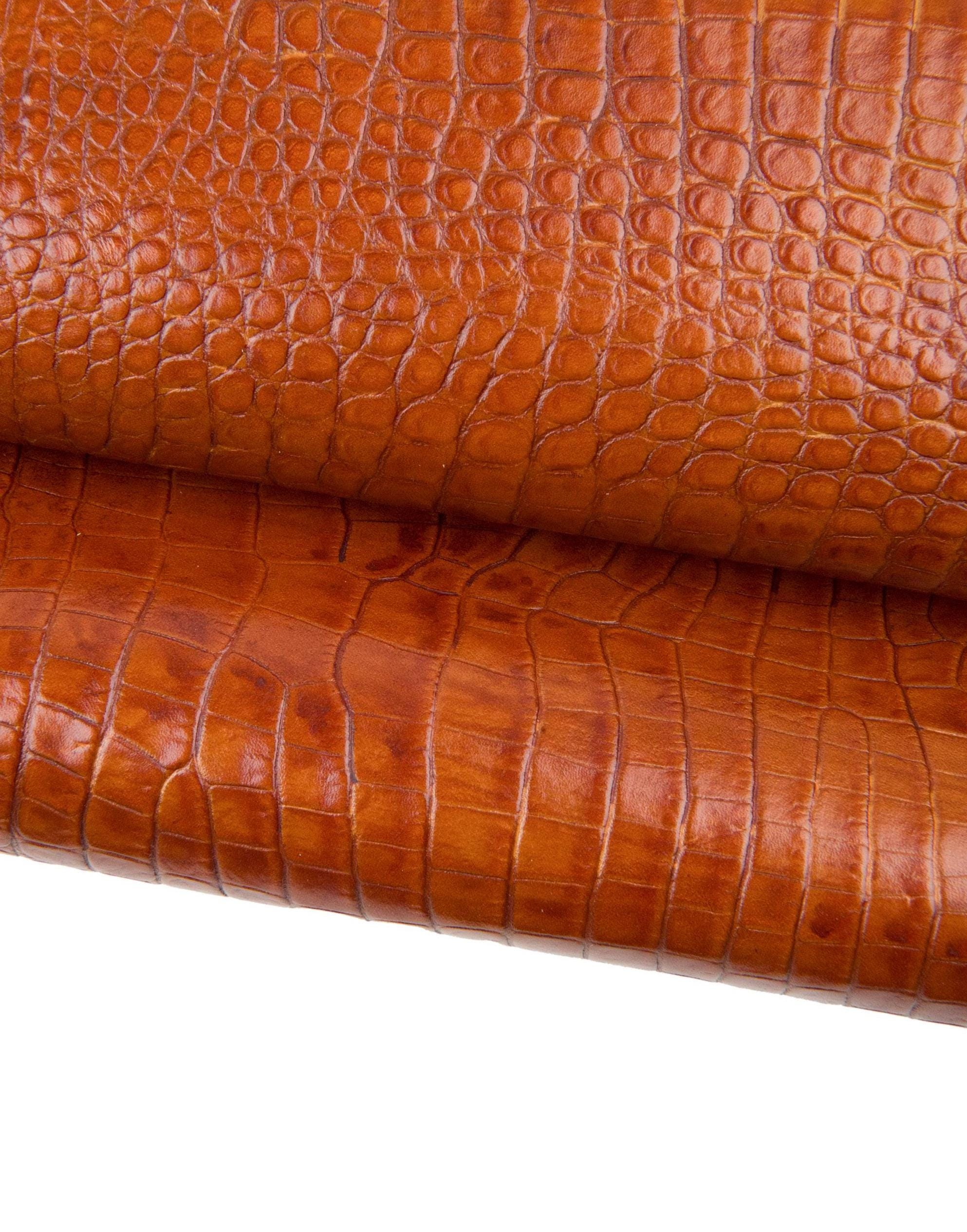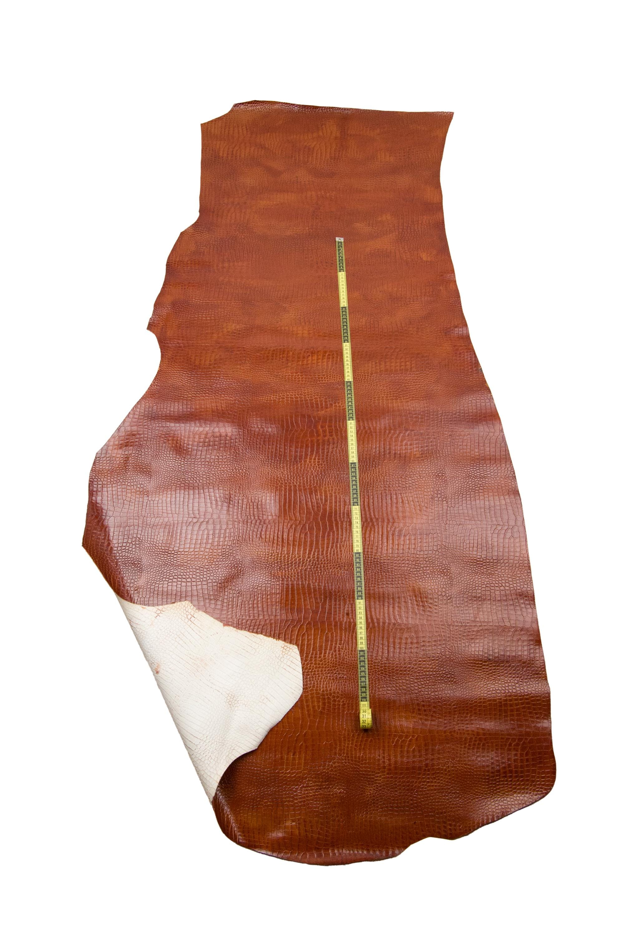 Amazing brown crocodile embossed cowhide leather, animal printed glossy calfskin, medium softness. ideal for sjhoes, bags, wallets and other handcrafted items.