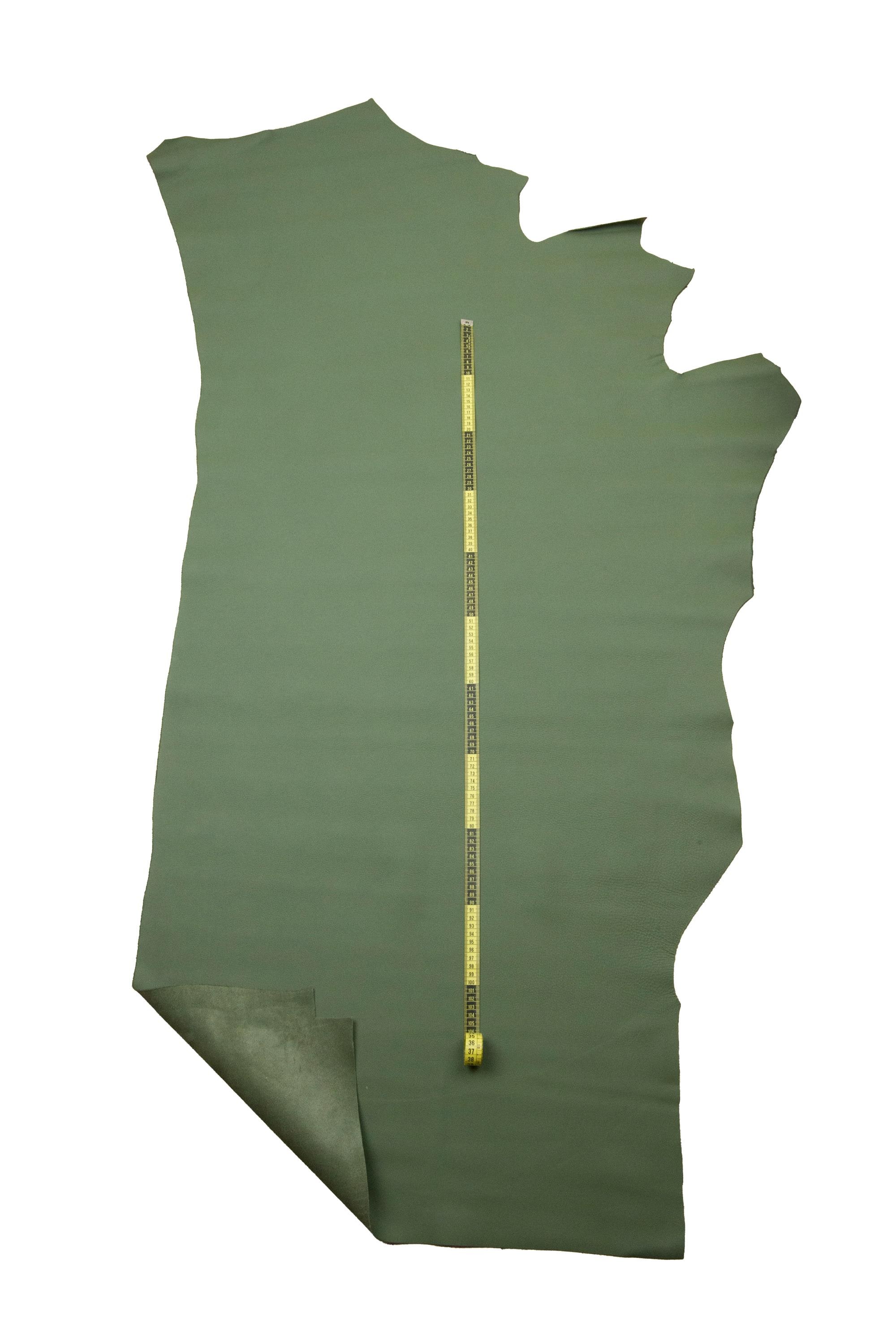 Wonderful military green leather hide, matt cowhide with light grain, sporty soft thick calfskin for crafters.