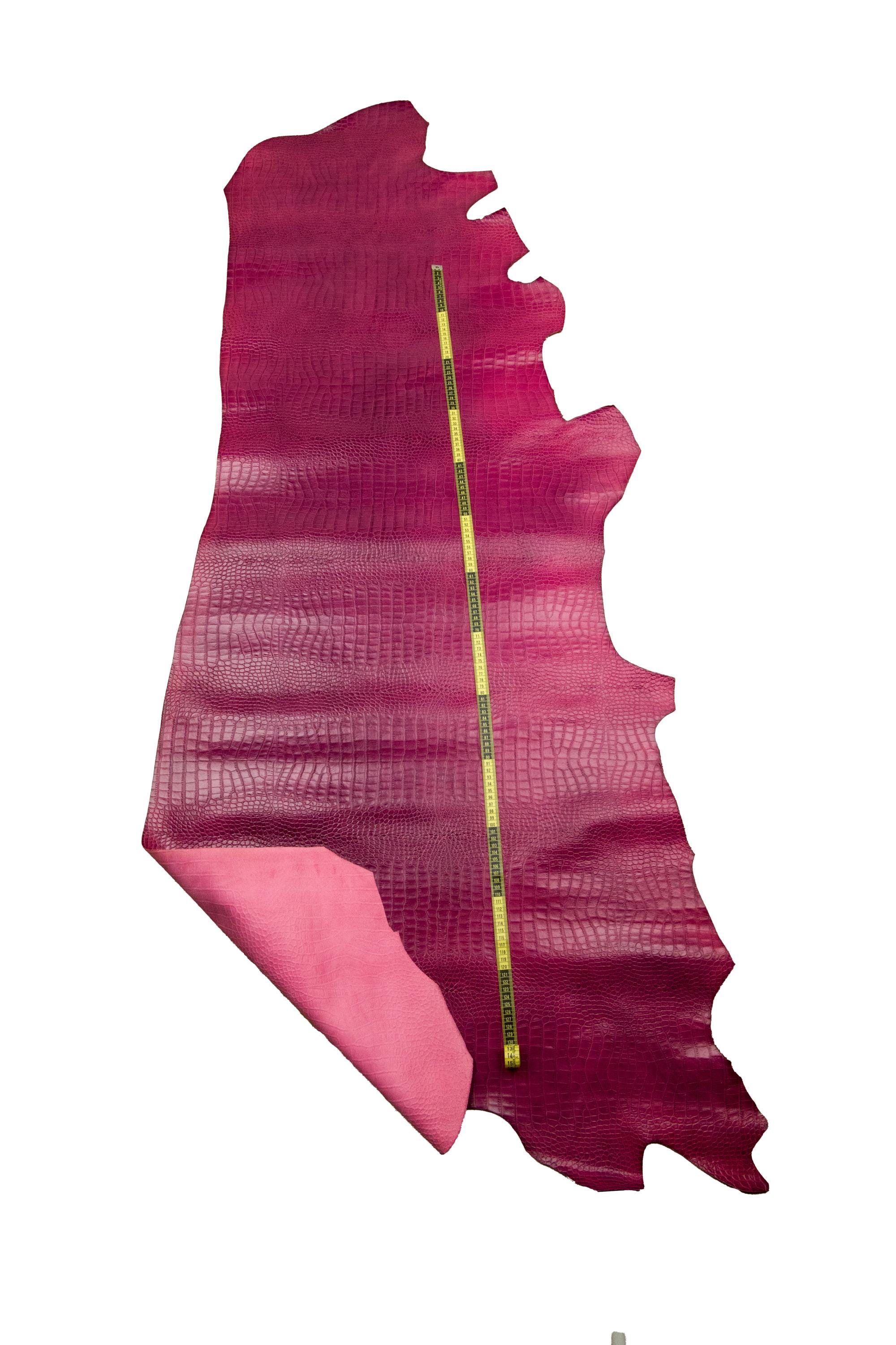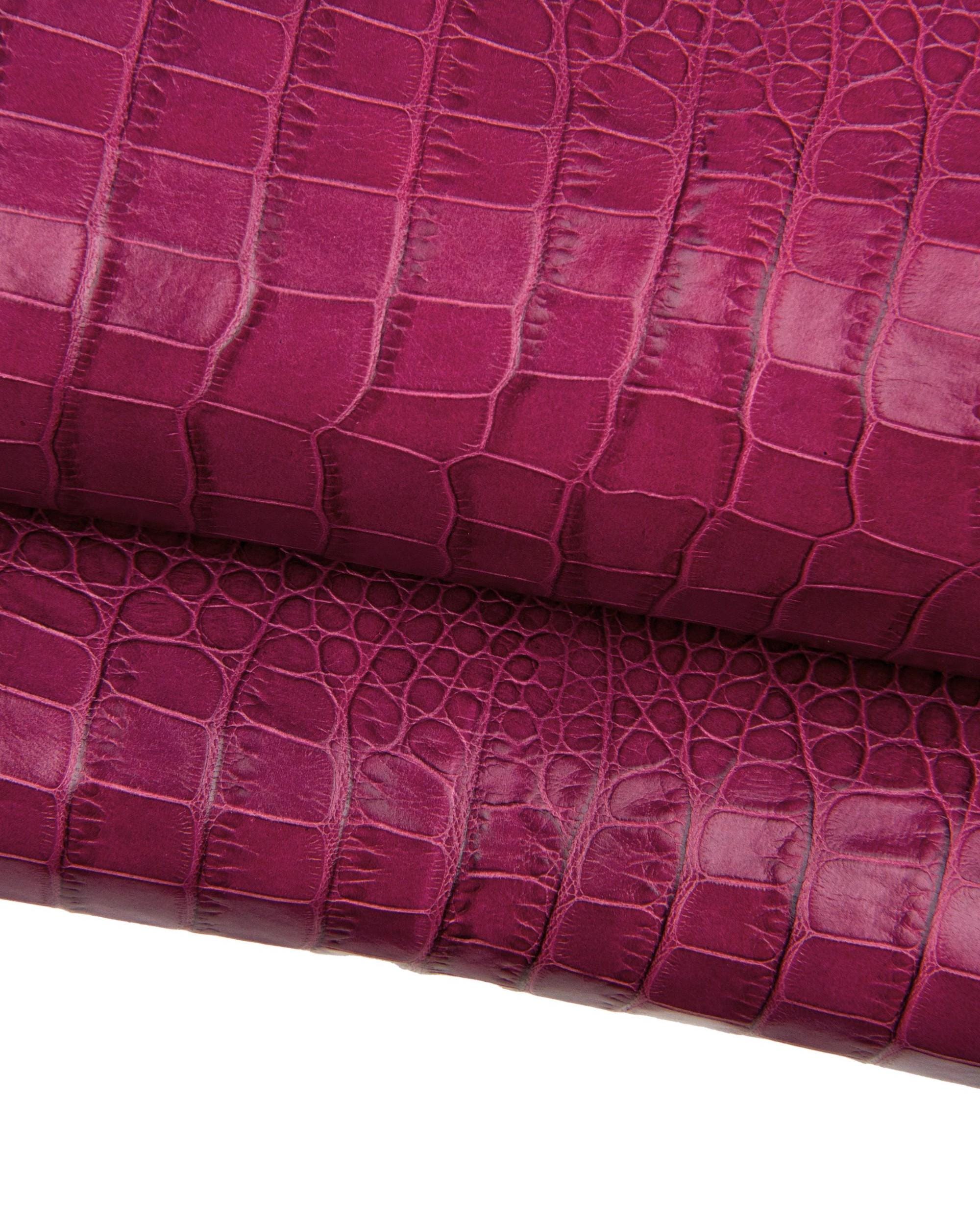 Fabulous burgundy crocodile leather hide, glossy embossed calfskin. Slightly stiff.