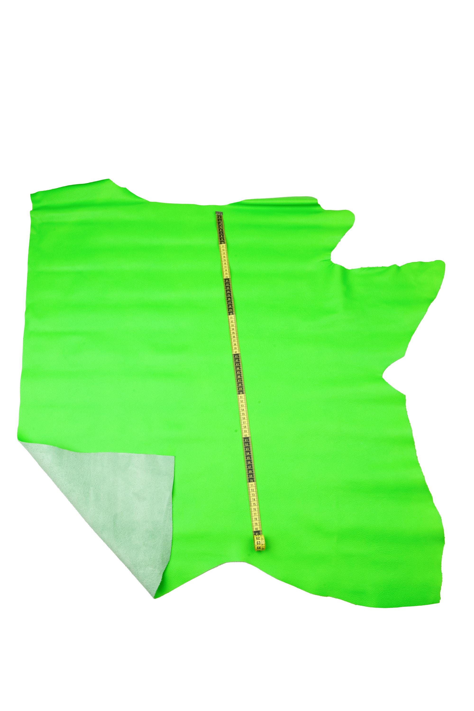 Neon green pebble grain printed cowhide, sporty soft leather hide, fluo green calfskin 1.6 -1.8 mm for crafting