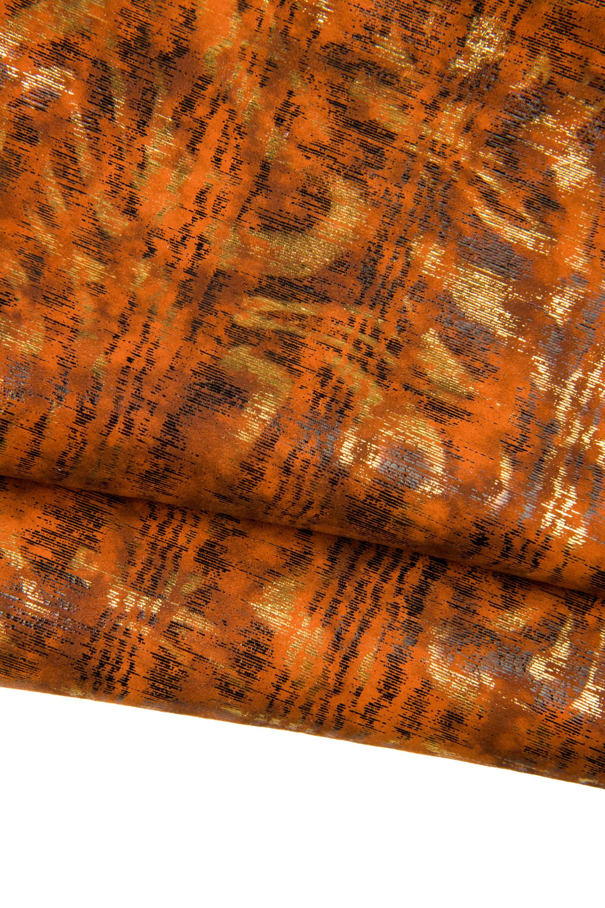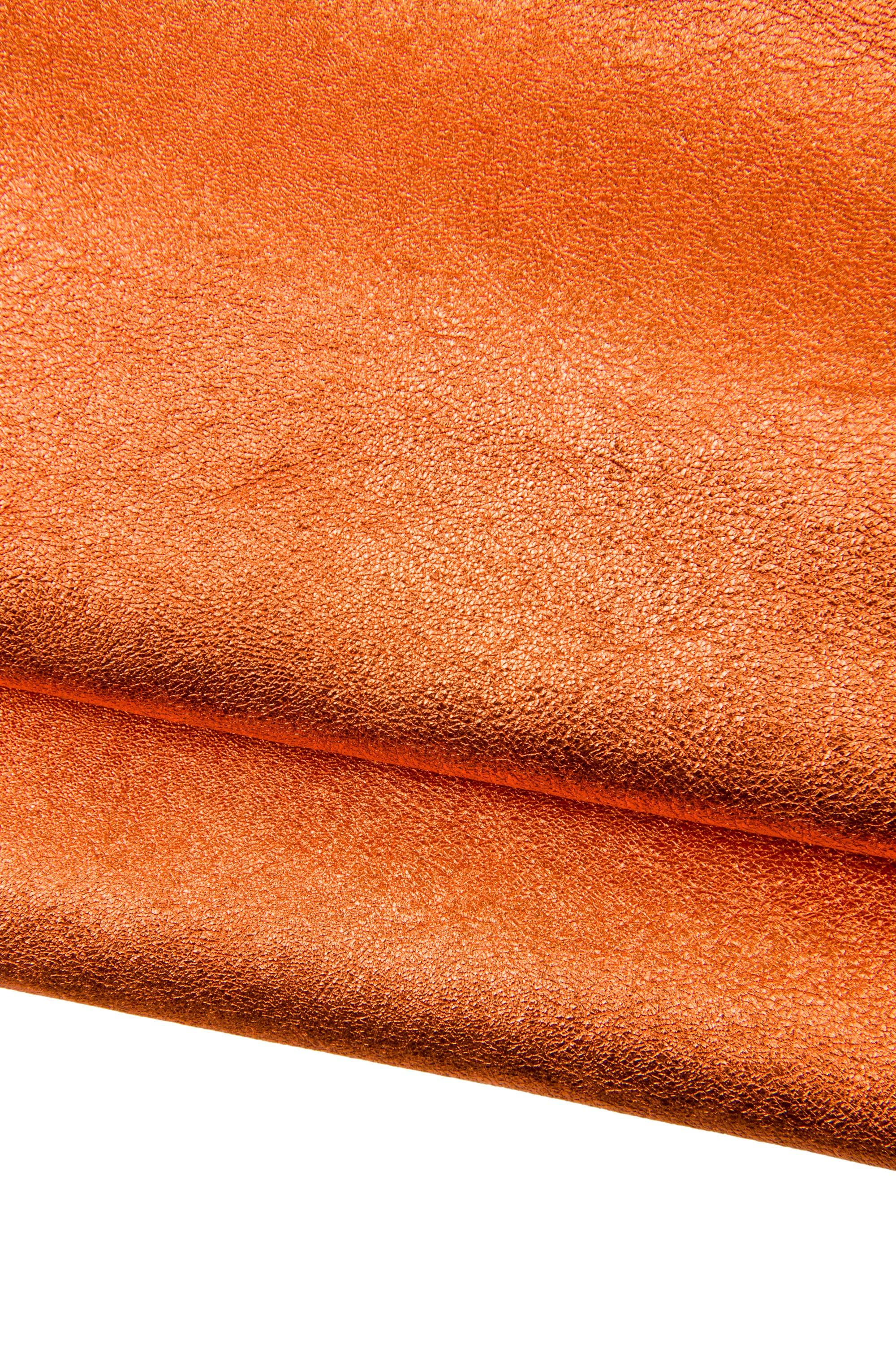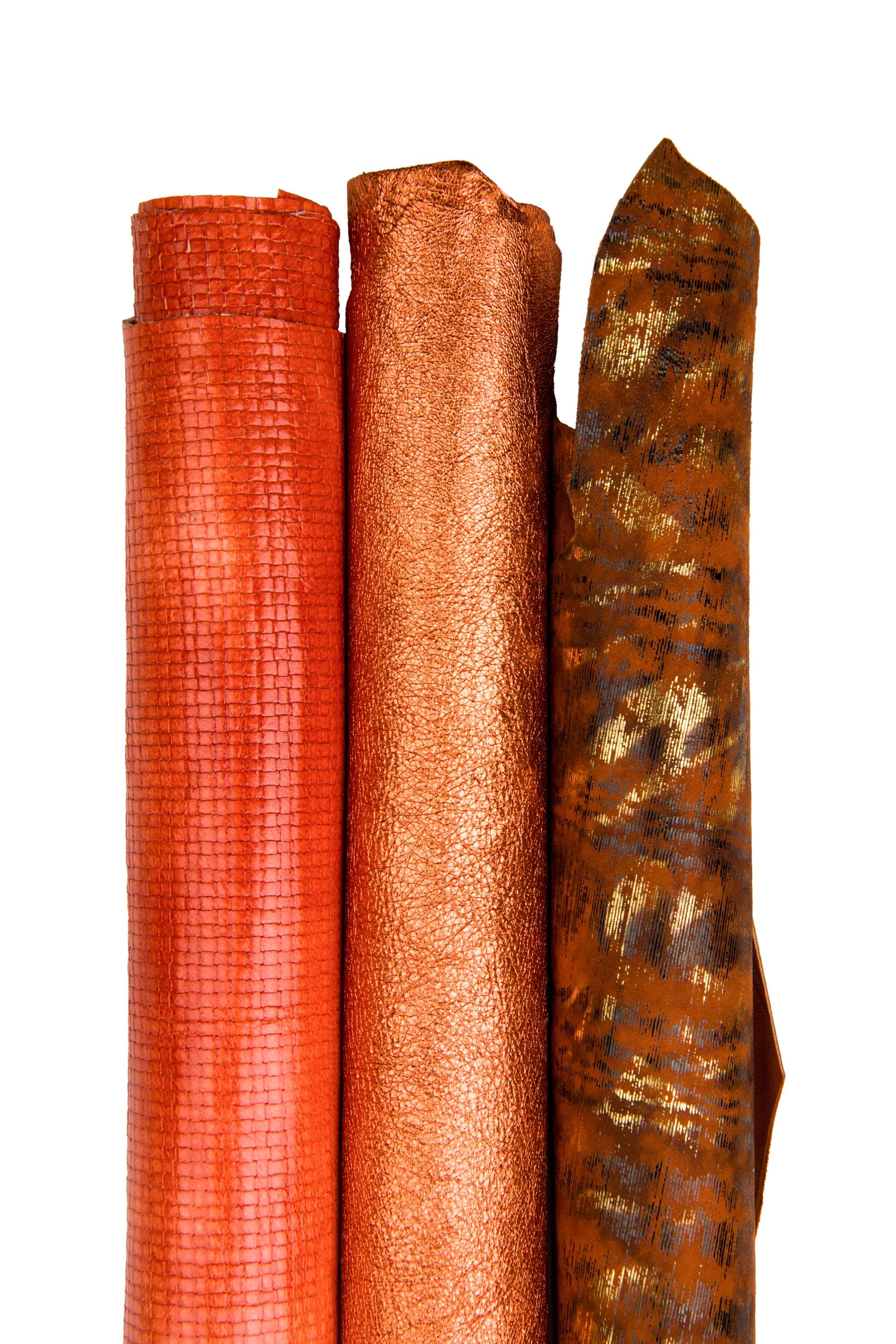 Incredible bundle of 3 orange, soft goatskins, assortment of metallic textured matching leather skins for crafters, as per picture.