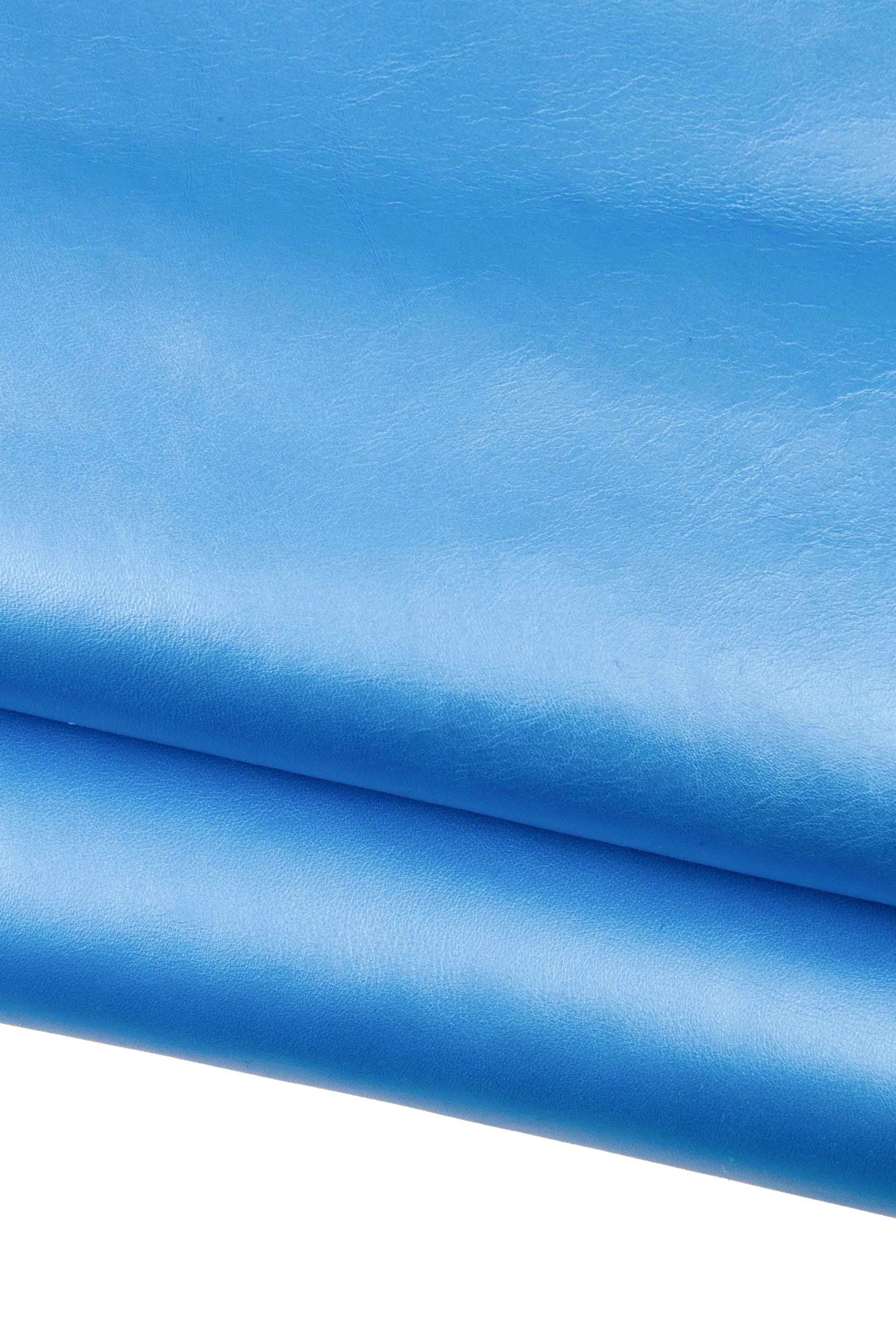 Stunning light blue metallic letaher hide, glossy soft cowhide, smooth calfskin for hobbyists.
