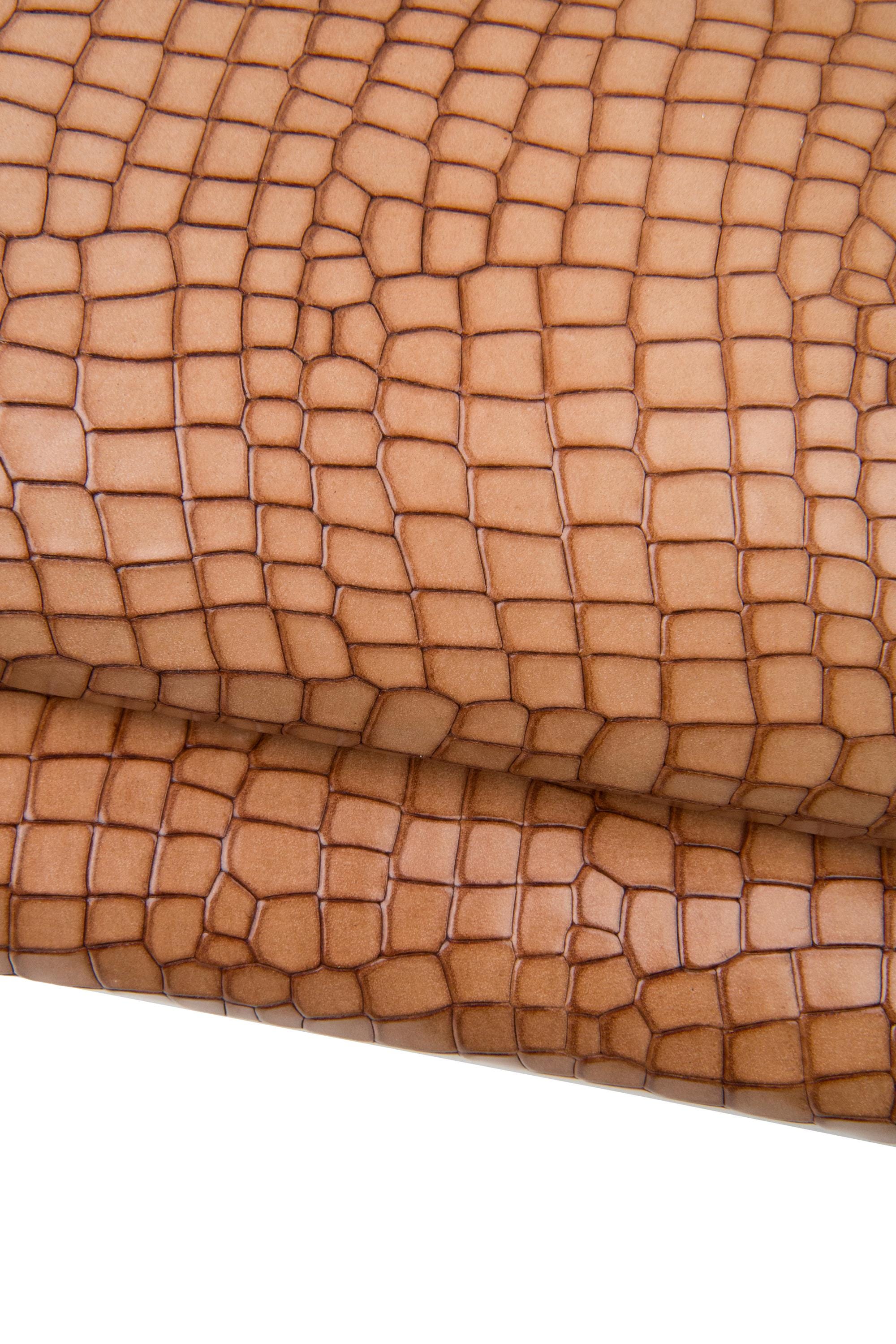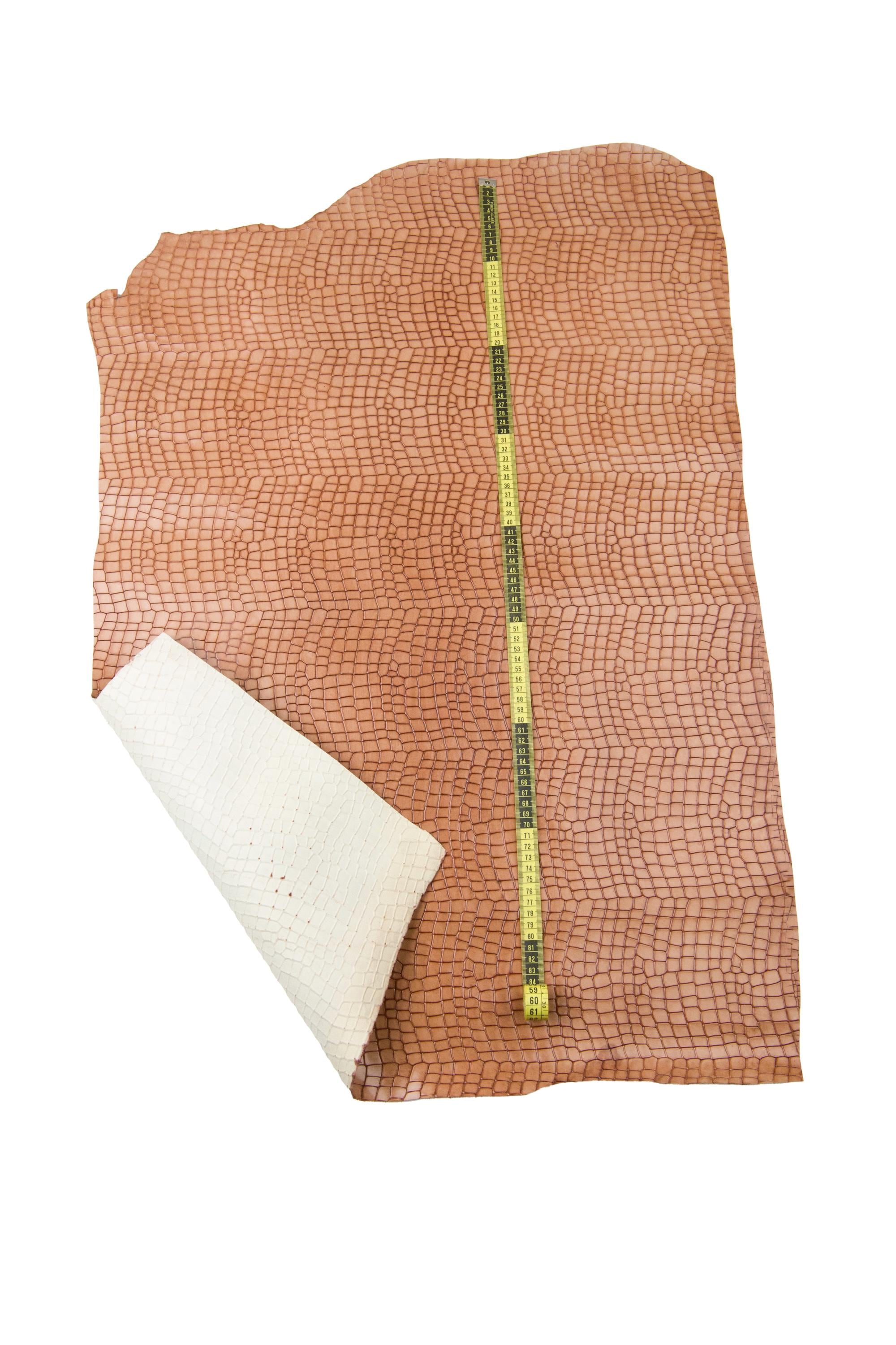 Beautiful crocodile embossed leather hide, beige - pink alligator printed cowhide, glossy calfskin, standard temper. Ideal for crafters and hobbyists.