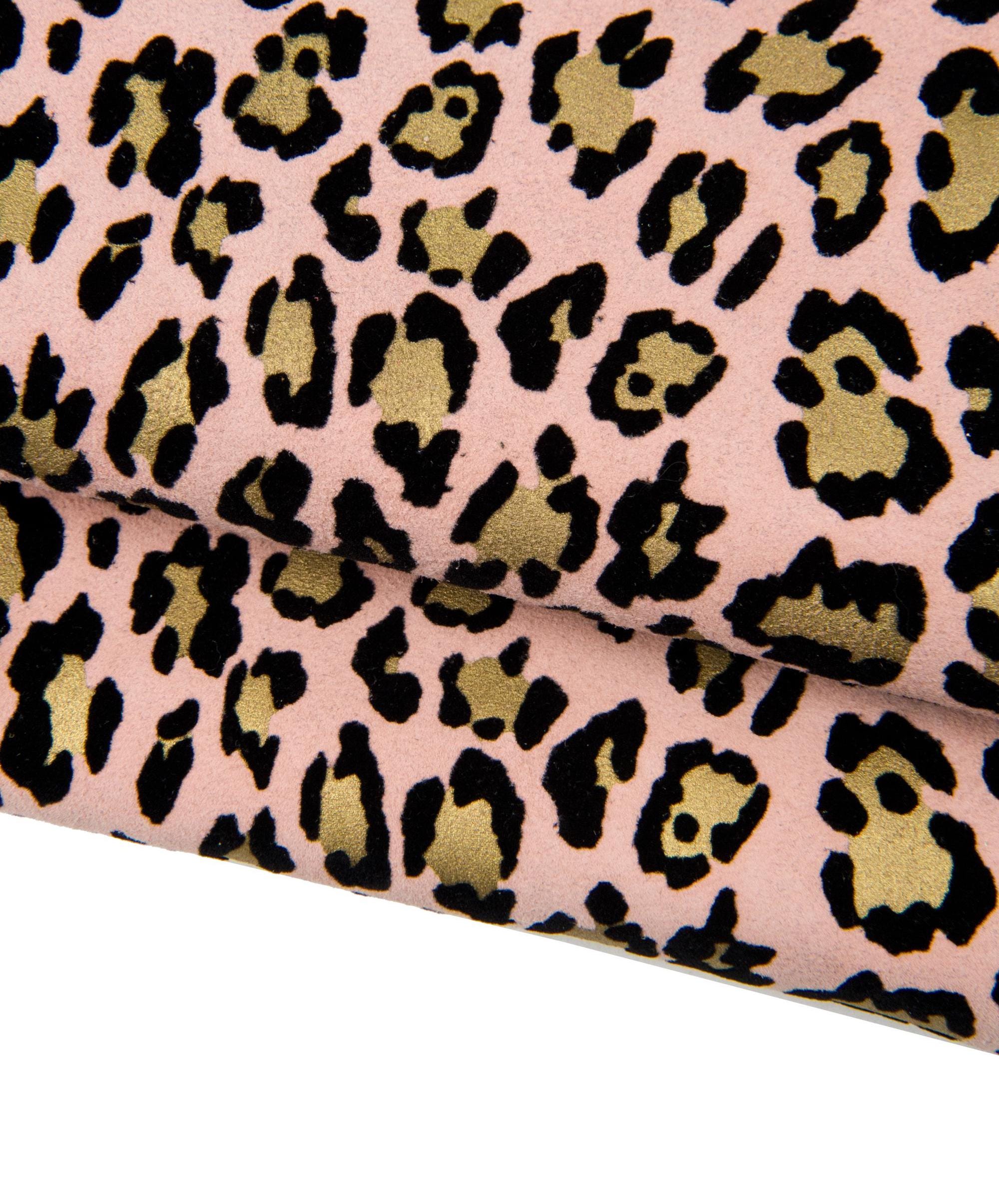 Stunning leopard suede leather hide, animal printed goatskin, pink gold and black tones for hobbyists