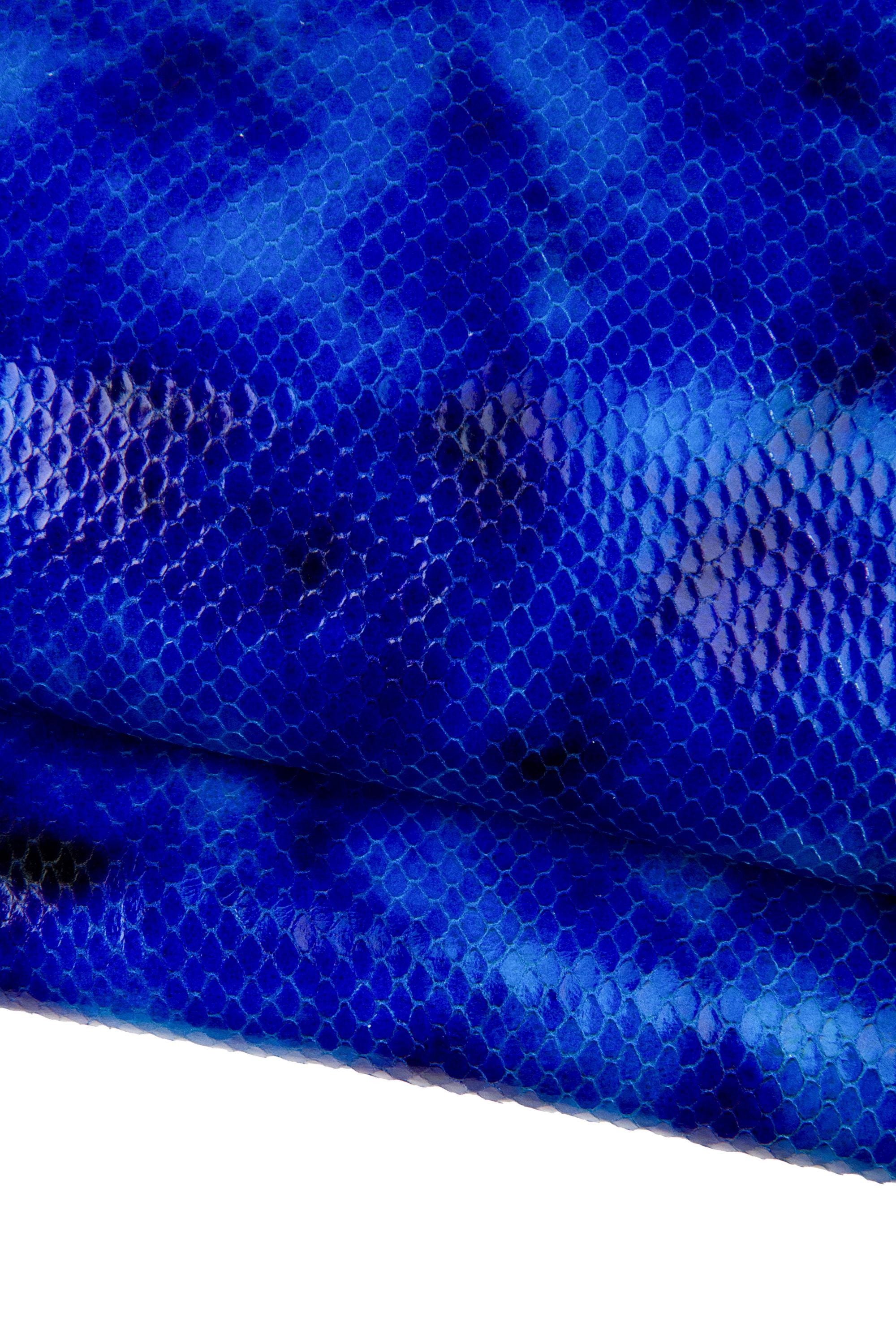 Beautiful set of 2 blue leather skins, solid color nappa sheepskin + snake python printed calfskin, as per picture.