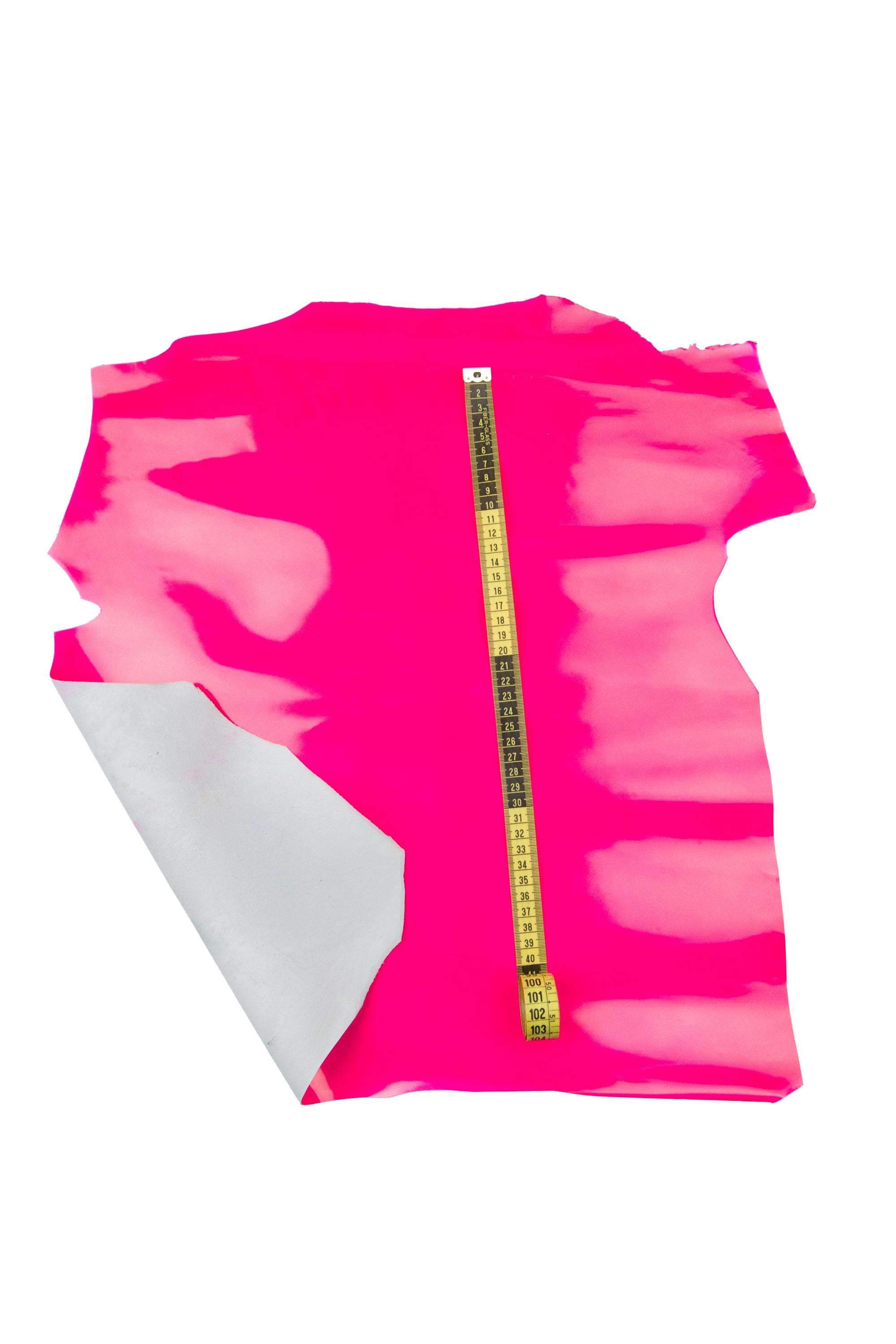 Special fluo fuchsia patent leather hide, hot pink smooth goatskin, glossy semi stiff hide for crafting. It is suitable for your original handcrafted creations.