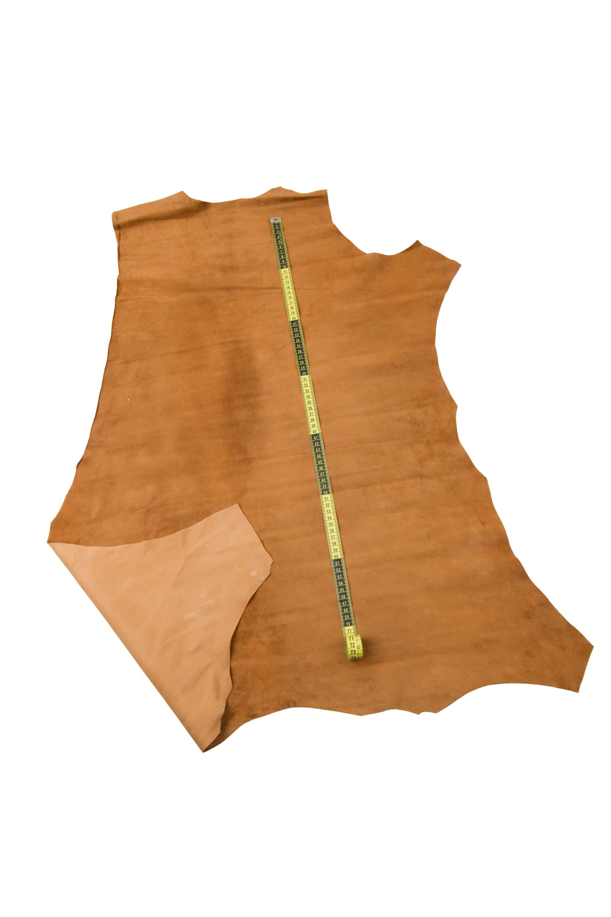 Fabulous tan top quality suede leather hide, tan soft suede calfskin, good writing effect, for DIY projects.