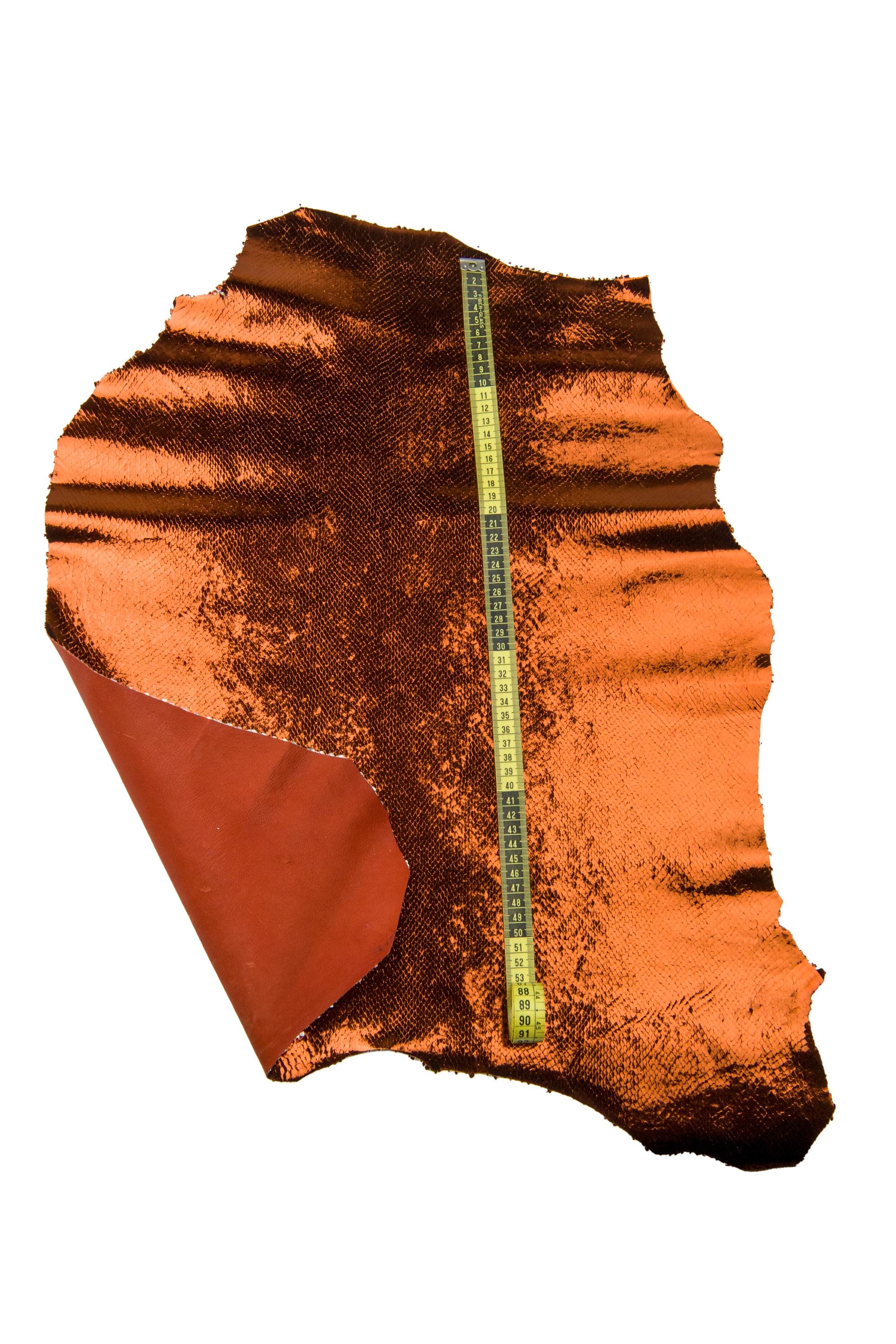 Wonderful rust reptile printed leather skin, purple metallic textured python goatskin, soft hide for hobbyists.