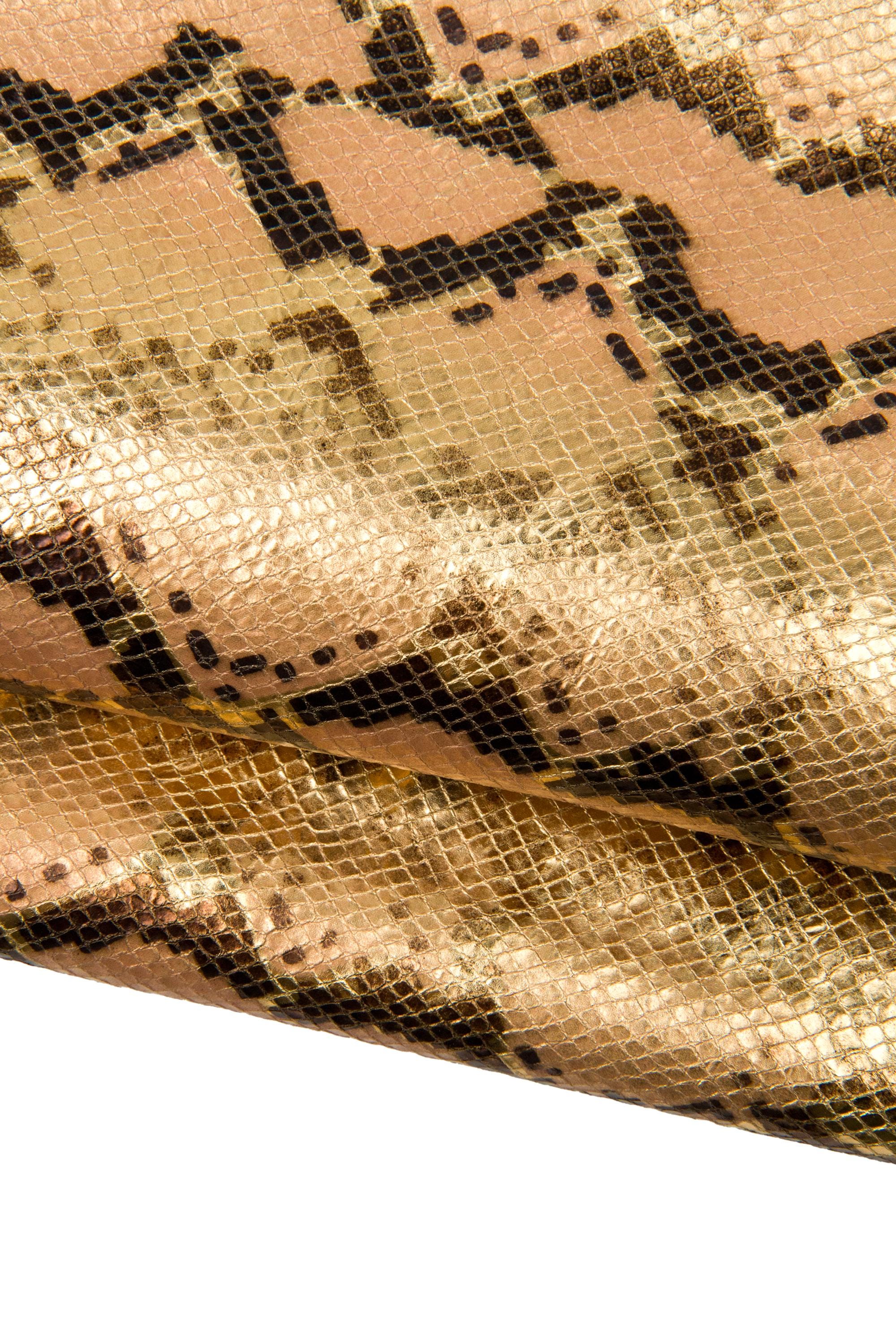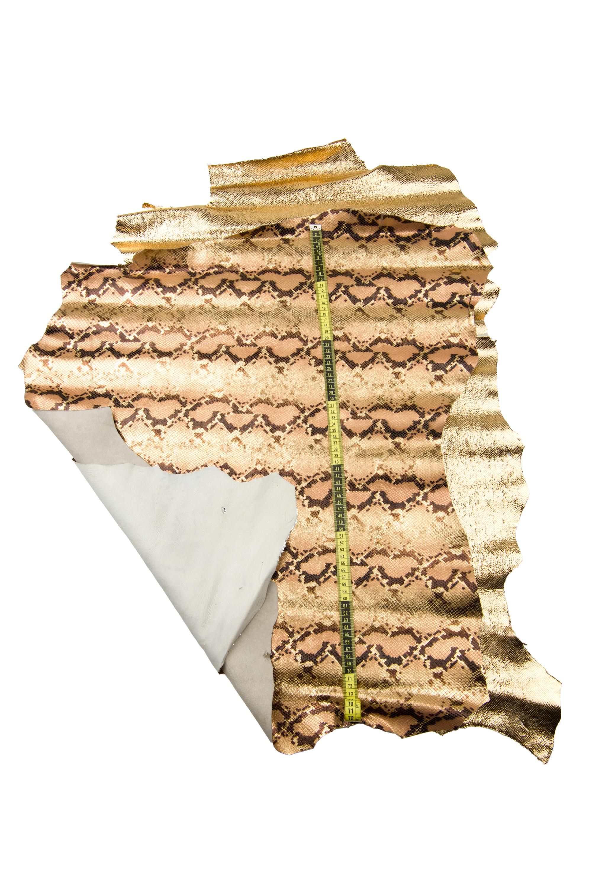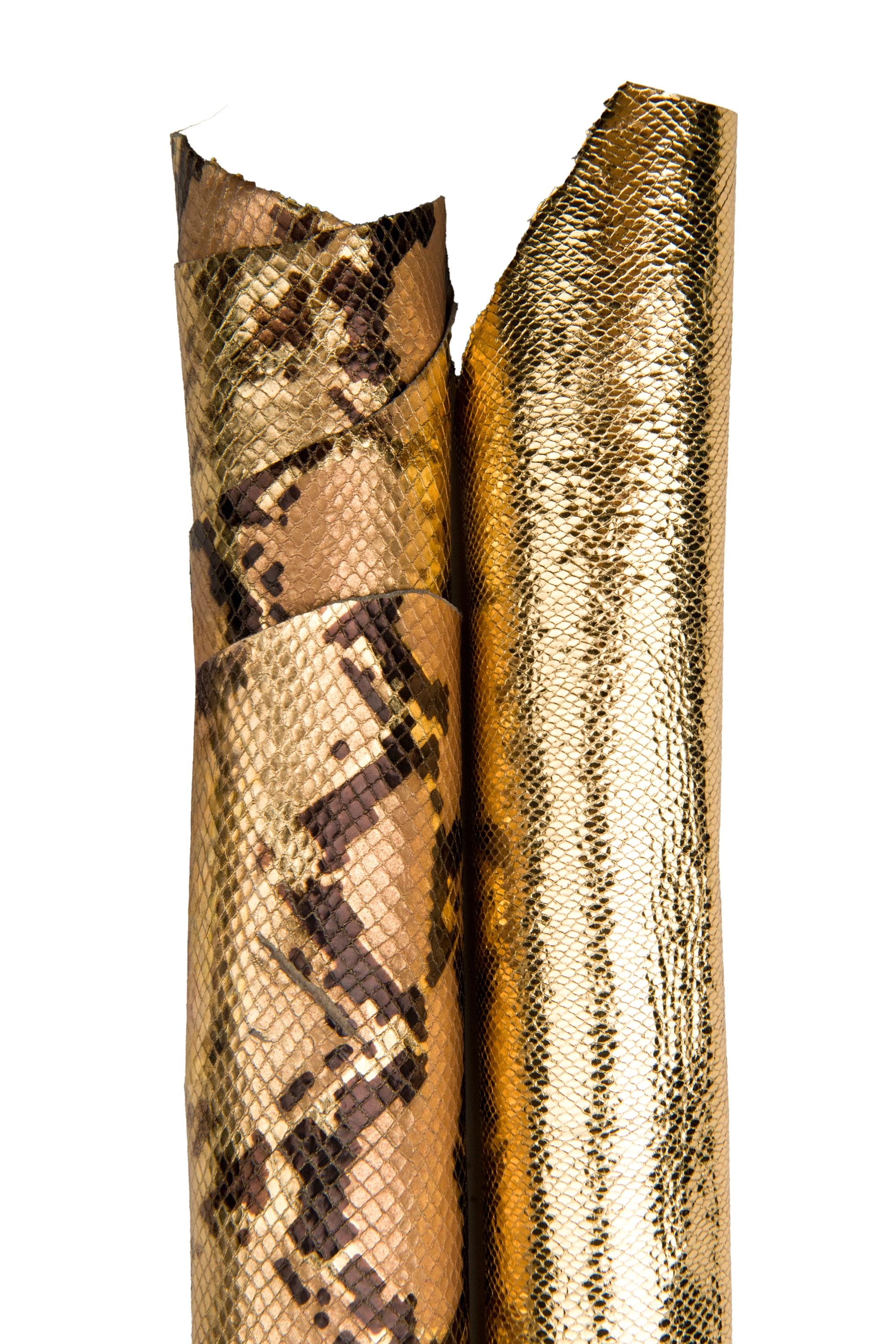 Lot of 2 gold matching leathers: soft and metallic reptile printed goatskins DIY