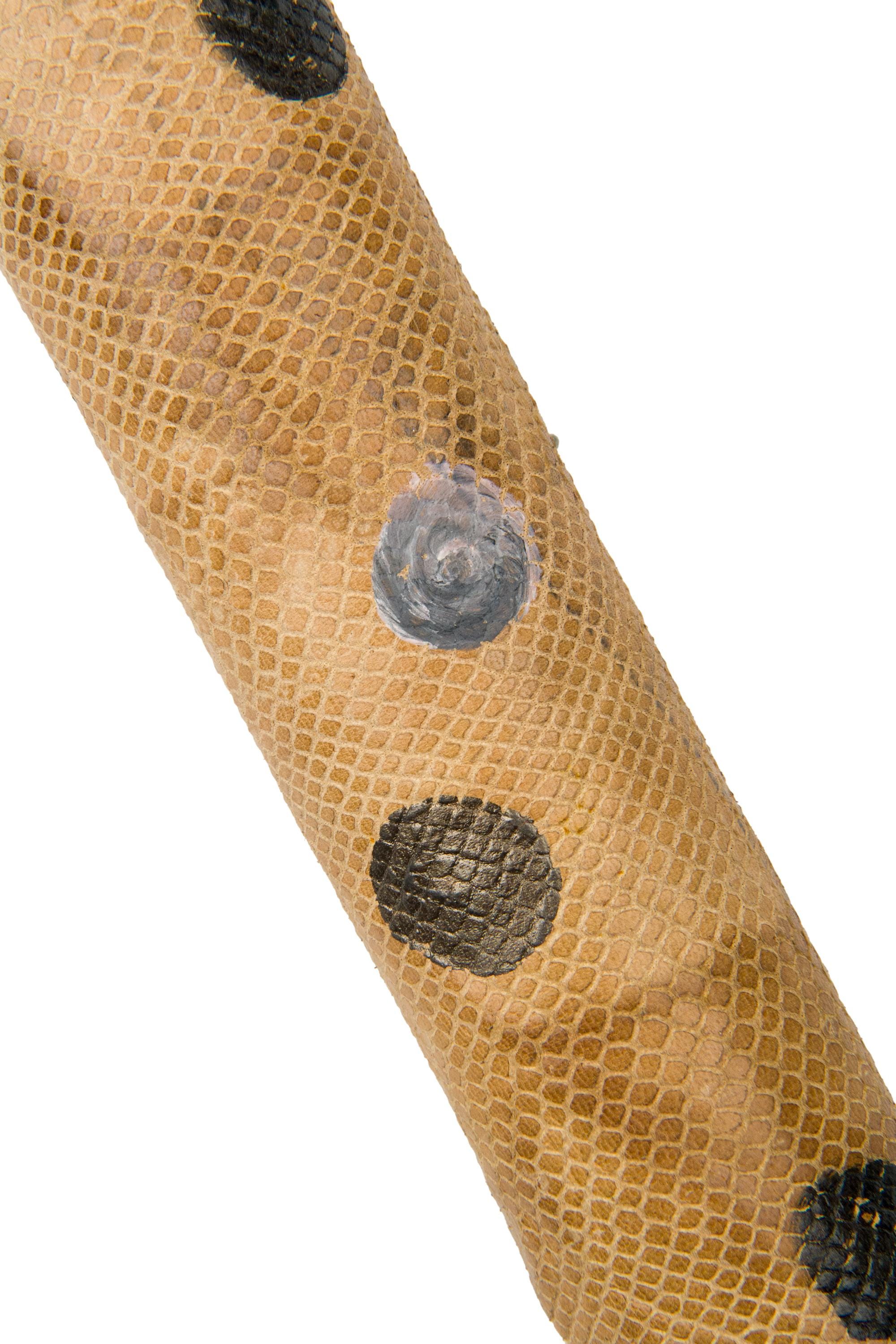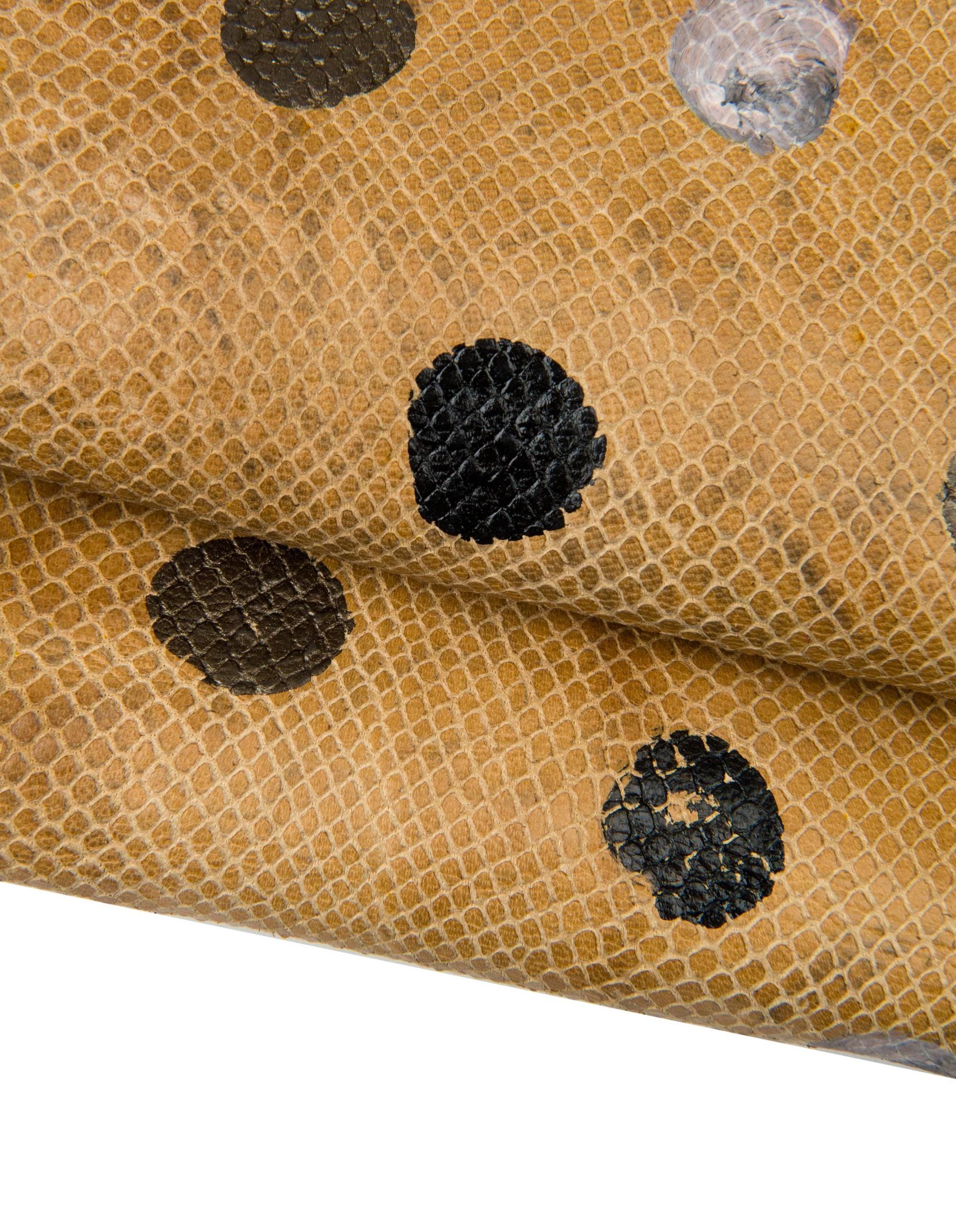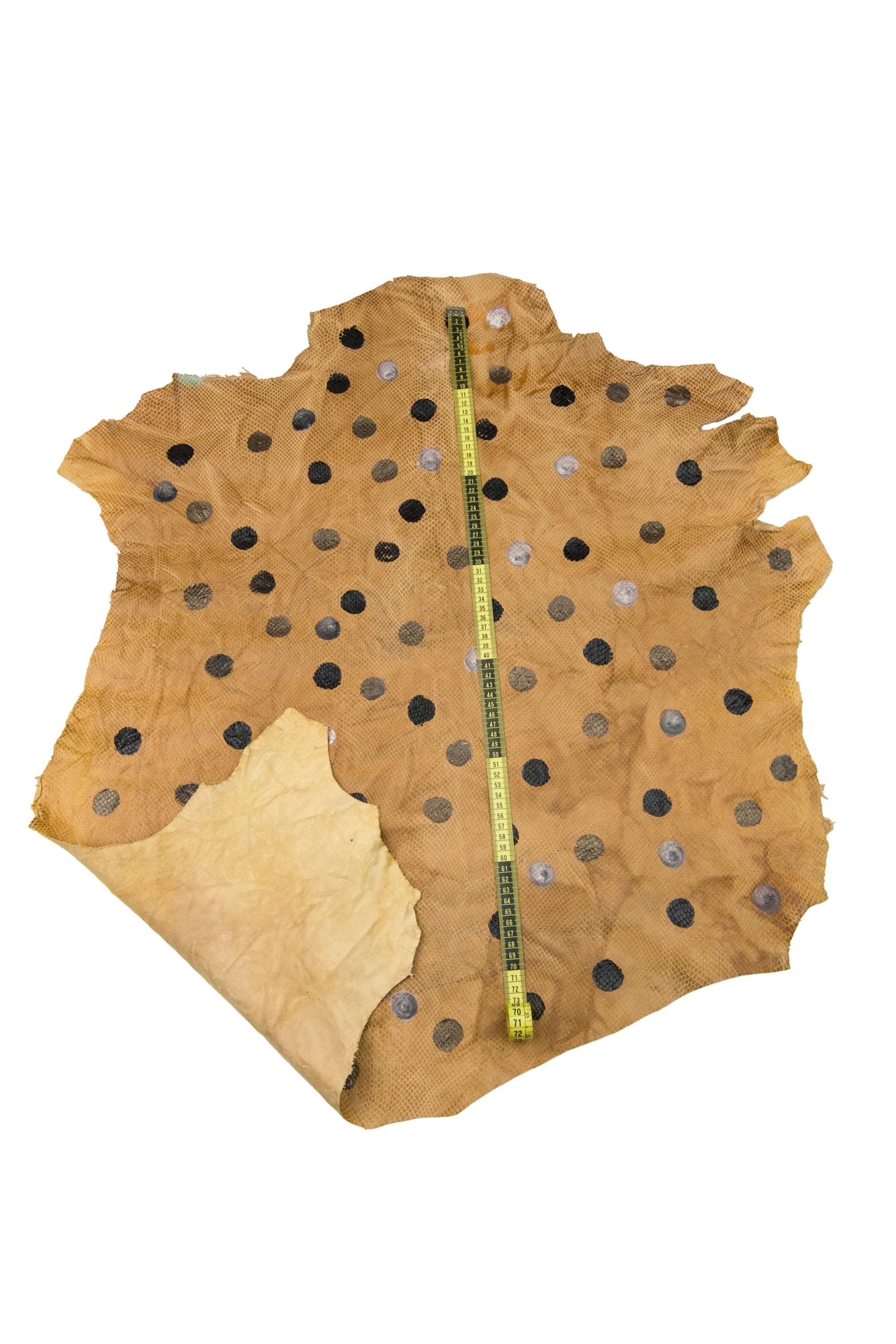 Wonderful grey and black polka dots printed leather hide, on beige reptile skin, soft for DIY.