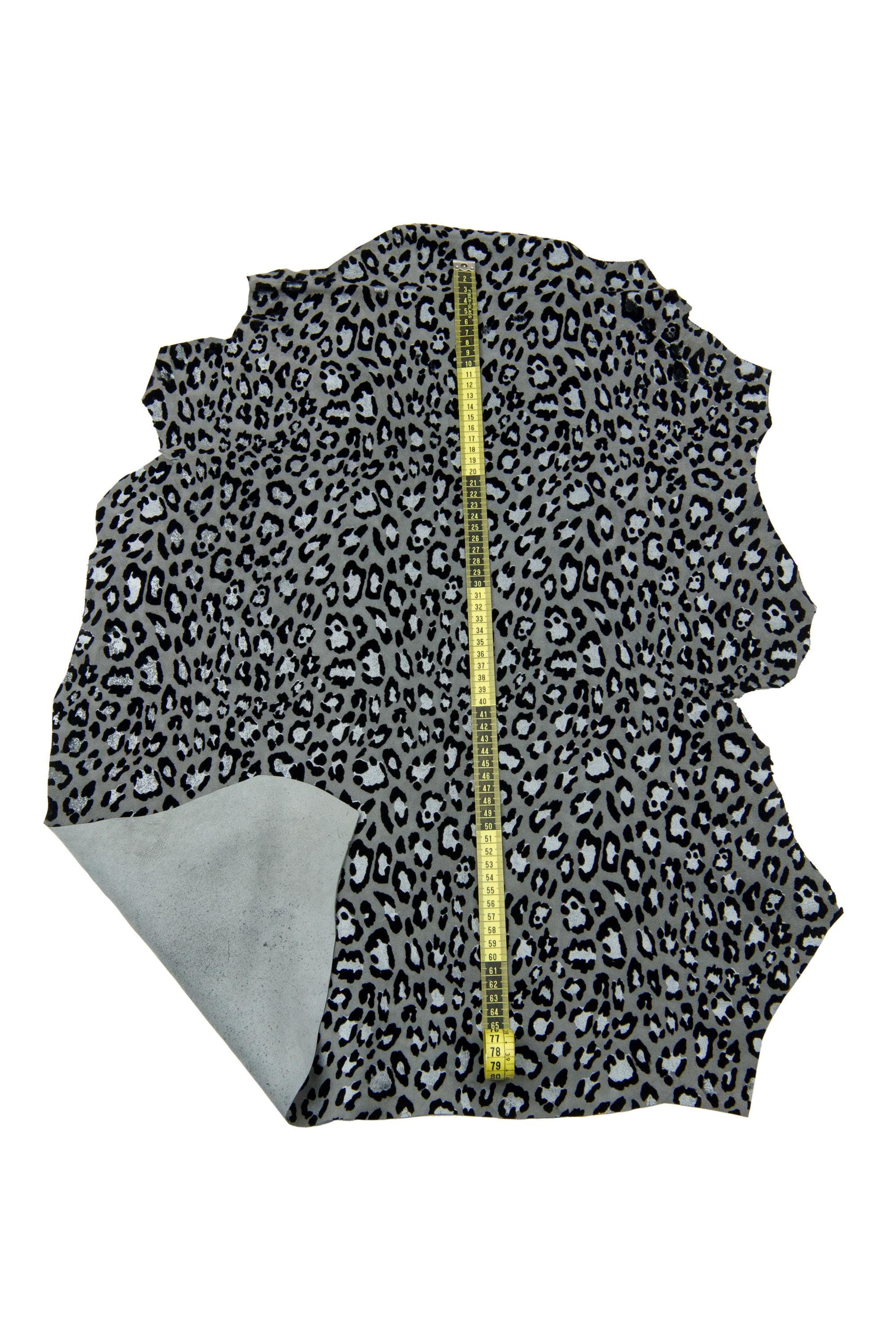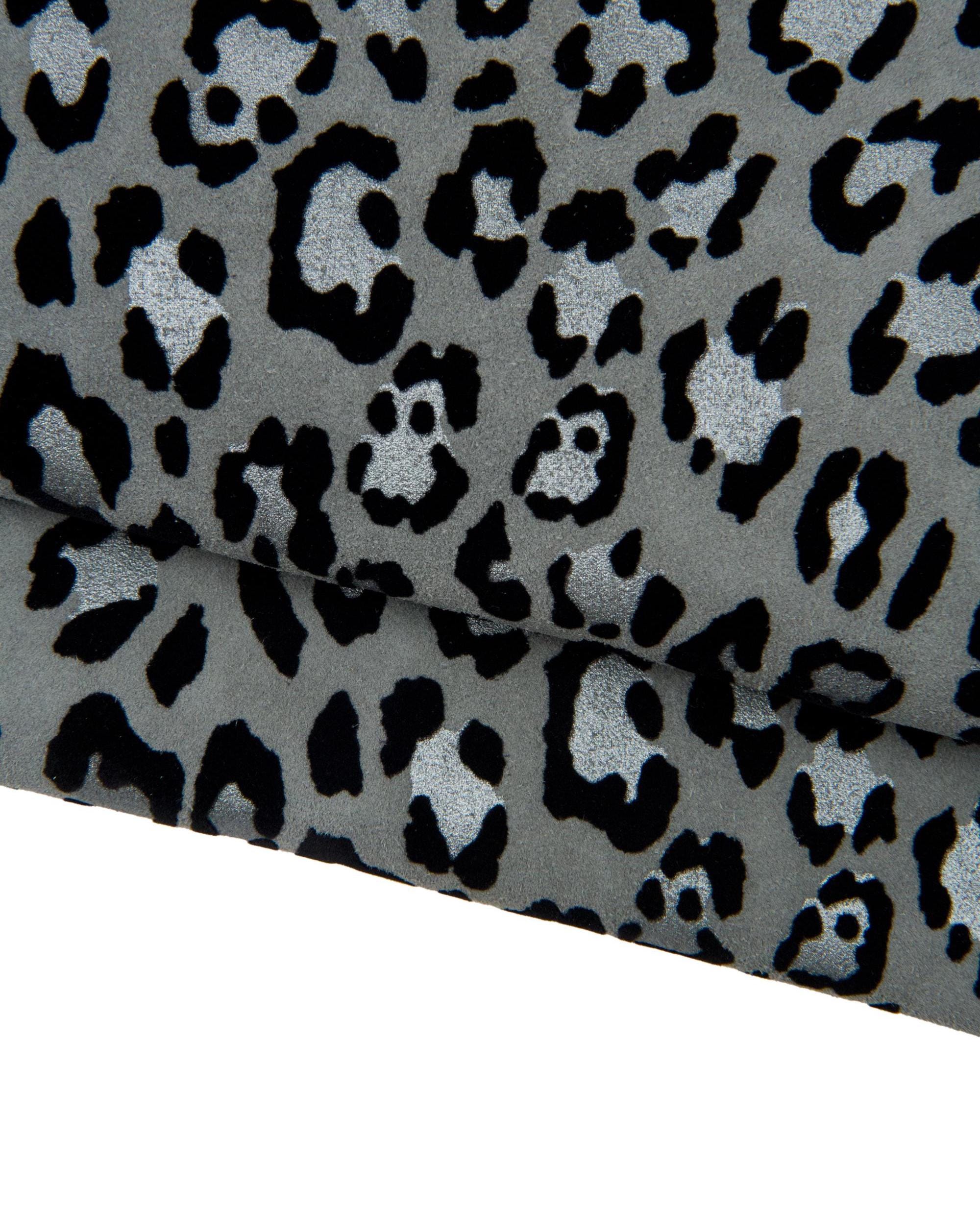 Stunning leopard suede leather hide, animal printed goatskin, grey,silver and black tones for hobbyists