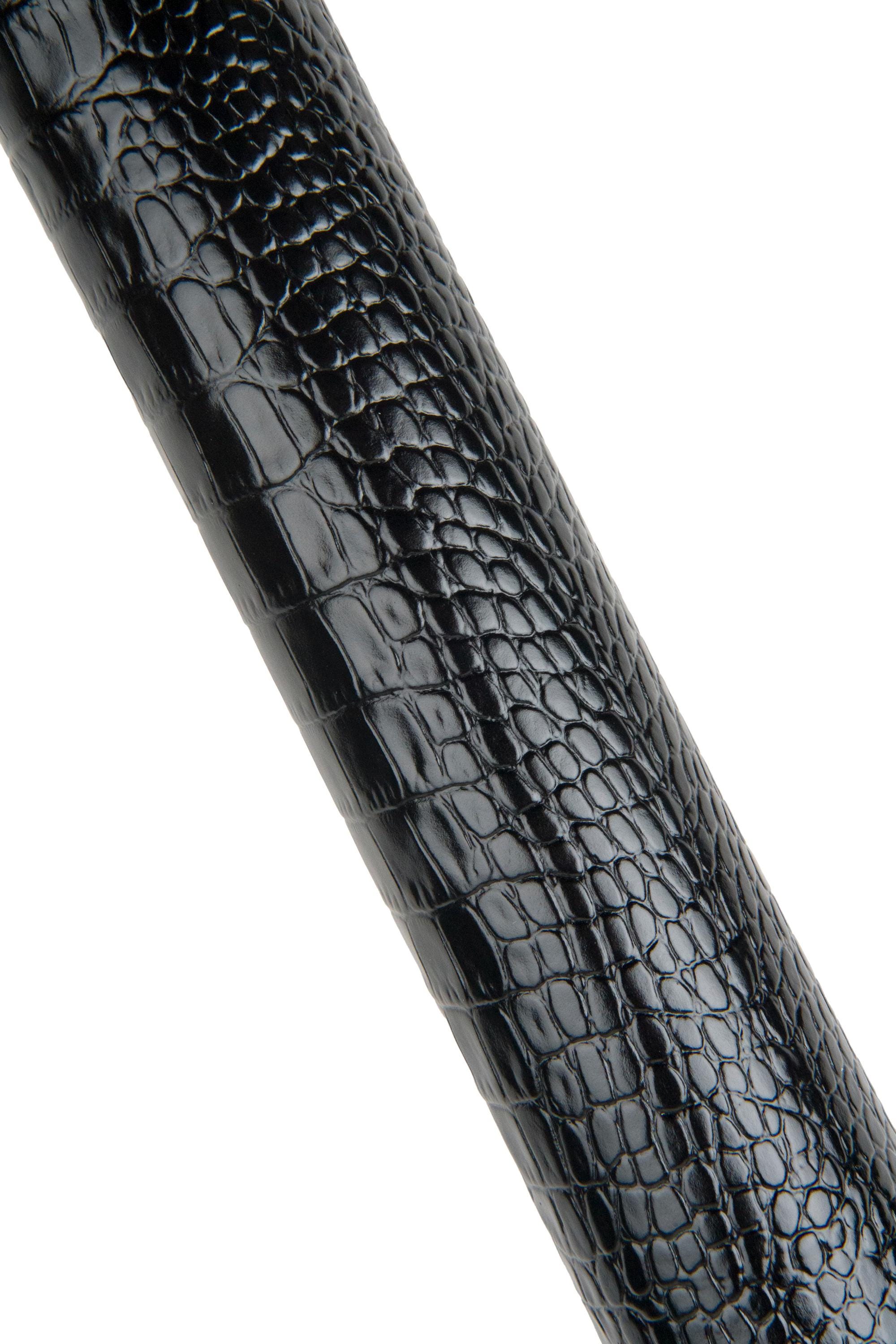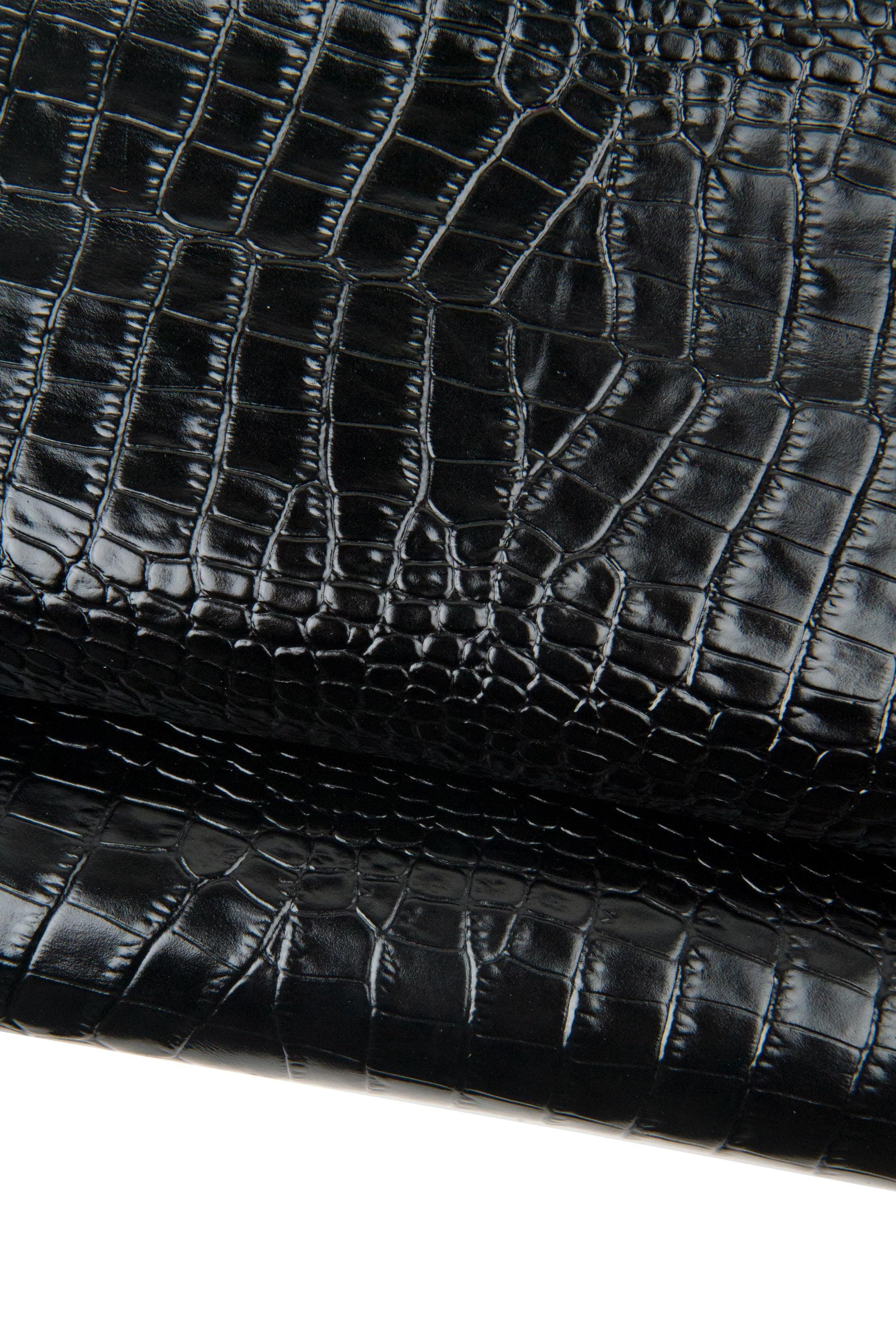 Wonderful black crocodile embossed leather hide, alligator print on cowhide, glossy calfskin, medium softness, ideal for crafting.