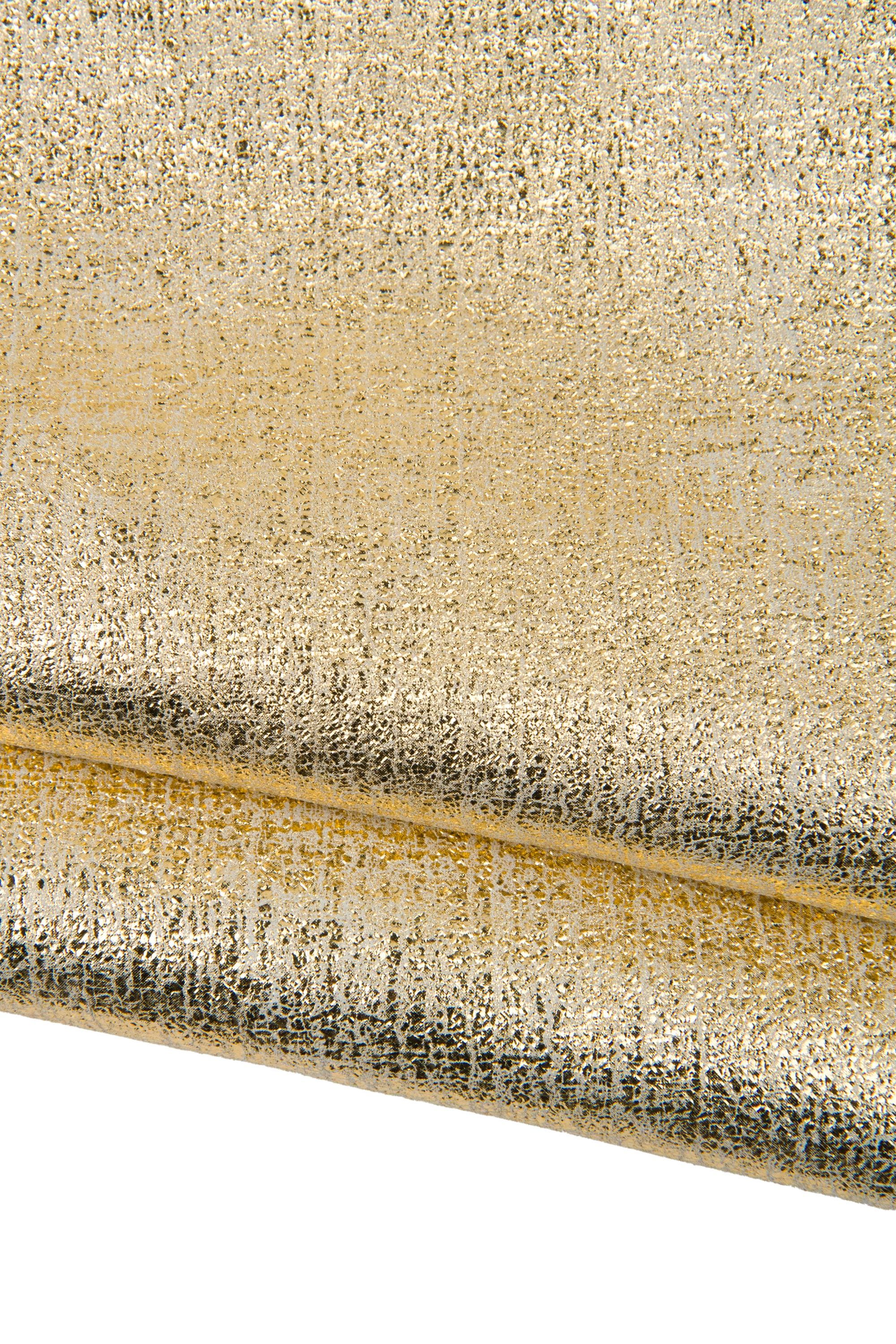 Fabulous gold leather skin, metallic printed soft goatskin, crackle textured bright hide for diy creations.