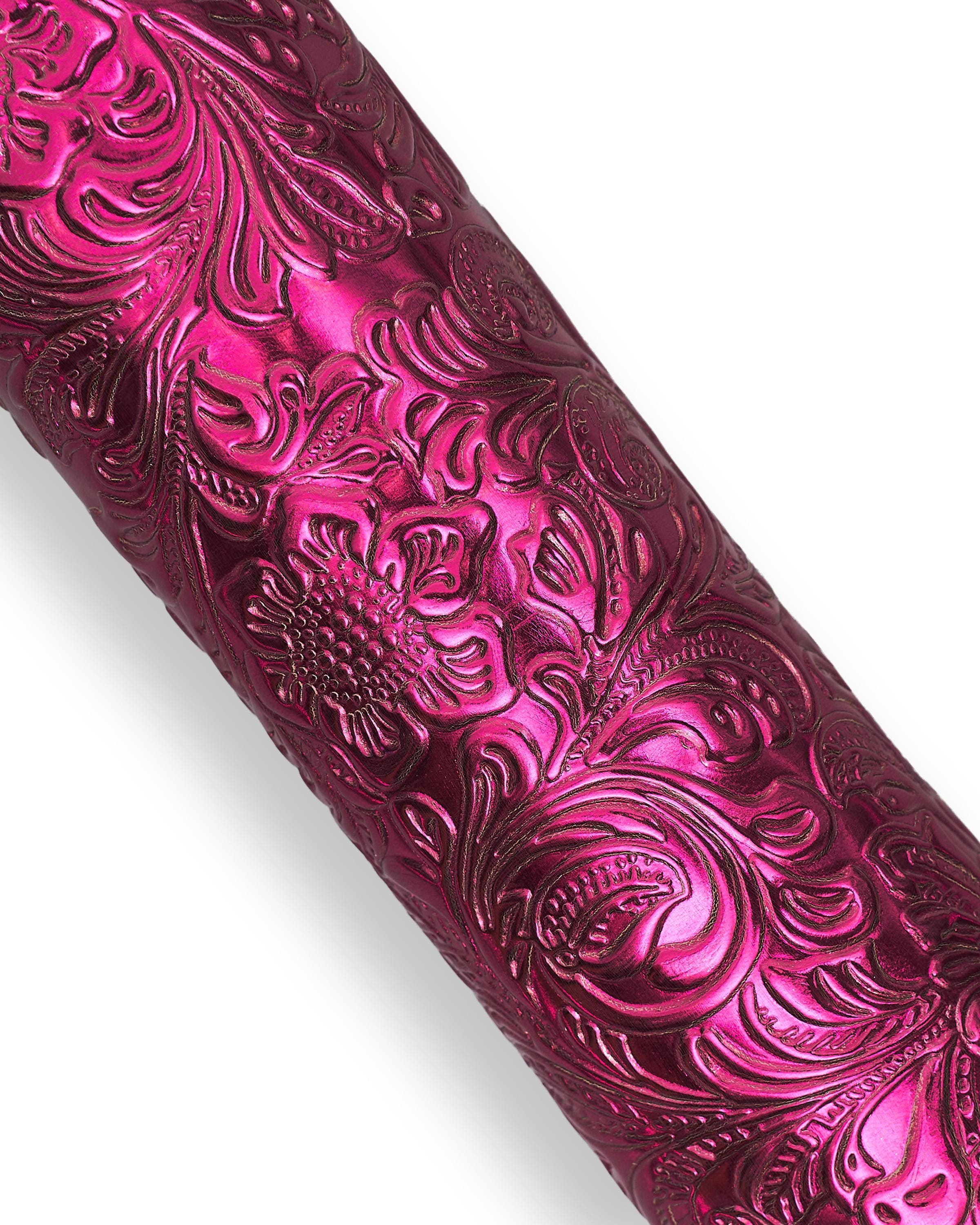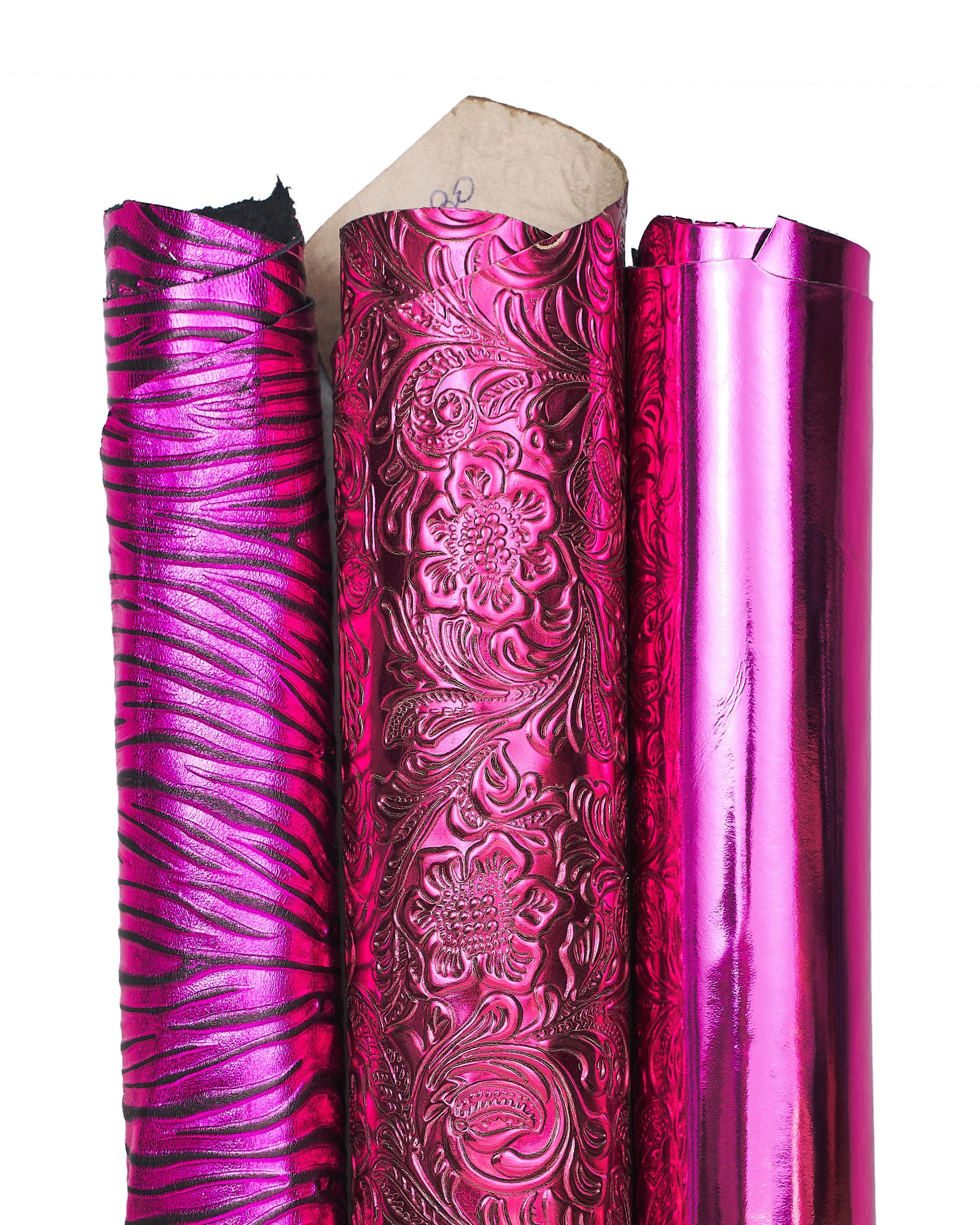 Wonderful set of 3 fuchsia metallic leather skins, floral and zebra printed goatskins, for your creations.