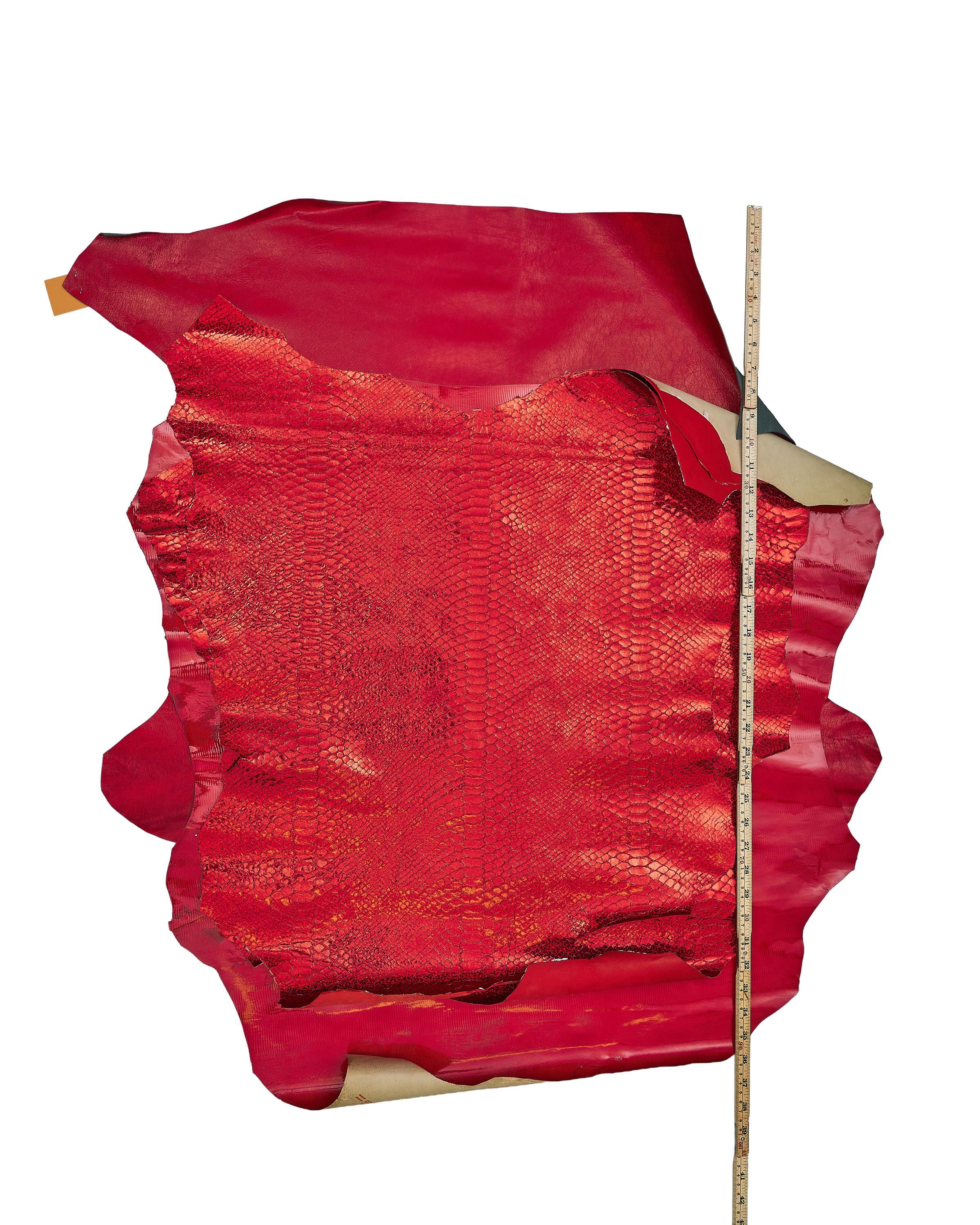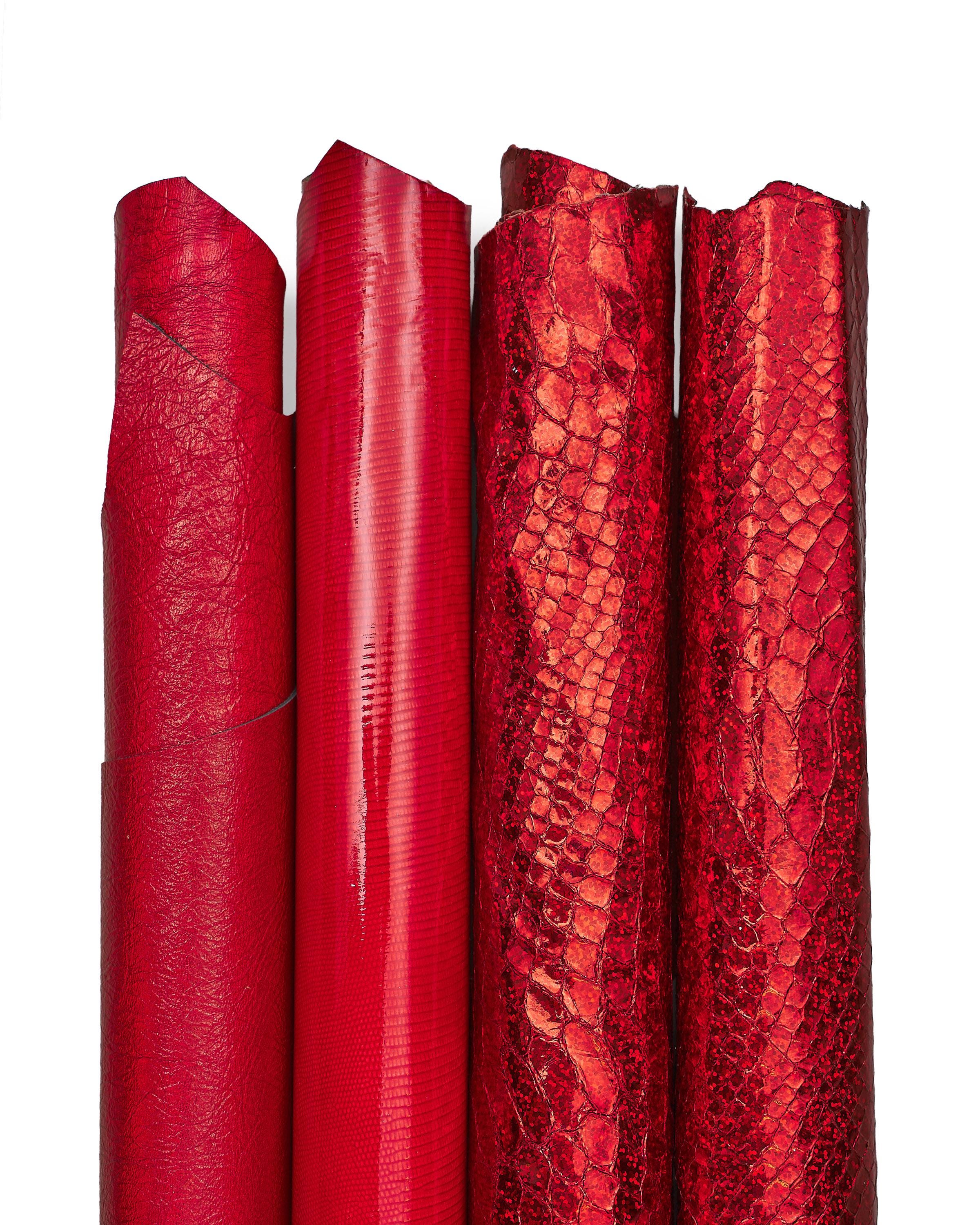 Stunning lot of 4 matching red hides, metallic and printed reptile skins for hobbyists.