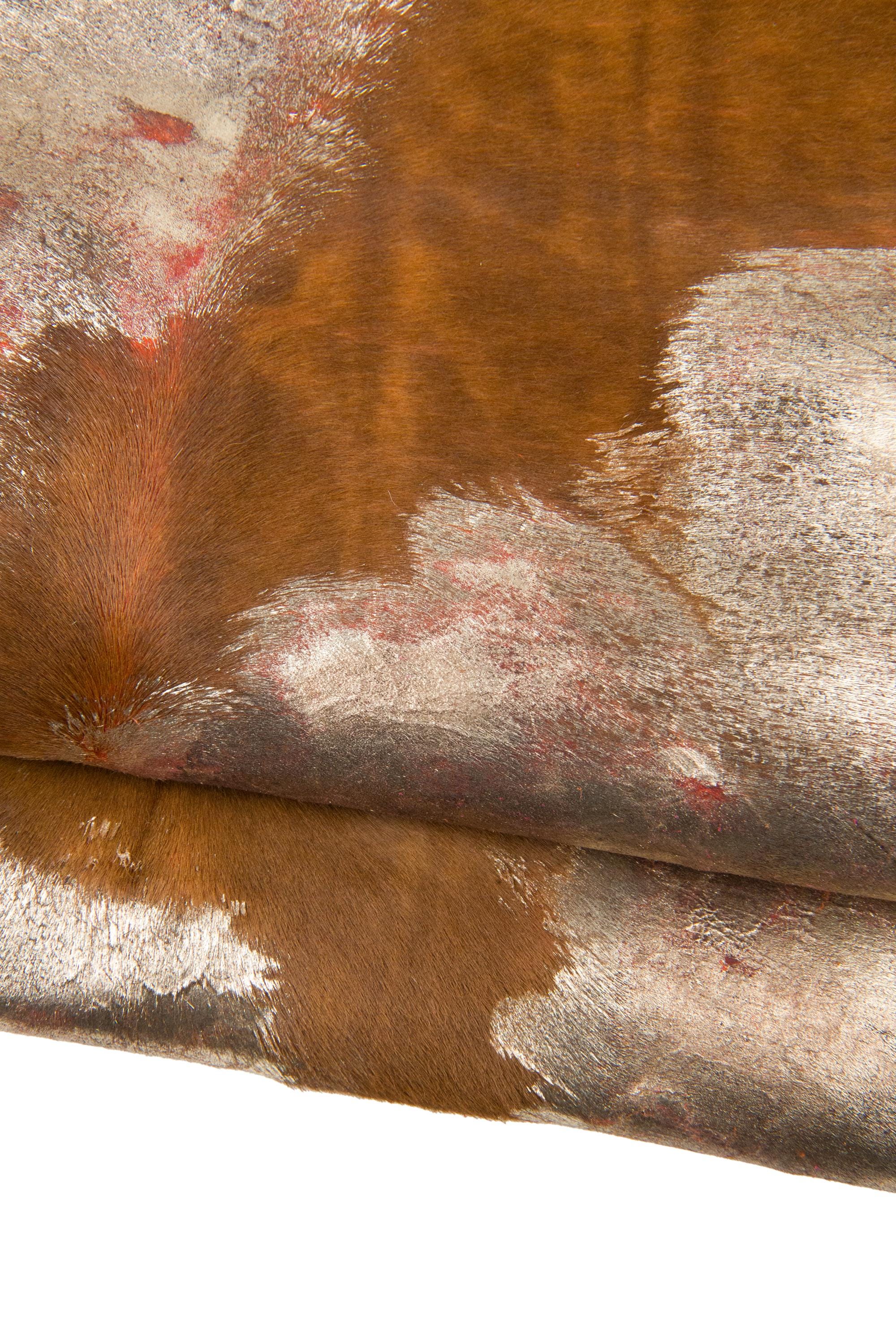 Outstanding brown hair on leather hide with light gold metallic spots, spotted pony calfskin, cow - like pattern. This selected Italian material is perfect for crafters.