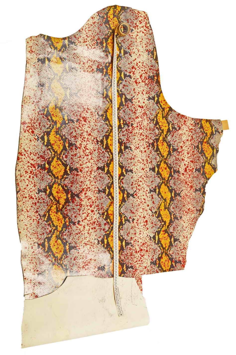 Stunning python leather hide, multicolor snake textured calfskin leather, splash print on reptile printed glossy calfskin for DIY projects.