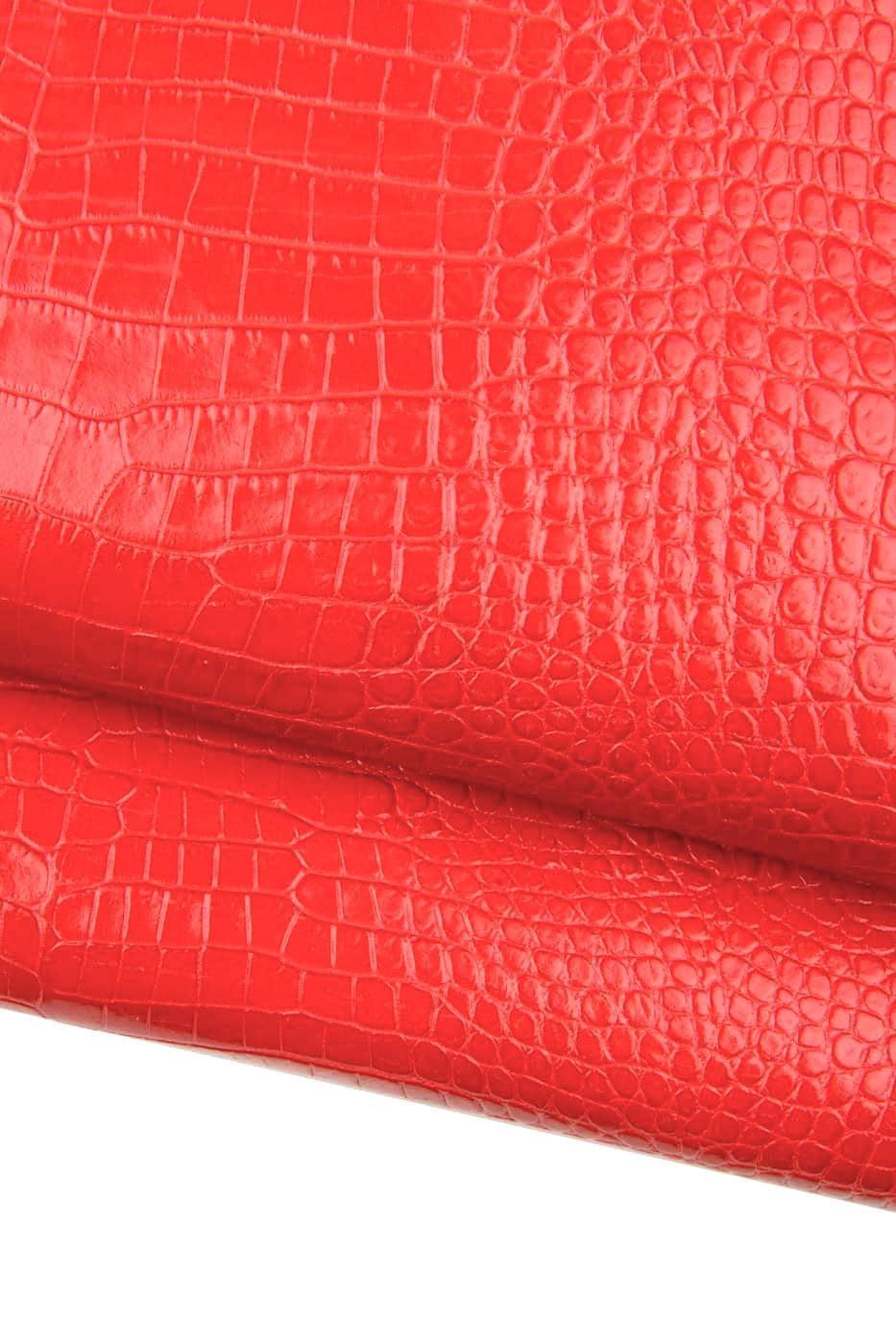 Outstanding red crocodile printed leather hide, luxurious embossed cowhide, semi stiff glossy calfskin for hobbyists.