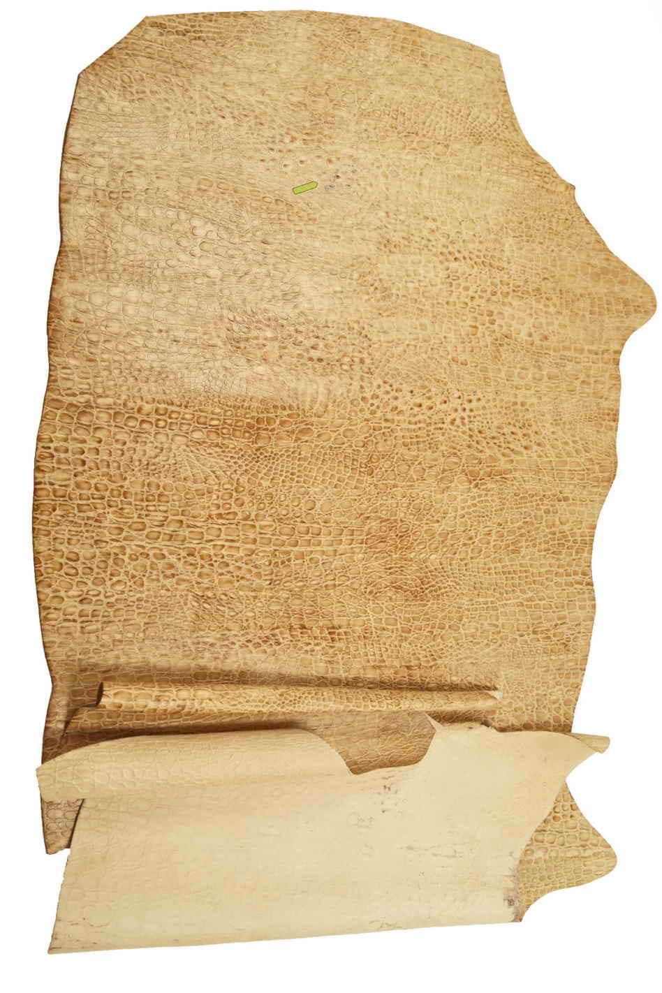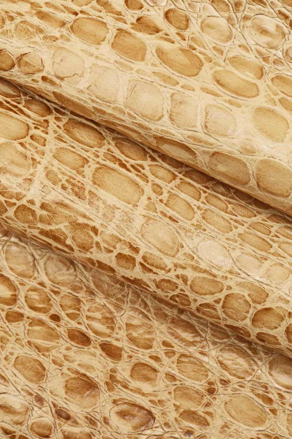 Wonderful beige embossed leather hide, semi stiff matt cowhide, alligator printed calfskin for crafters.