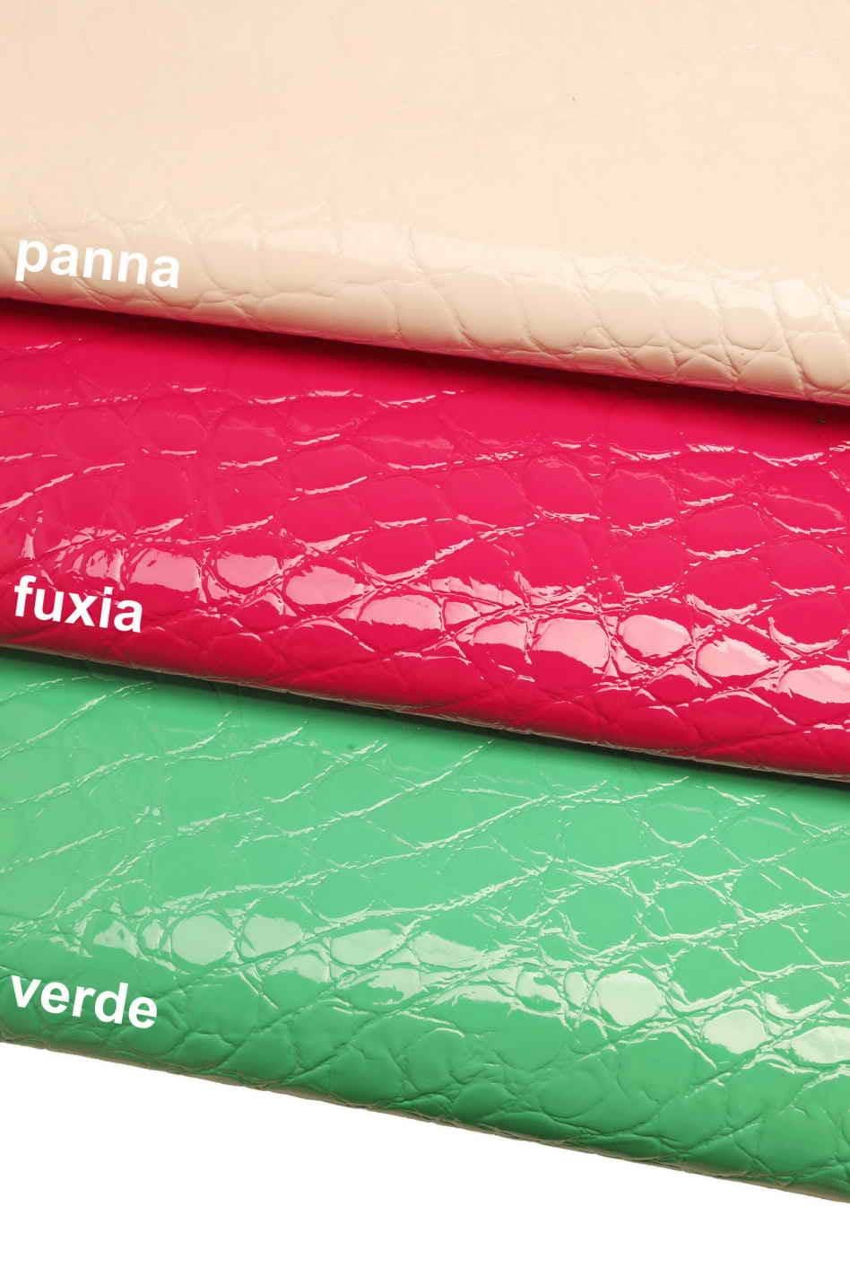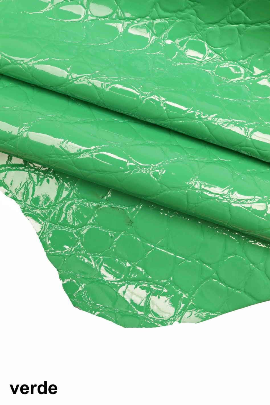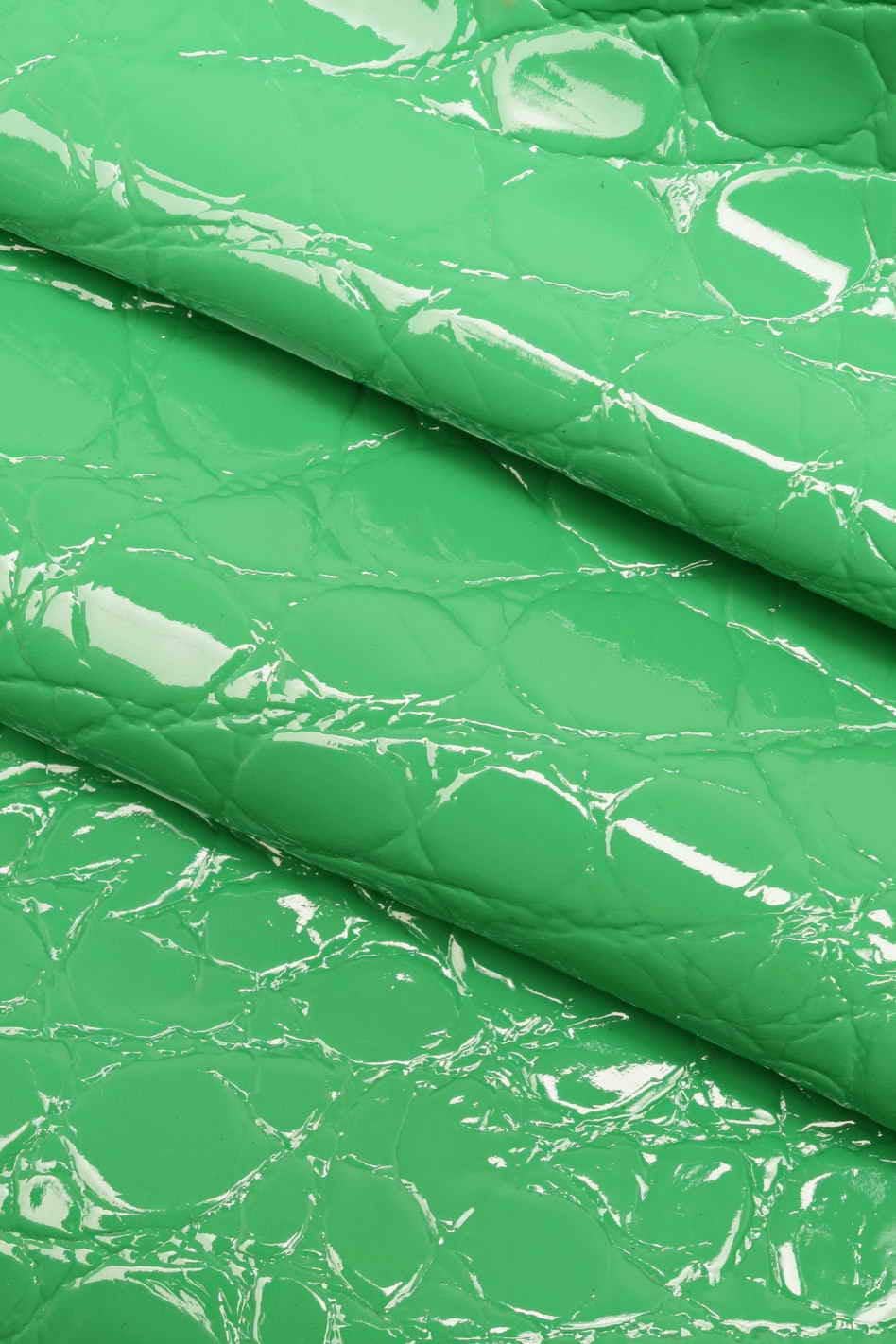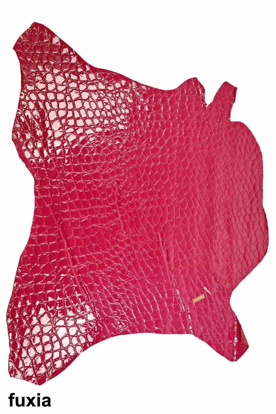 Wonderful crocodile hide green leather, fuchsia - green patent goatskin laquer crocodile print, glossy hides for crafters.