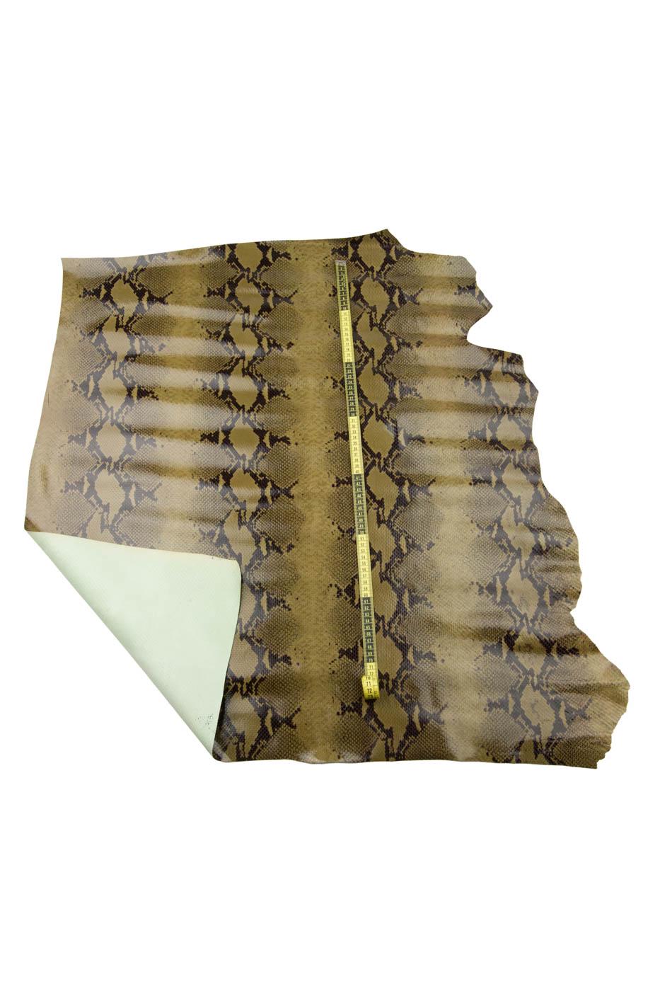 Amazing military green - black python textured leather hide, glossy reptile printed cowhide, snake pattern on soft calfskin.