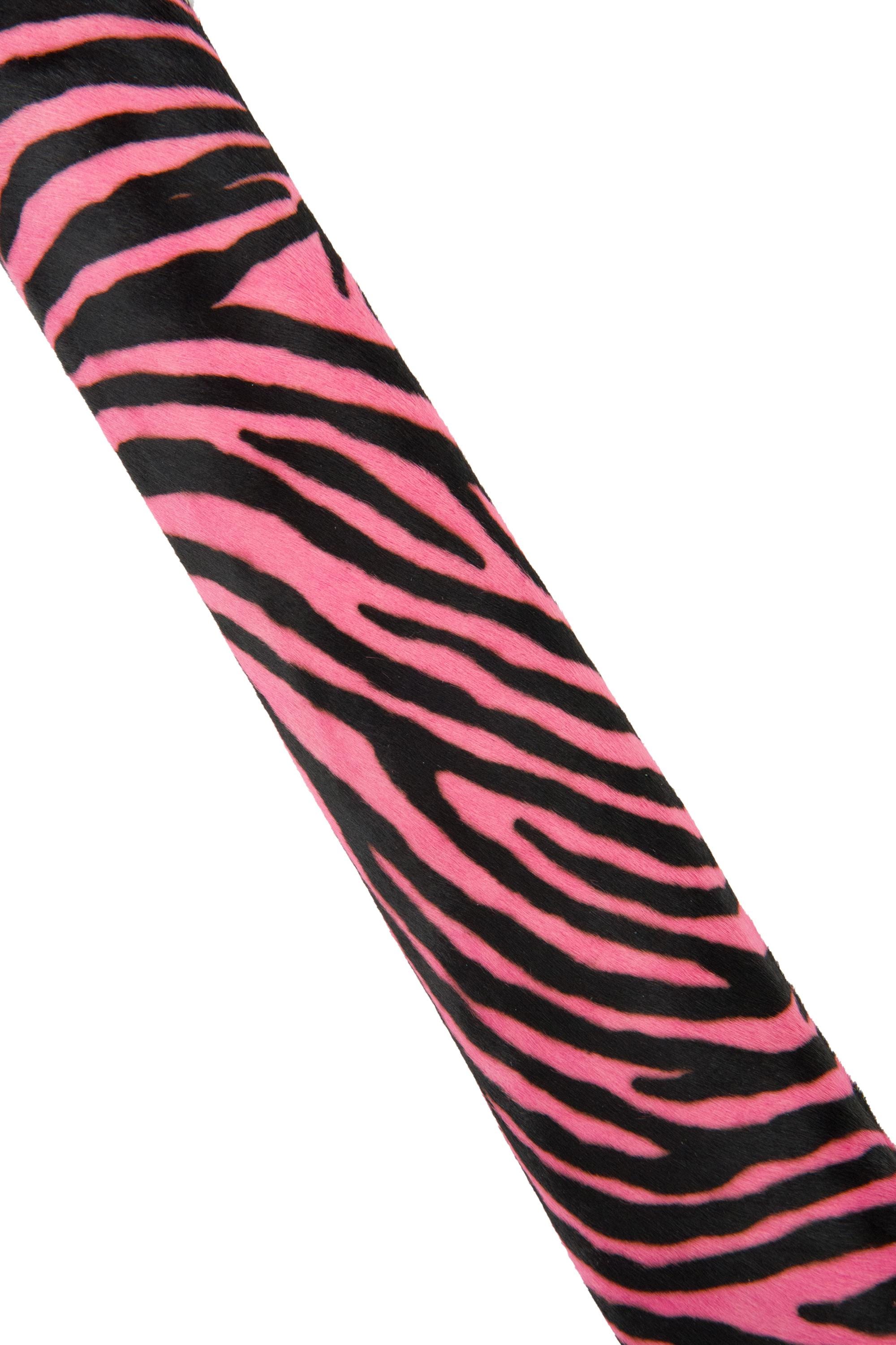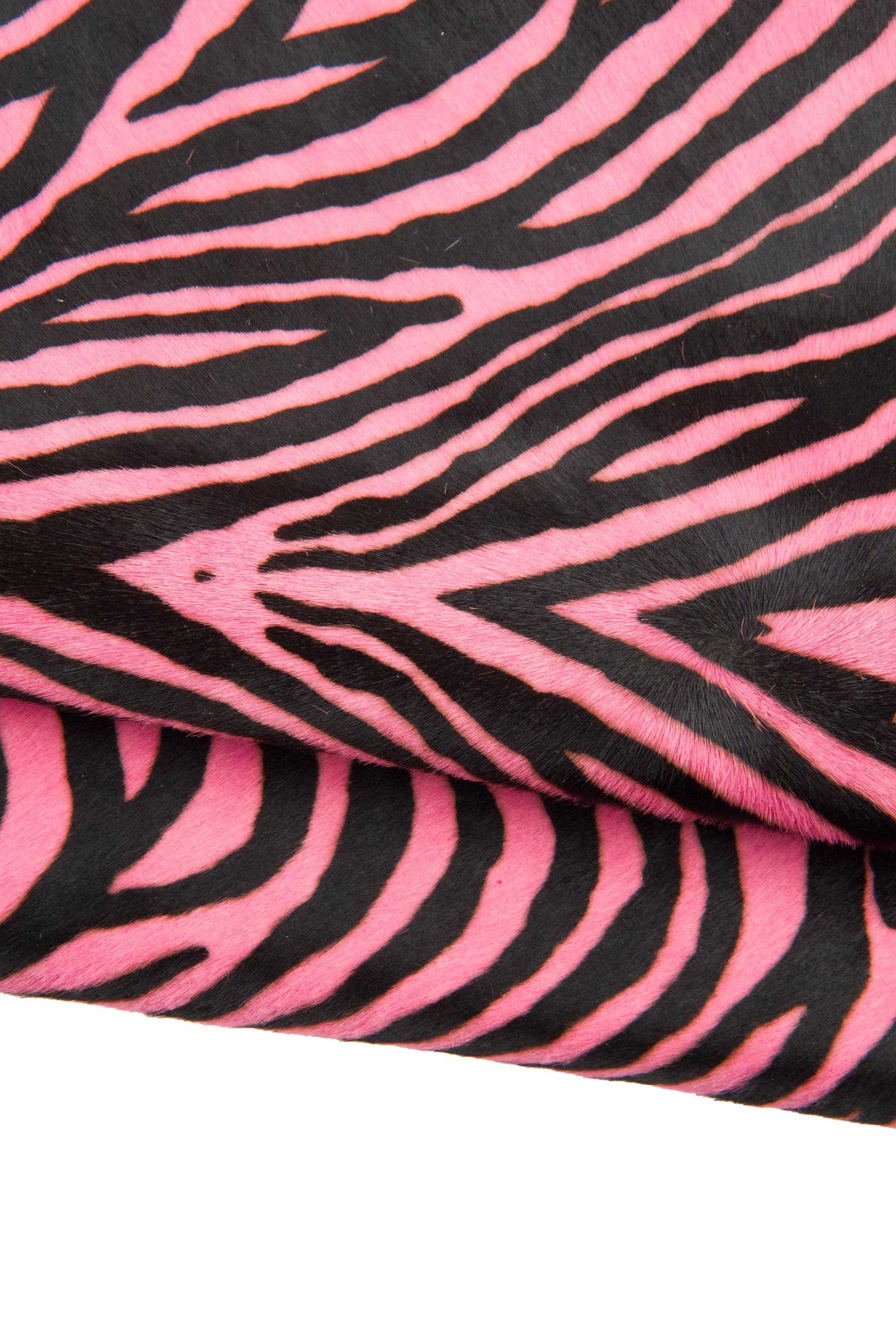 Wonderful zebra textured hair on leather hide, fuchsia and black animal print on hairy cowhide, elegant pony leather for crafting.