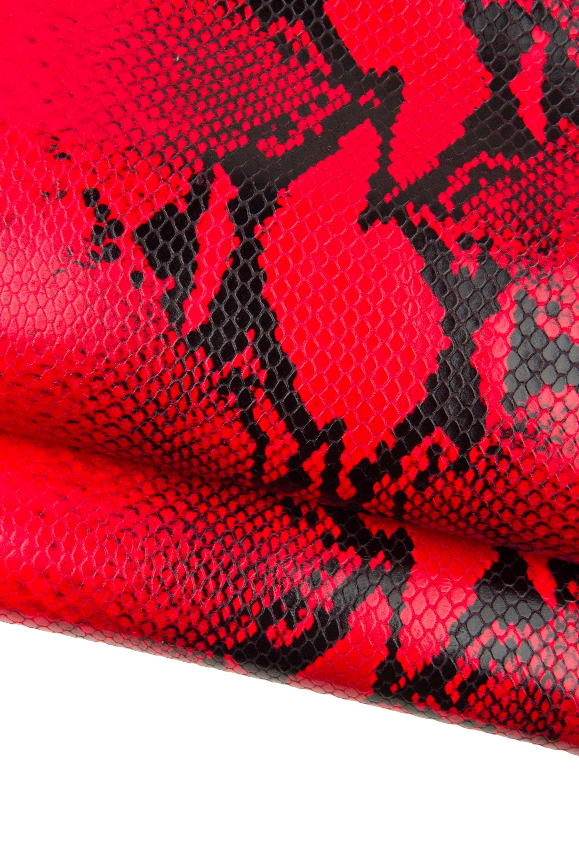 Amazing red glossy snakeskin, python textured cowhide, reptile printed leather calfskin for DYI projects.