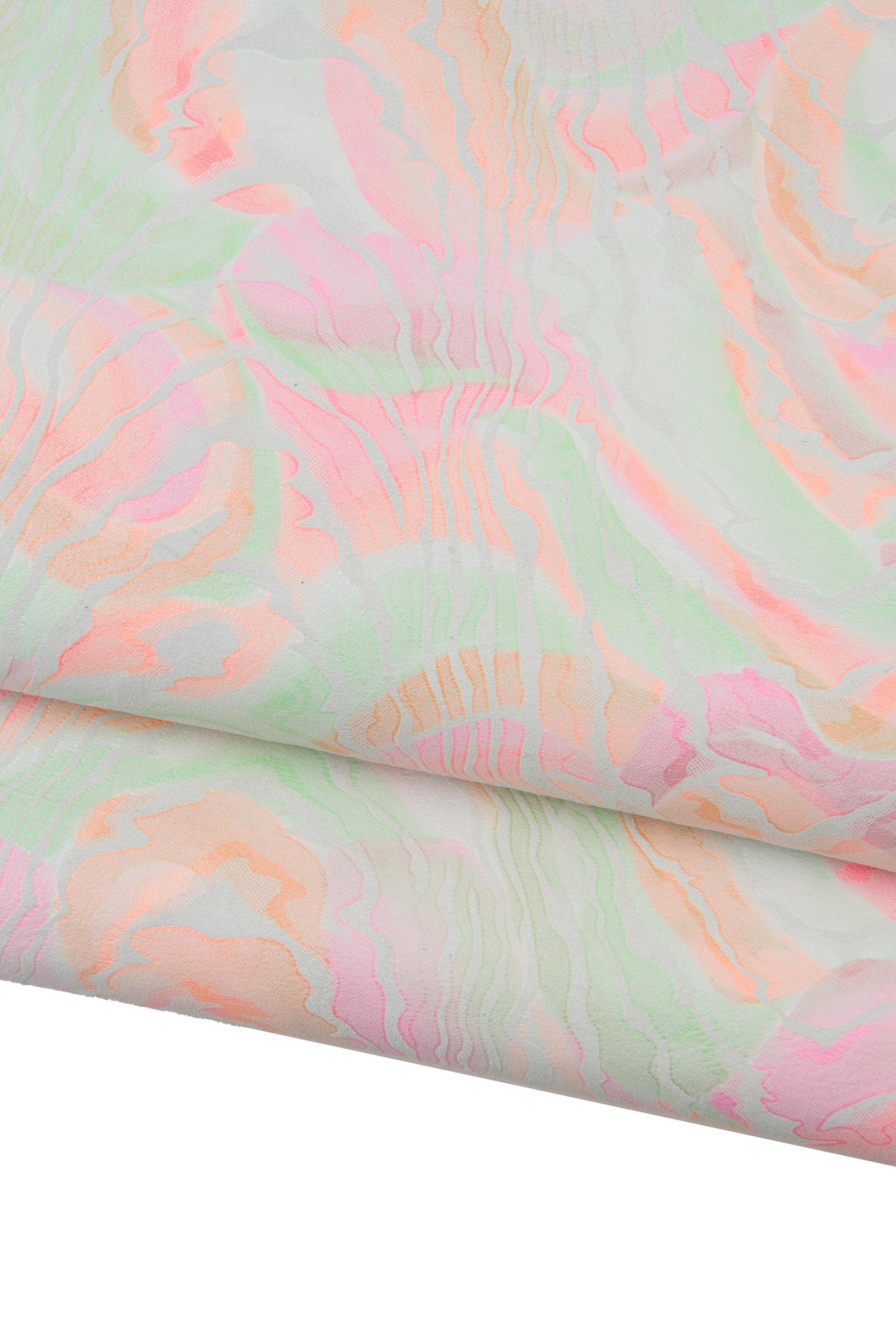 Wonderful metallic zebra printed leather skin, orange, pink, green animal texture on white suede goatskin. Ideal for hobbyists.