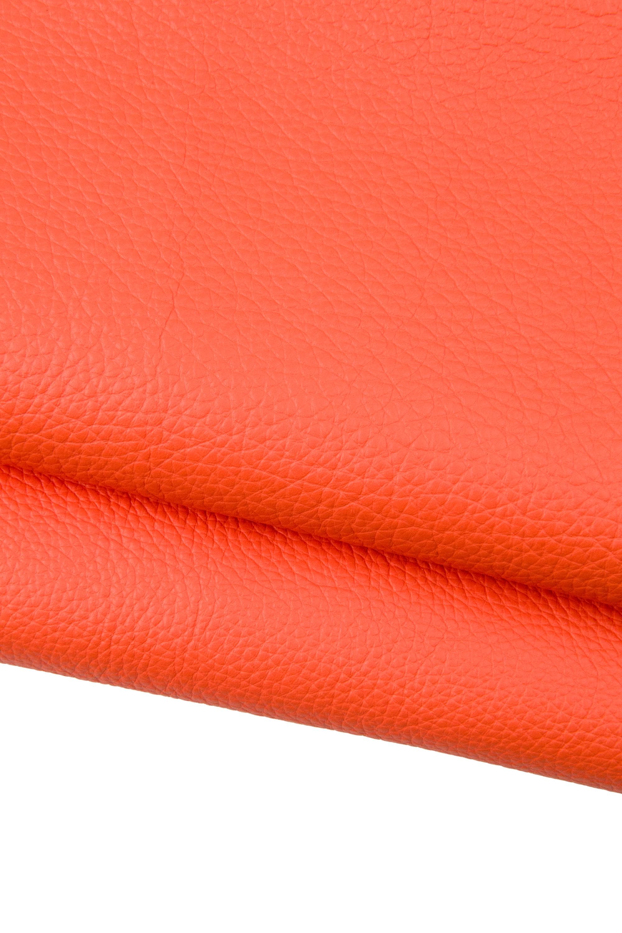 Wonderful orange pebble grain printed cowhide, sporty soft leather hide, thick matt calfskin for crafting.