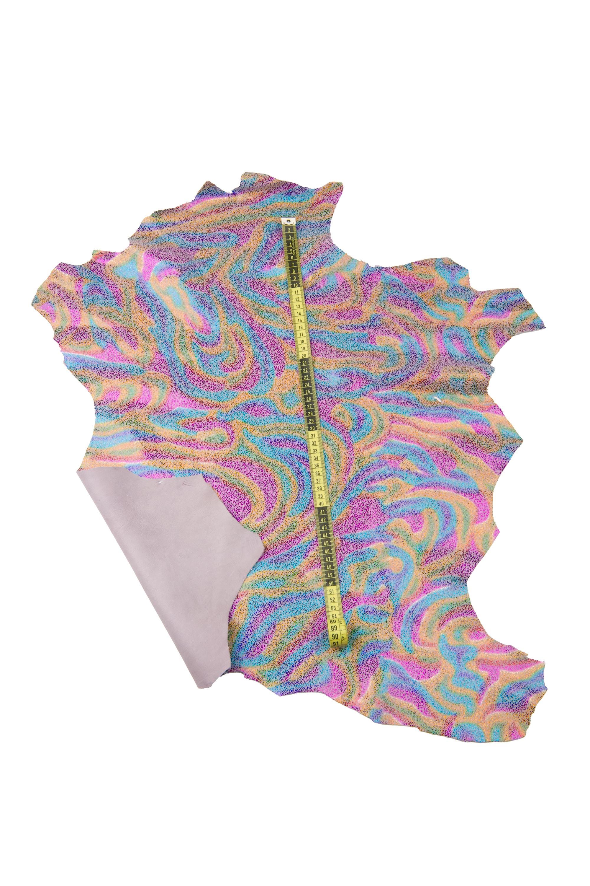 Fabulous iridescent laminated goatskin on lilac basis with crackle print, vibrant for DIY.