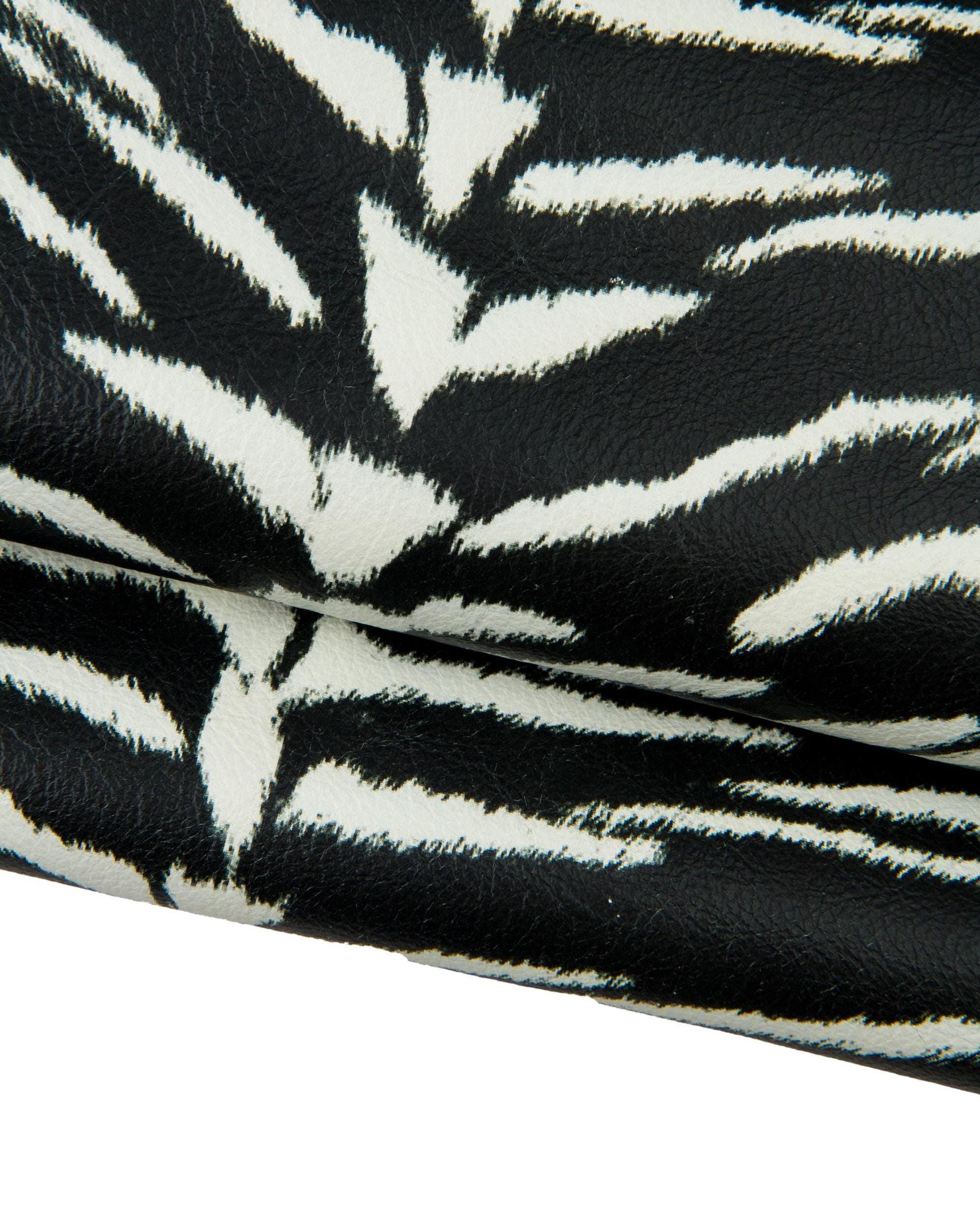 Wonderful zebra printed leather hide, black - white animal textured cowhide, glossy soft calfskin.
