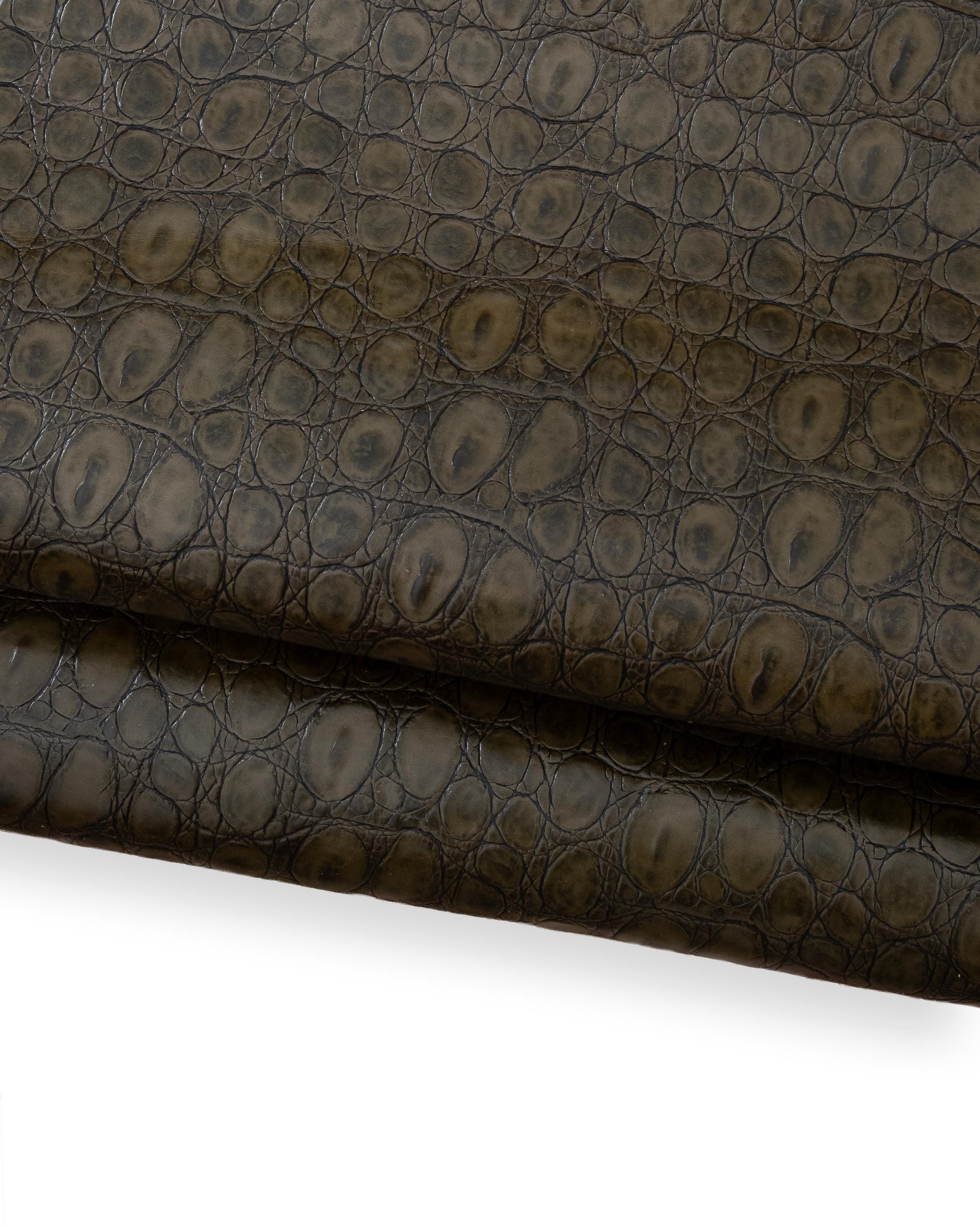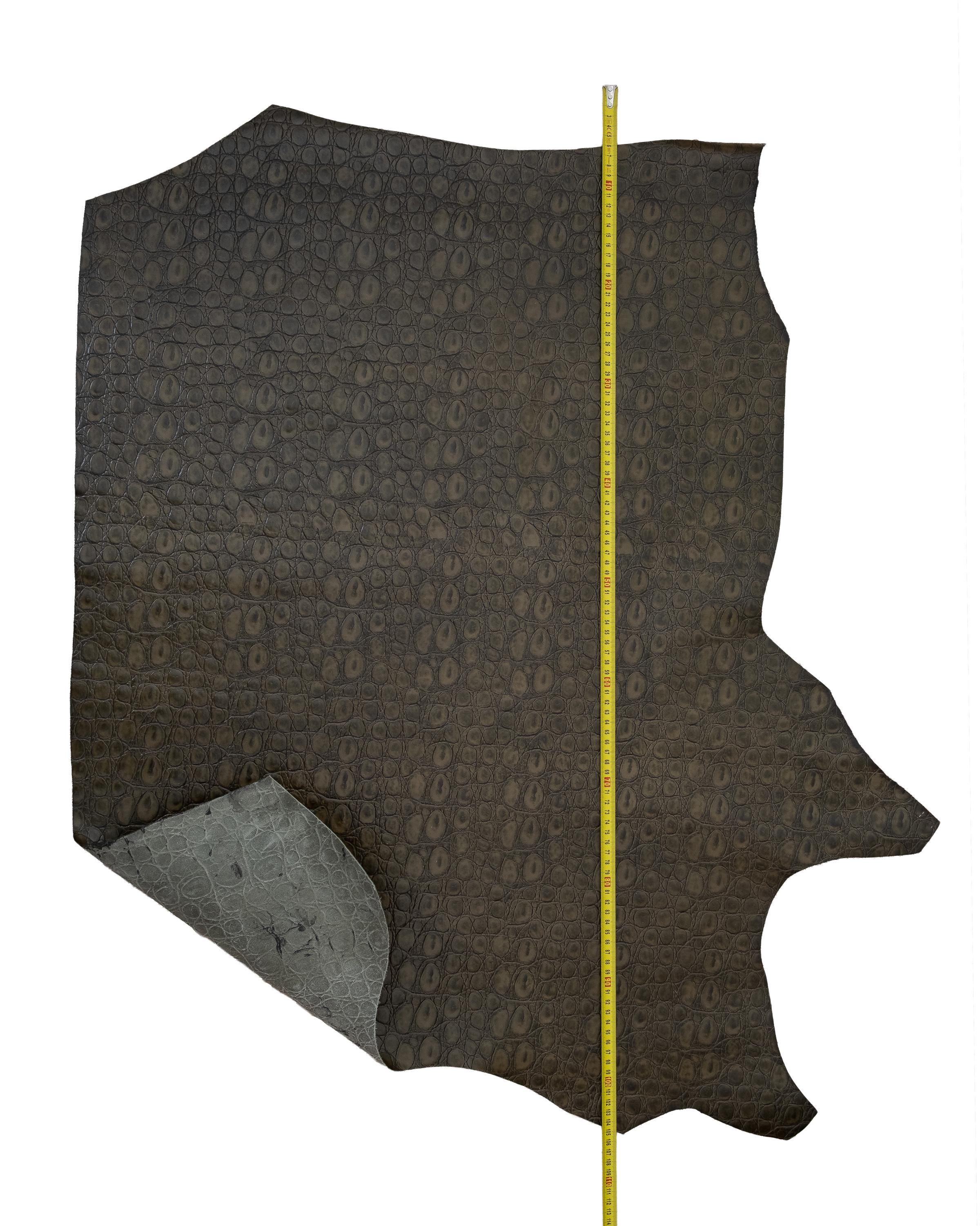 Beautiful mud brown crocodile printed leather hide, glossy medium softness animal embossed cowhide, luxurious calfskin for crafters.