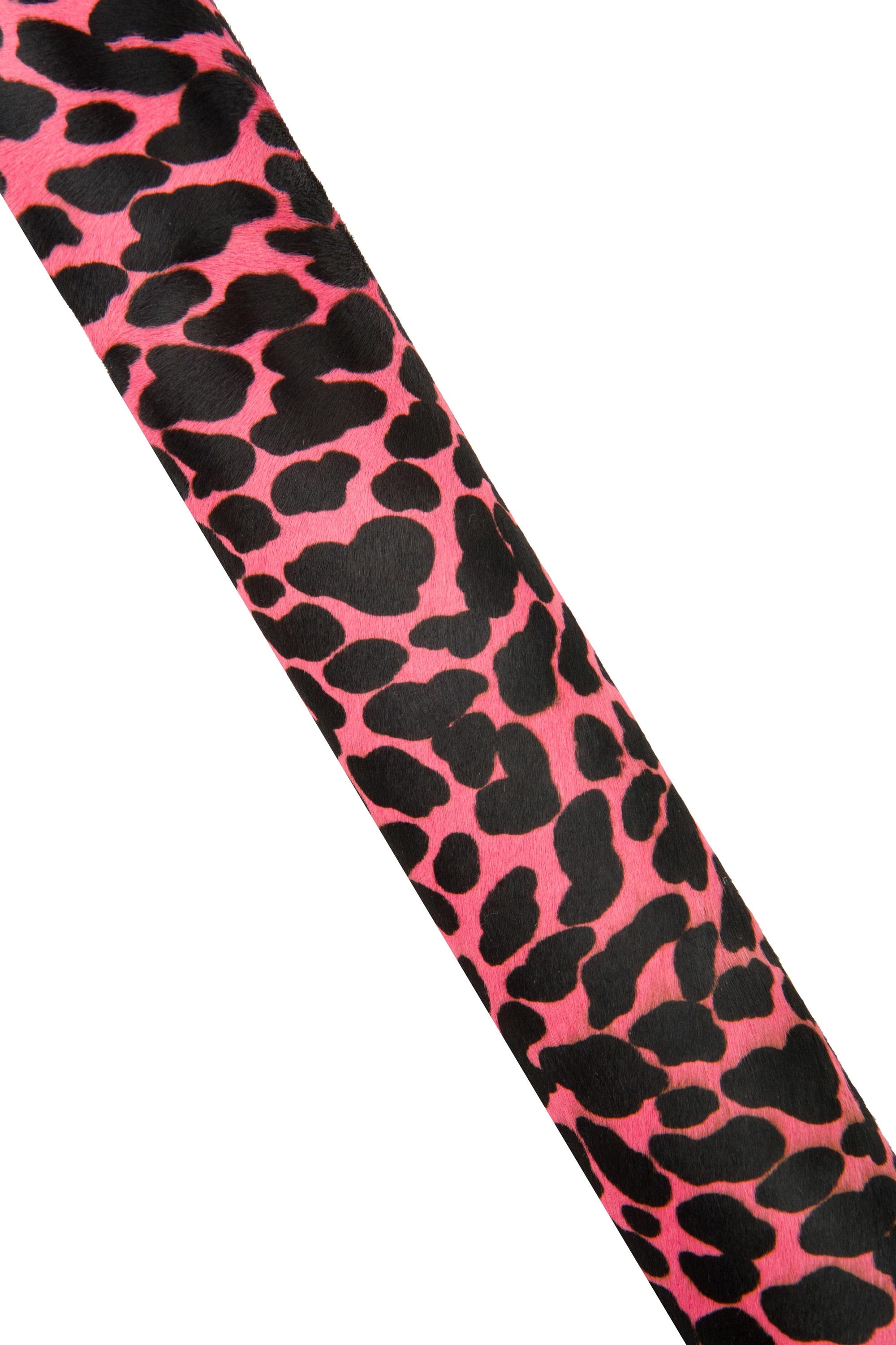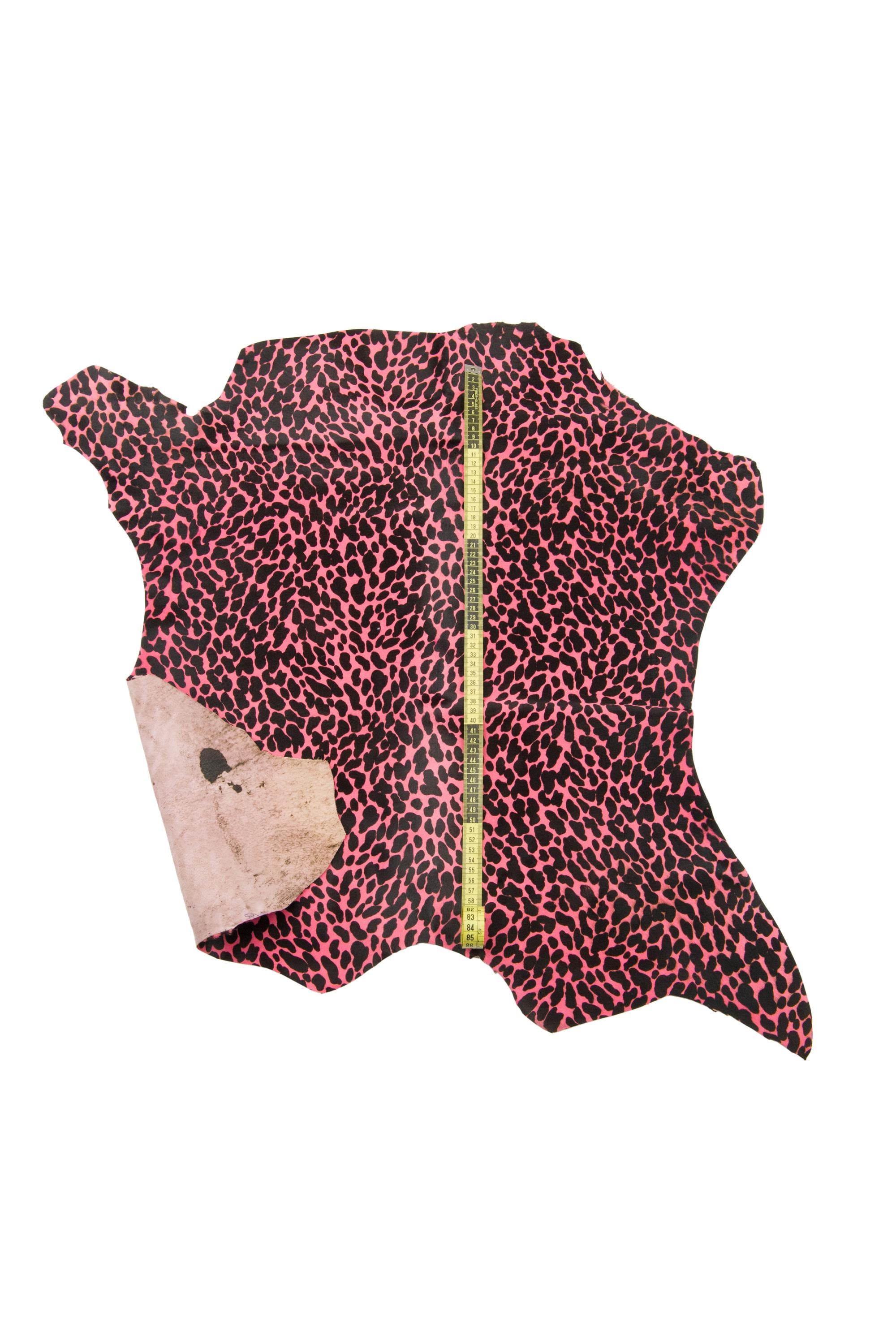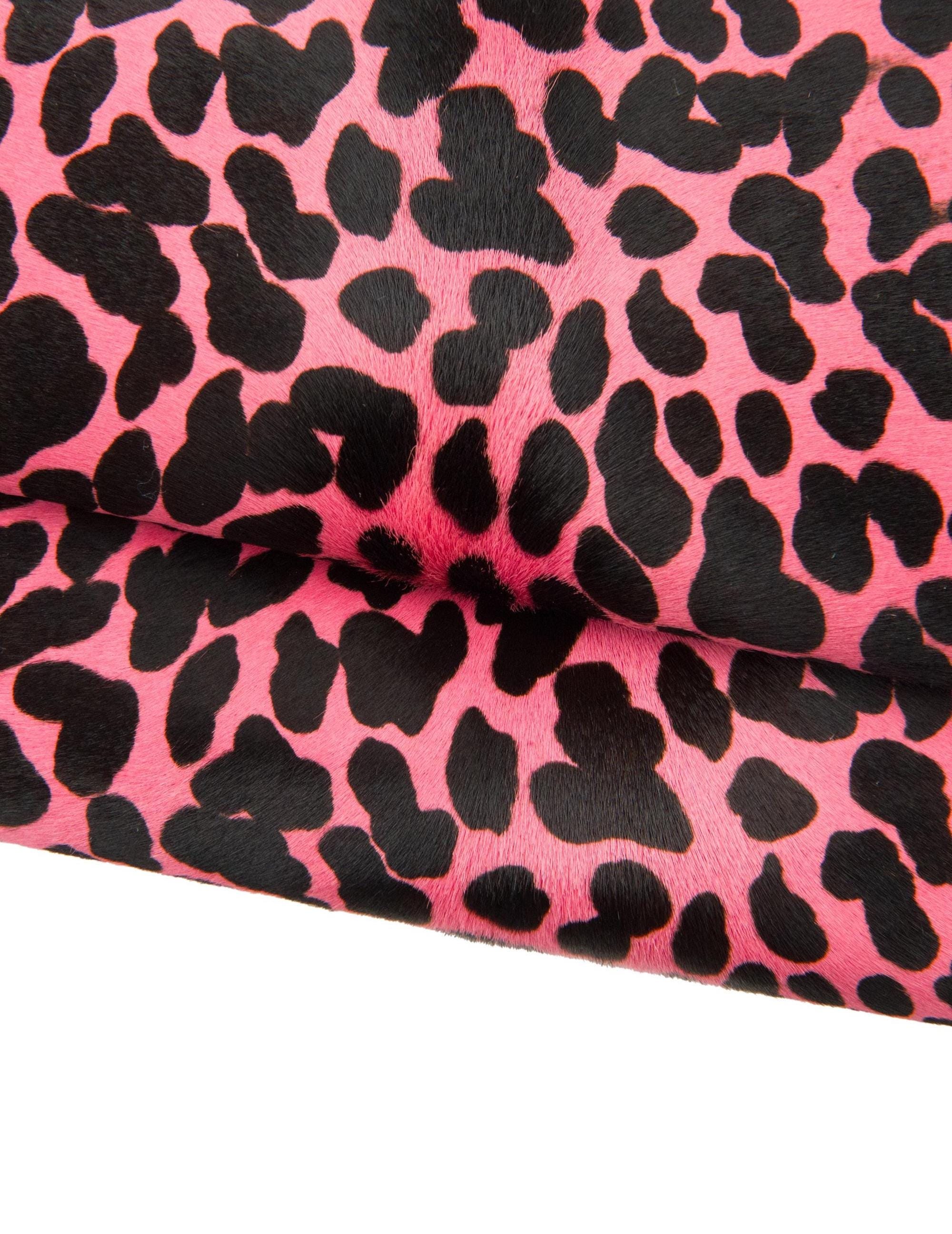 Outstanding leopard printed hair on leather hide, pink - black cheetah textured pony calfskin, soft cowhide for crafting.