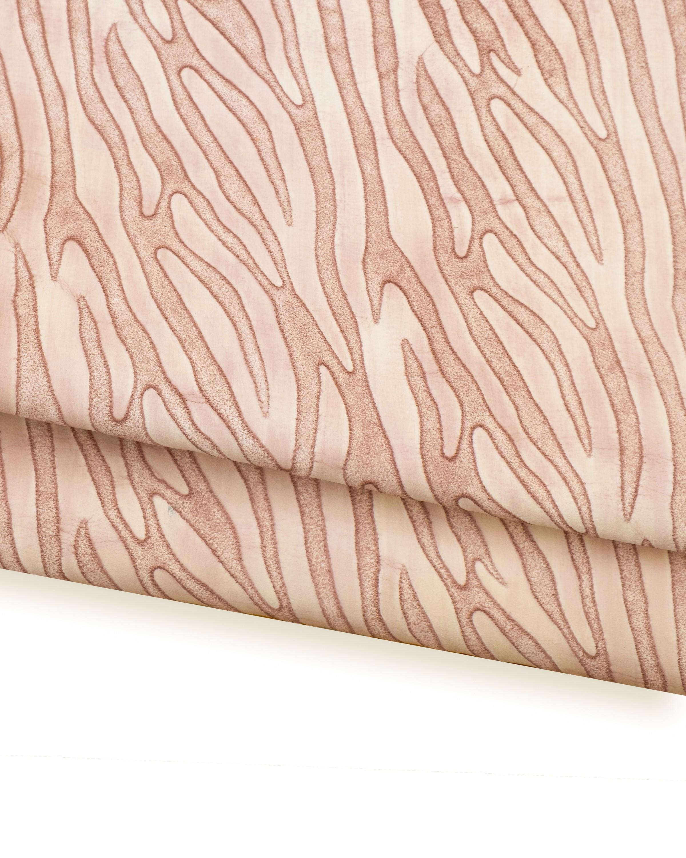 Wonderful zebra-like printed leather hide, pink animal flock textured cowhide, semi-glossy soft calfskin for DIY projects.