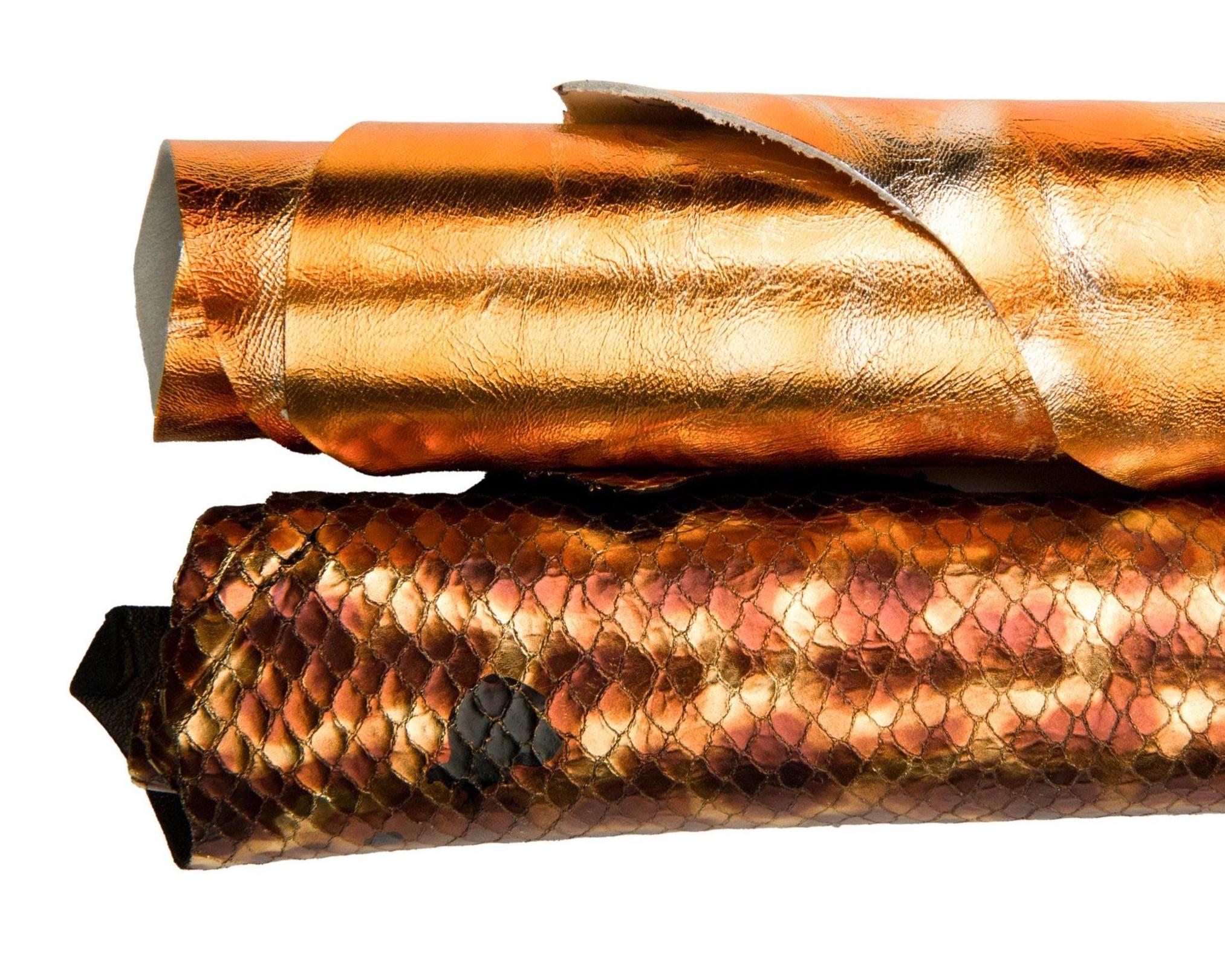 Incredible bundle of 2 orange and brown, soft goatskins, assortment of metallic textured matching leather skins as per pictures for crafters.