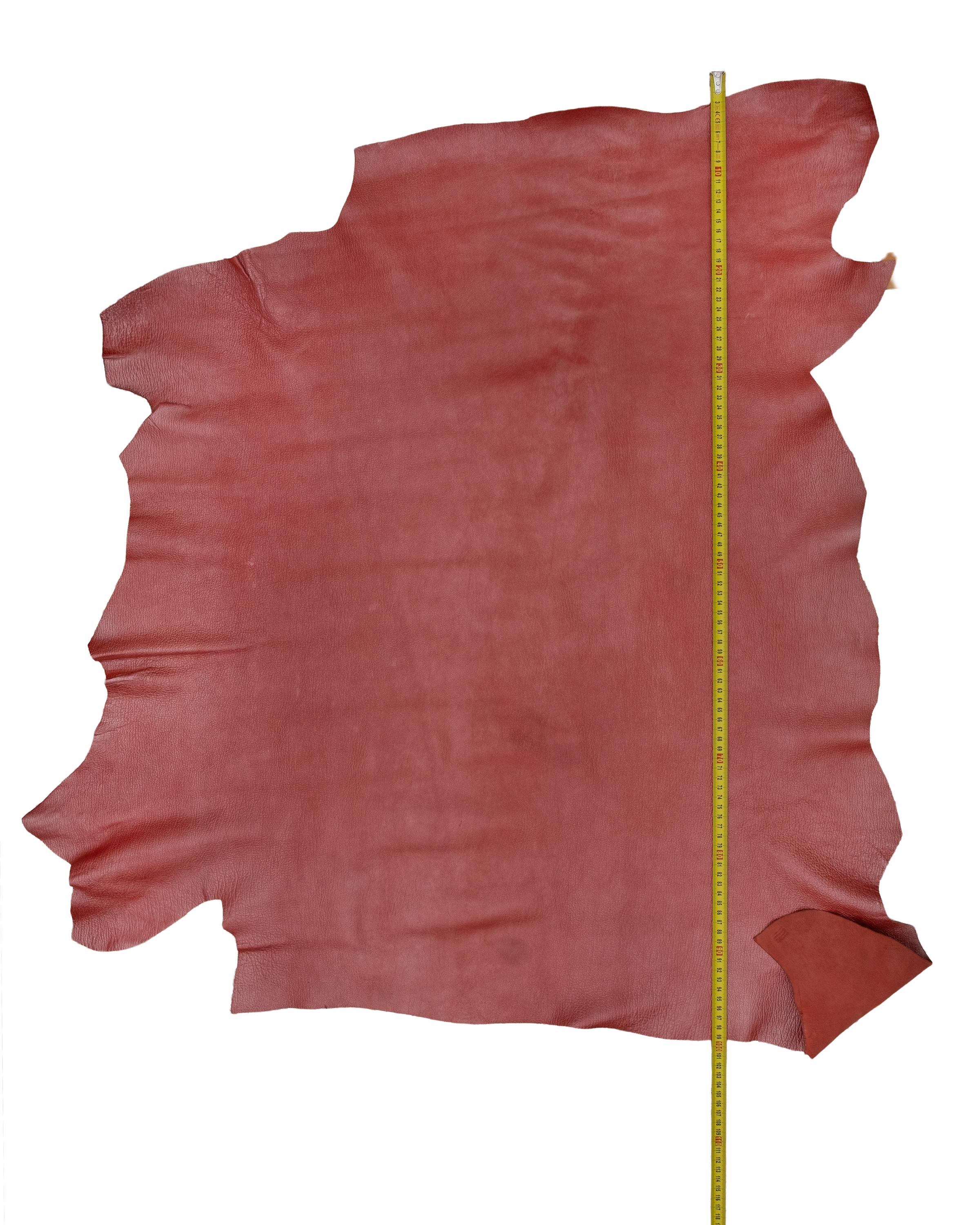 Fabulous pearly red calfskin with superfine grain, glazed and soft leather hide for DIY projects.