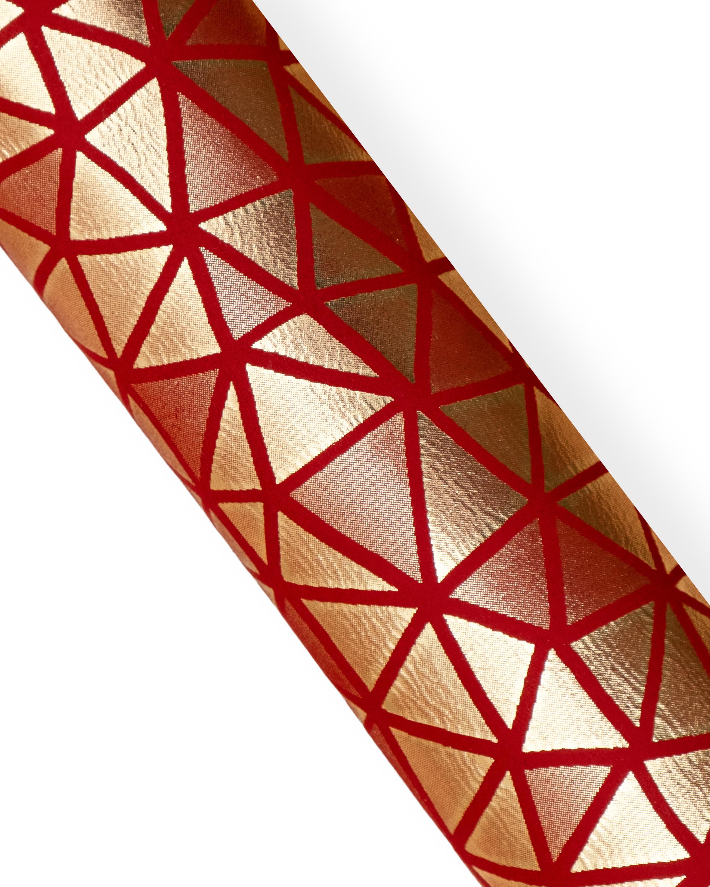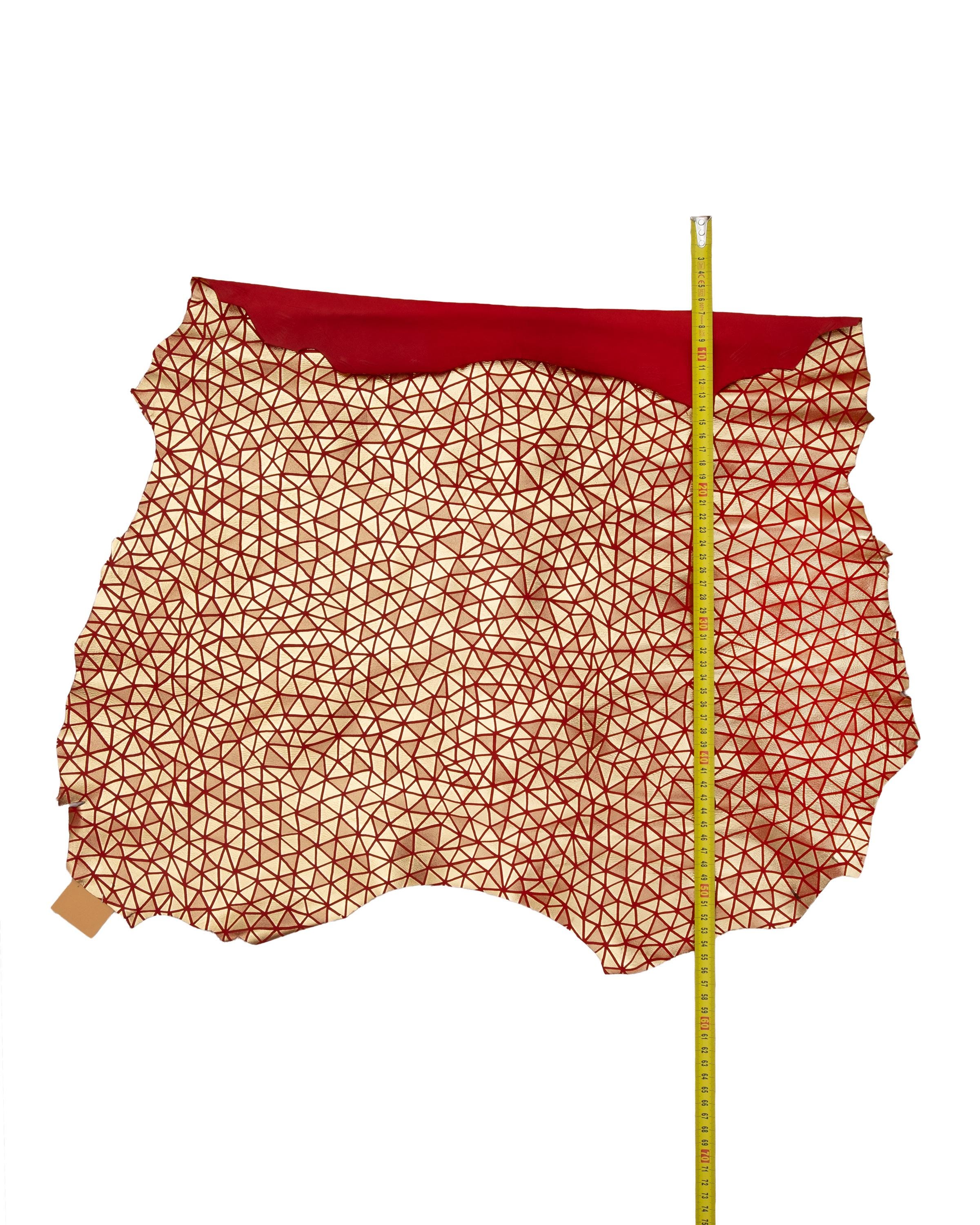 Stunning red and gold metallic leather skin, bright and soft goatskin with triangles textured for DIY projects.