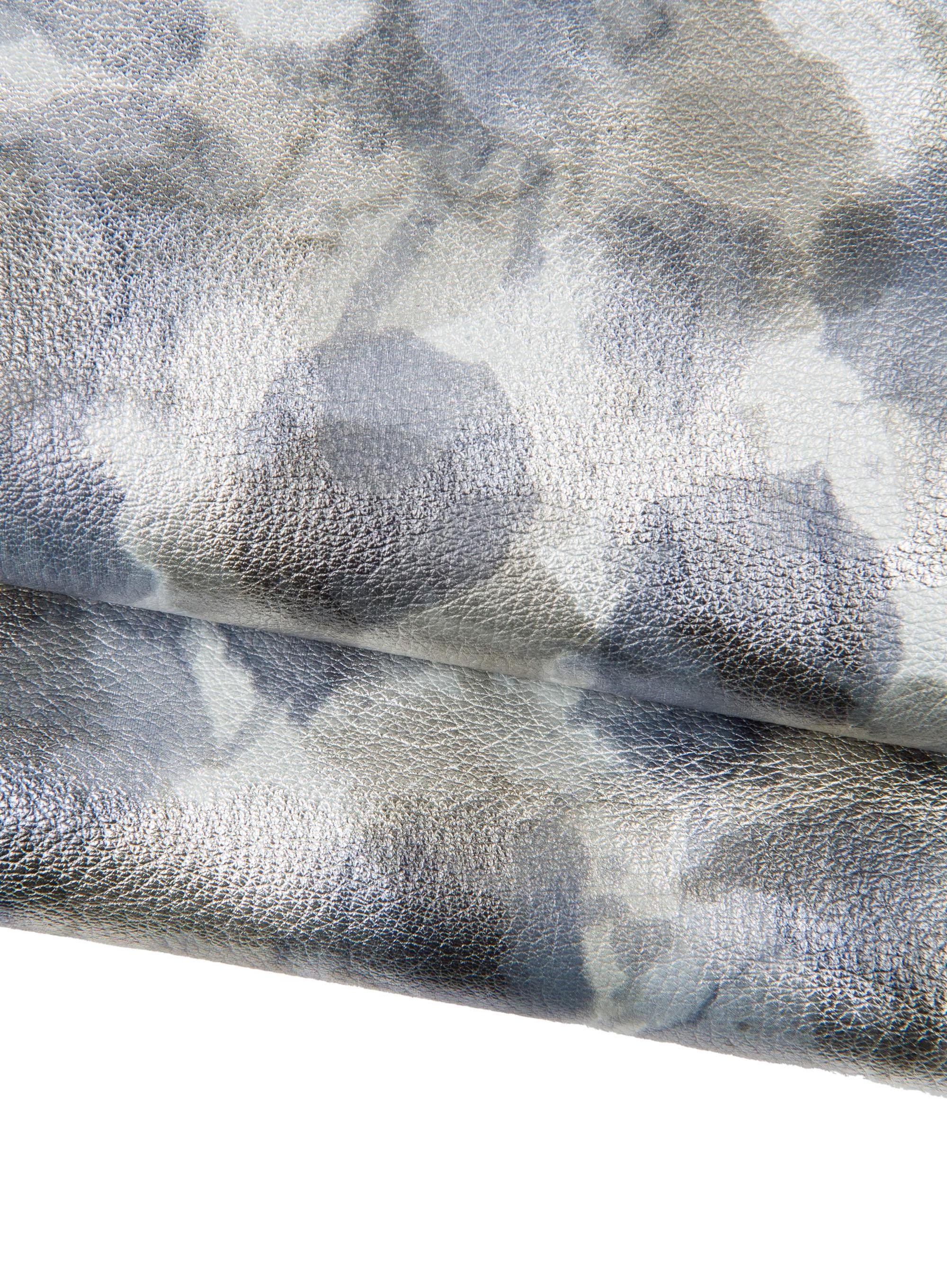 Fantastic silver and grey leather skin, metallic pebble grain spotted printed goatskin,soft bright hide for crafters.