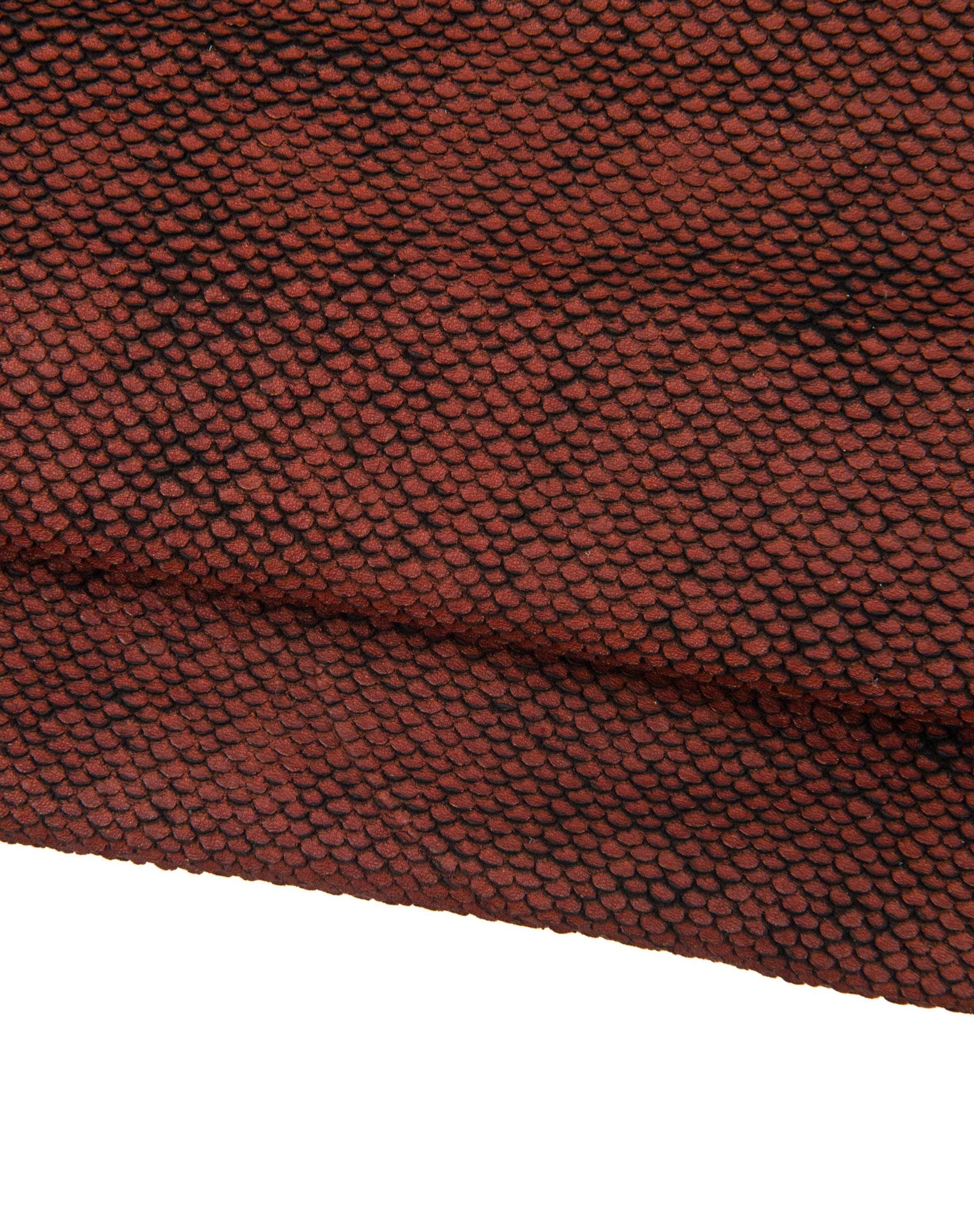 Wonderful soft calf leather featuring a brown carved scale-effect textured pattern, with a refined printed surface ideal for high-quality handcrafted leather goods.