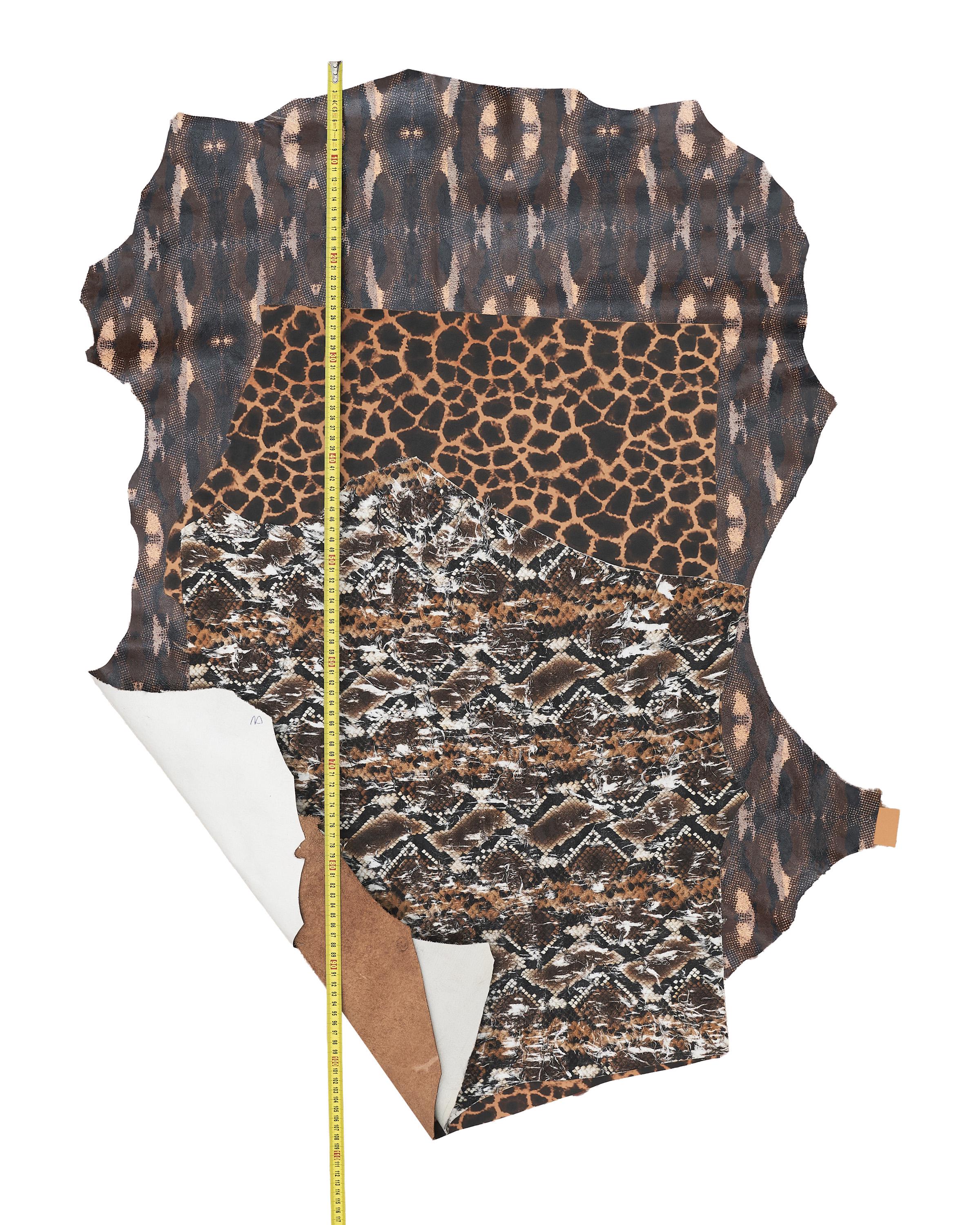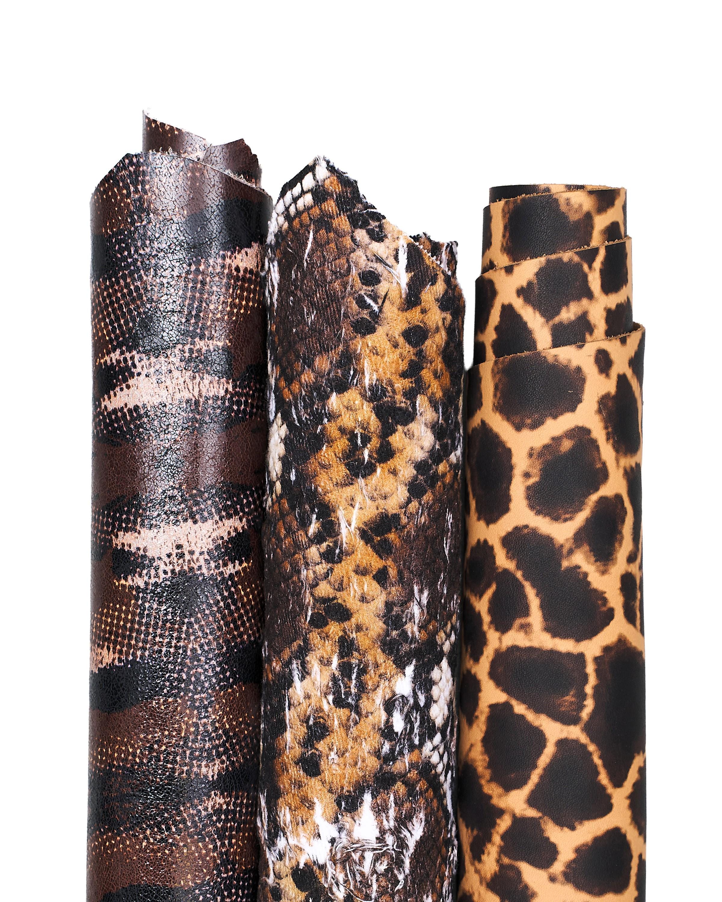 Incredible bundle of 3 brown animal print goatskins, soft hides for DIY projects.
