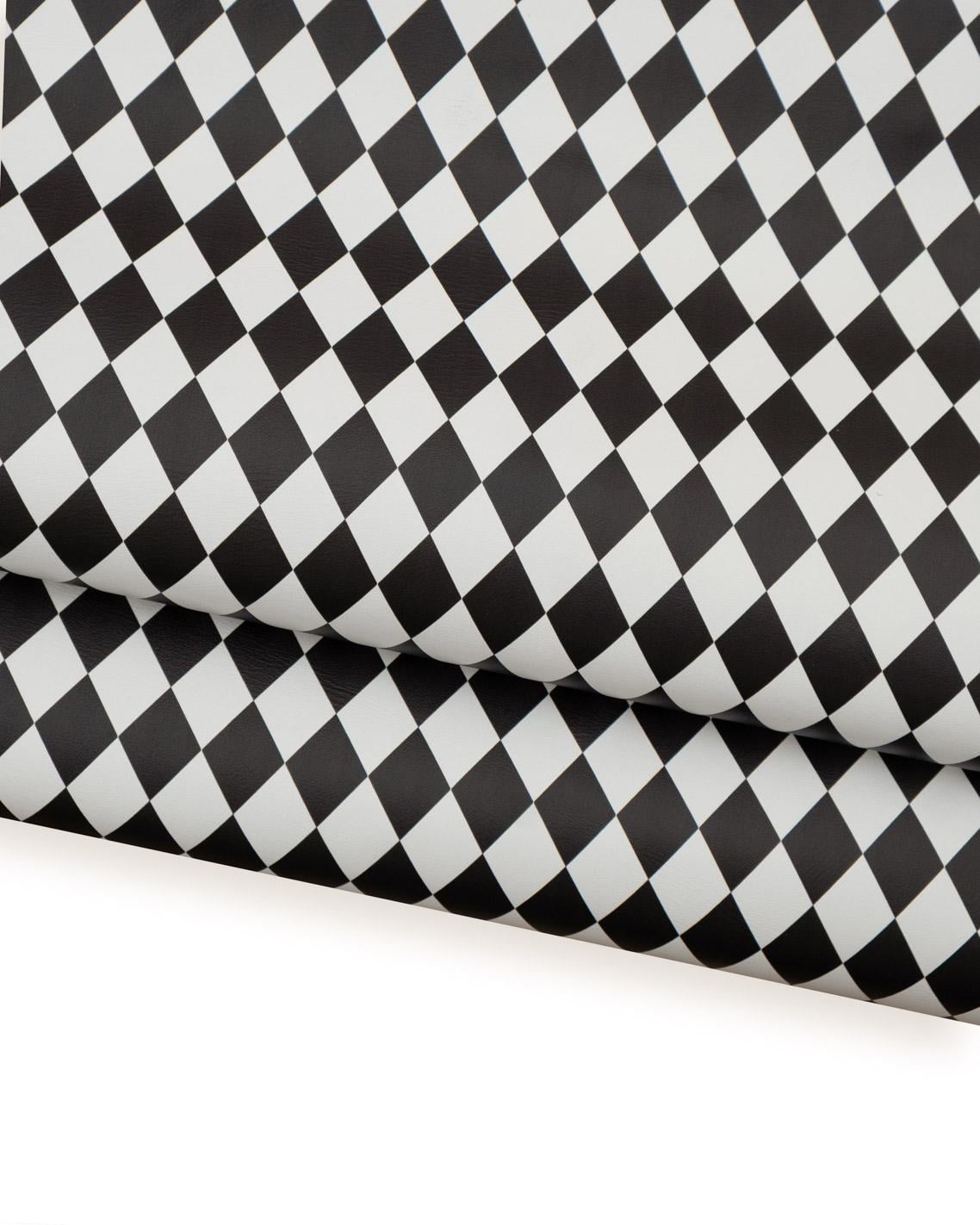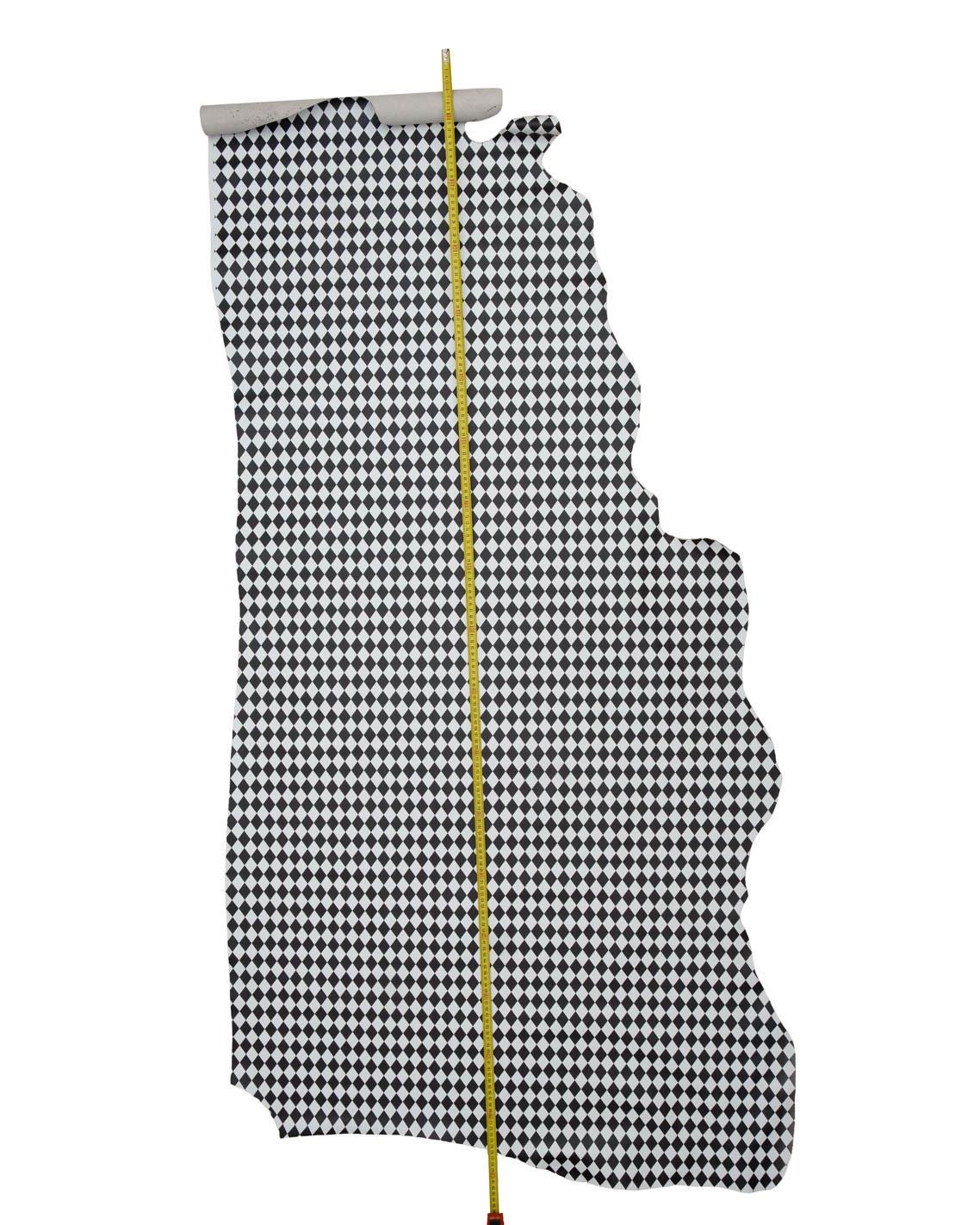 Superb black white diamond printed leather hide, geometrical pattern on cowhide, matt calfskin, for DIY projects.