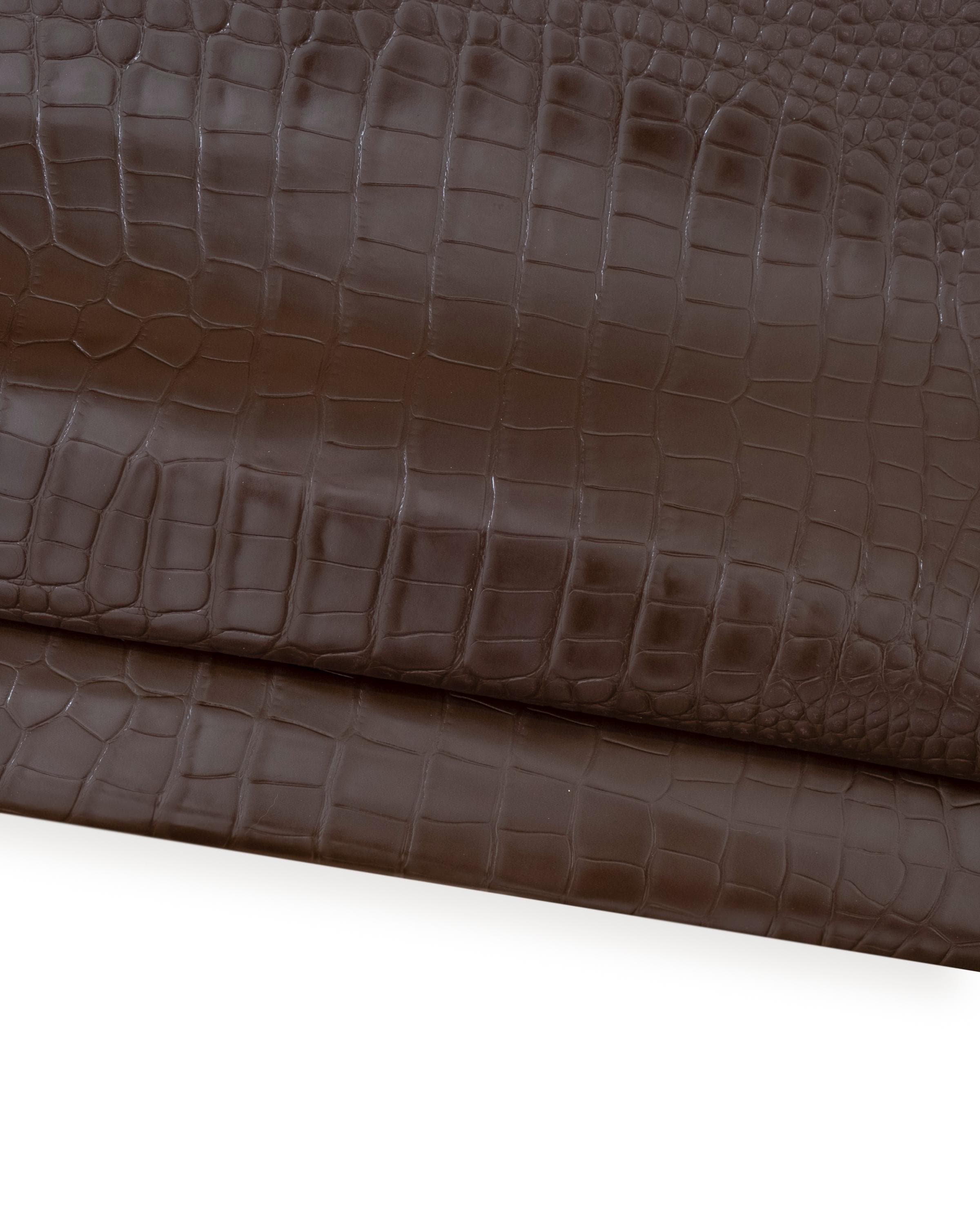 Beautiful brown calfskin with crocodile print, ideal for DIY.