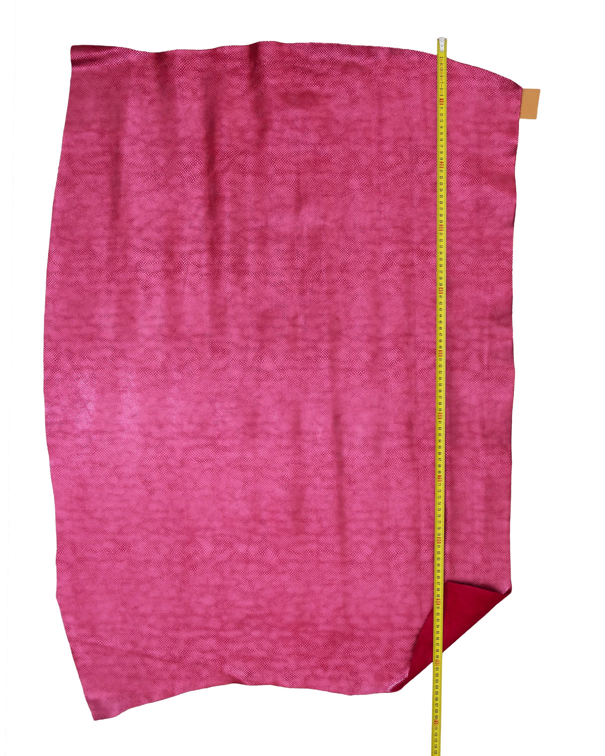 Incredible fuchsia metallic snakeskin, reptile pattern suede calfskin, soft hide ideal for your creations.
