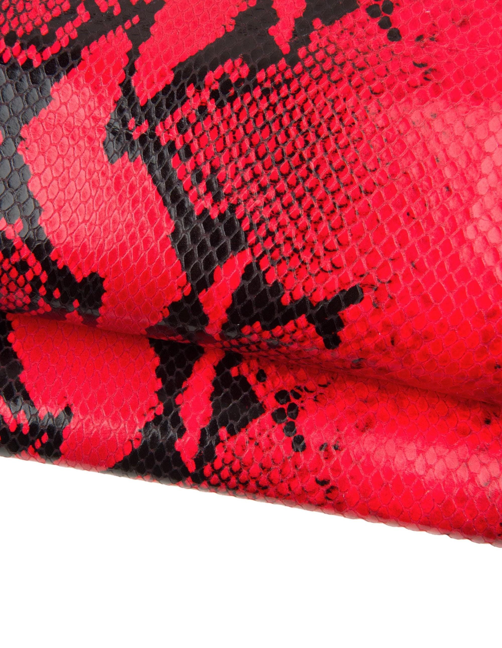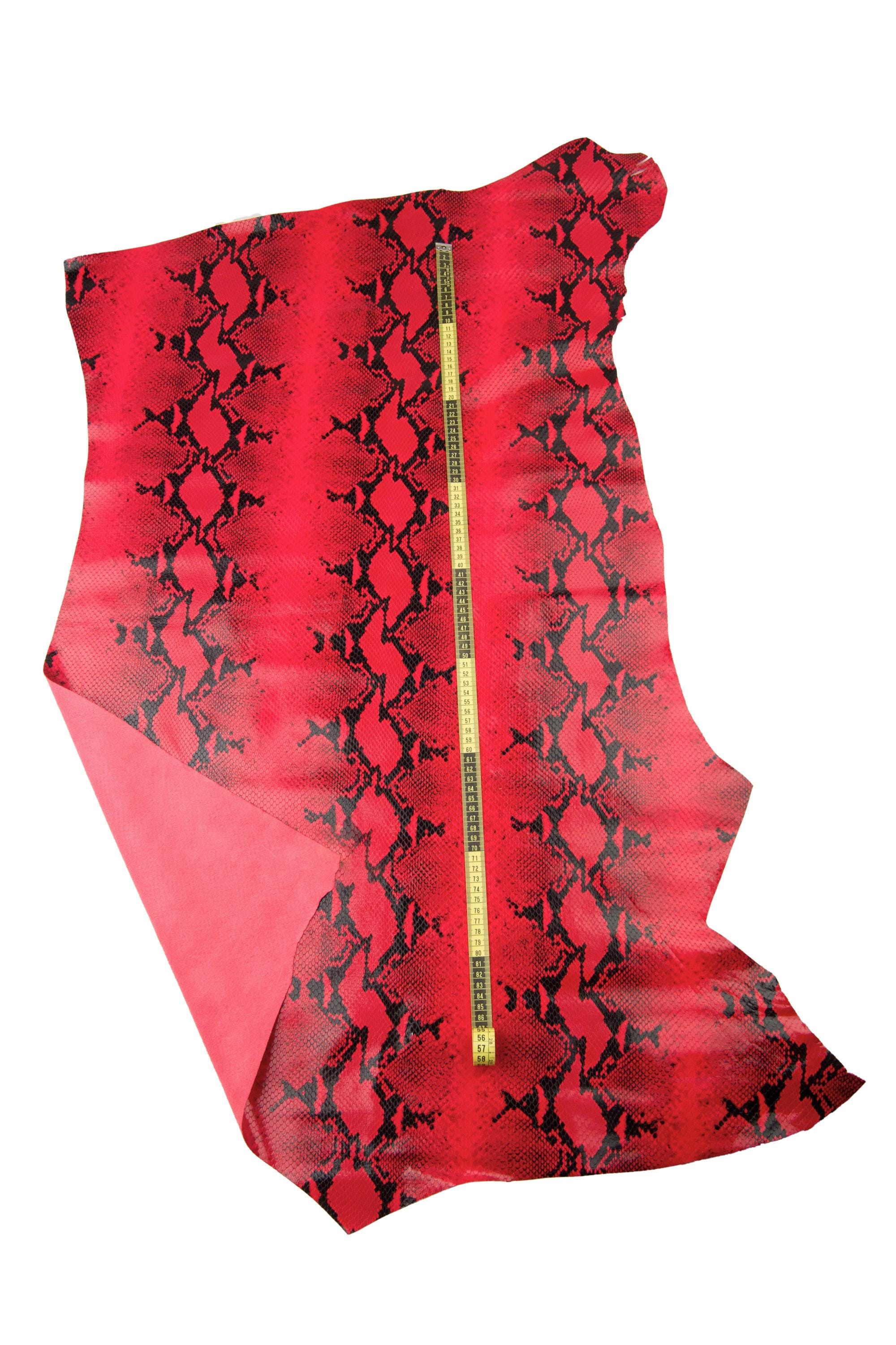 Amazing red black python textured leather hide, reptile printed cowhide, glossy soft snakeskin calfskin for crafters.
